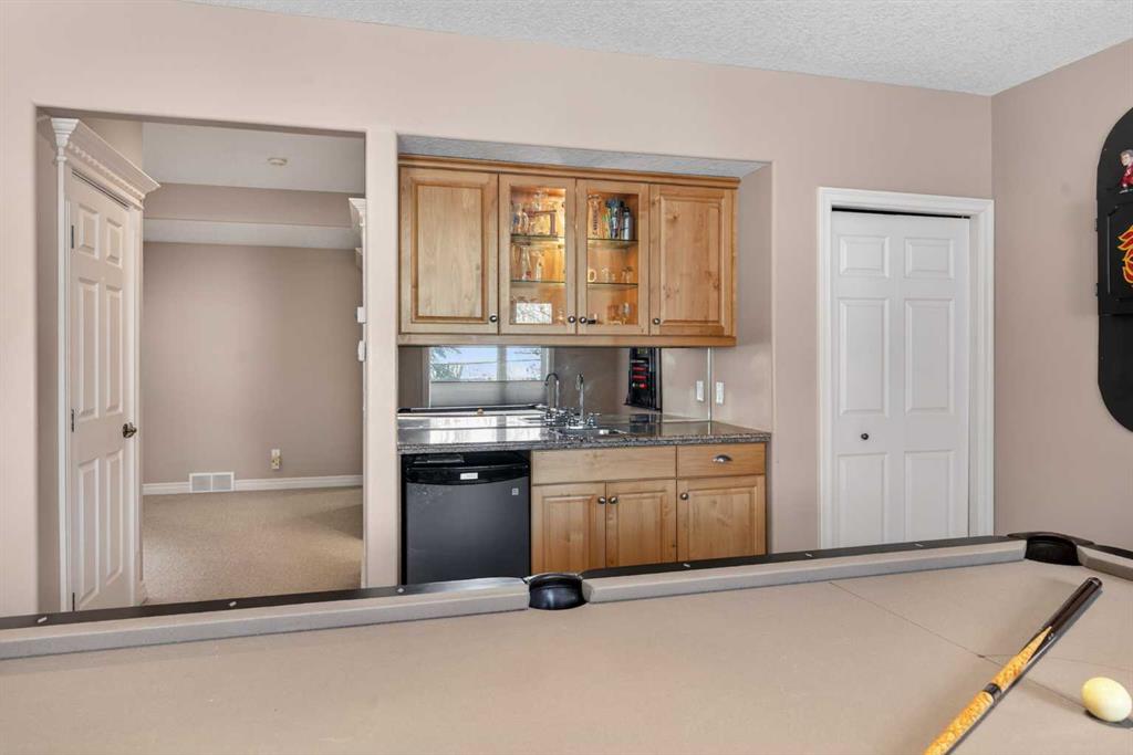 This is your chance to make your home in this beautifully appointed home in the highly-desirable community of Hamptons, backing onto the golf course & surrounded by wonderful views as far as the eye can see! Built by Chancellor Homes, this outstanding executive two storey walkout enjoys a total of 5 bedrooms + den, hardwood & tile floors, fully-loaded chef’s kitchen with alderwood cabinets, 2 decks & private backyard with hot tub. Complemented by 9ft ceilings & drenched in natural light, you’ll love the stylish design of the main floor with its formal living & dining rooms with South-facing windows & elegant rounded column, expansive family room with window seat & gas fireplace accented by built-in bookcases, spacious dining nook with access onto the covered balcony & fantastic gourmet kitchen with walk-in pantry & granite countertops, ceramic tile backsplash & upgraded stainless steel appliances including Bosch dishwasher & Samsung stove/convection oven. Total of 4 bedrooms & 2 full bathrooms on the 2nd floor…highlighted by the private owners’ retreat with sitting area with views of the golf course, big walk-in closet & jetted tub ensuite with separate shower, tile floors & double vanities. The family bathroom – with 2 sinks, is shared by the other 3 bedrooms…2 which also feature window seats. The walkout level is finished with a 5th bedroom with walk-in closet, another full bathroom & fabulous games/rec room with granite-topped wet bar & pool table (with ping pong tabletop). Main floor also has a dedicated home office which would also make a great guest bedroom, & laundry room with new (2025) Samsung washer & dryer. Additional extras in your new home include built-in ceiling speakers, 2 hot water tanks & 2 humidifiers, water softener, natural gas line for your BBQ on the upper balcony, large skylight over the 2nd floor landing, hot tub on the covered patio, loads of closet & storage space, concrete tile roof & in 2024 the walkout level furnace was replaced & the internal components of the 2nd furnace were also replaced. With over 3800sqft of living space spread over 3 levels, this truly fine home will be just perfect for your growing family, here in this prime location only minutes to the Hamptons School & golf course clubhouse, all neighbourhood amenities (playing fields, tennis courts, playgrounds), area shopping & quick access to transit (bus stops & LRT), highly-rated schools, University of Calgary, major retail centers, hospitals & downtown.