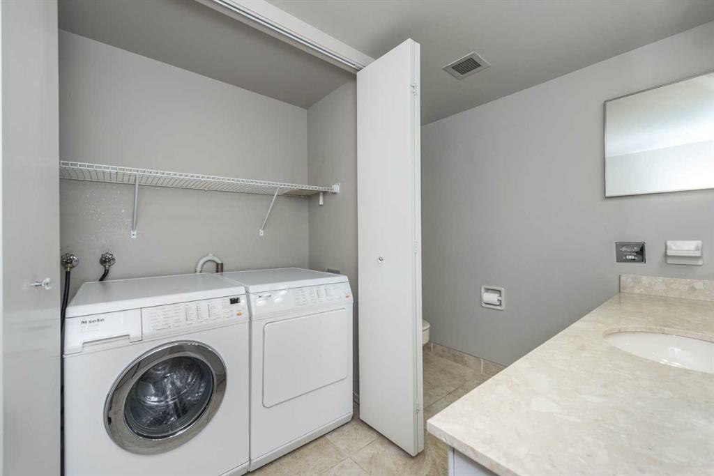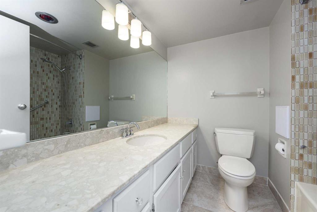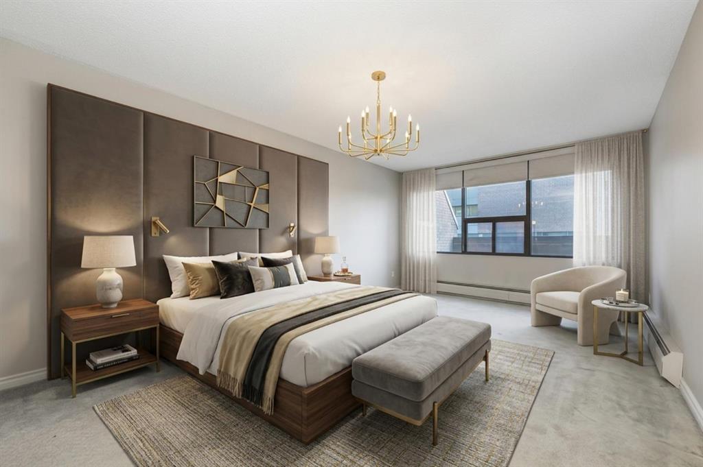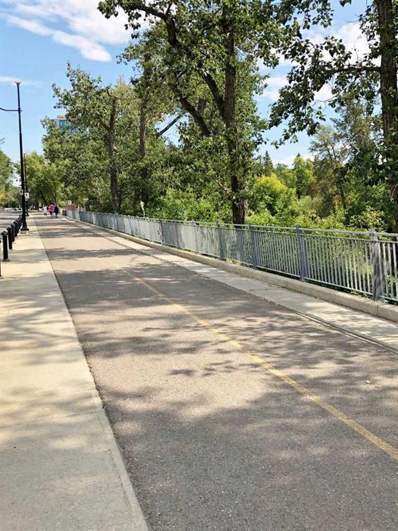 Spacious 2 bedroom, 1.5 bath unit in Mission's prestigious Roxboro House! This well maintained suite has a large, private feeling balcony which spans the width of the entire apartment. It has a view of the Calgary Tower plus an open, bright layout. Kitchen includes a desk/eating bar, a newer stainless steel oven, and recently painted cabinets. Ample closet space in the generous primary bedroom. Use the second bedroom as a private office/den or guest quarters. Features in-suite storage, plus an assigned storage locker (#63 in the basement) so you'll have room for everything. Comes with a parking stall in the heated parkade (#80 - which is on the same level as the unit for convenient access), plus all the building's luxury facilities: huge, beautifully landscaped 4th floor sundeck, pool, hot tub, sauna, party room, gym, games room, large hobby and woodshop room, main floor 2 bedroom guest suite with kitchen available to be booked for visiting friends and family (rate ranges from $100 to $150/night), visitor parking, 24-hour security staff, and bike storage! Utilities, including electricity, are part of the condo fee (except cable/phone). Roxboro House is currently undergoing hallway modernization, bringing an elegant and stylish new look to the building. Second floor hallway reno is underway so check out another finished hallway to see how great it'll look when finished. This locale is perfect for walking or biking as you're conveniently near the Elbow River pathway, groceries, and amenities in the heart of Mission and 4th Street.