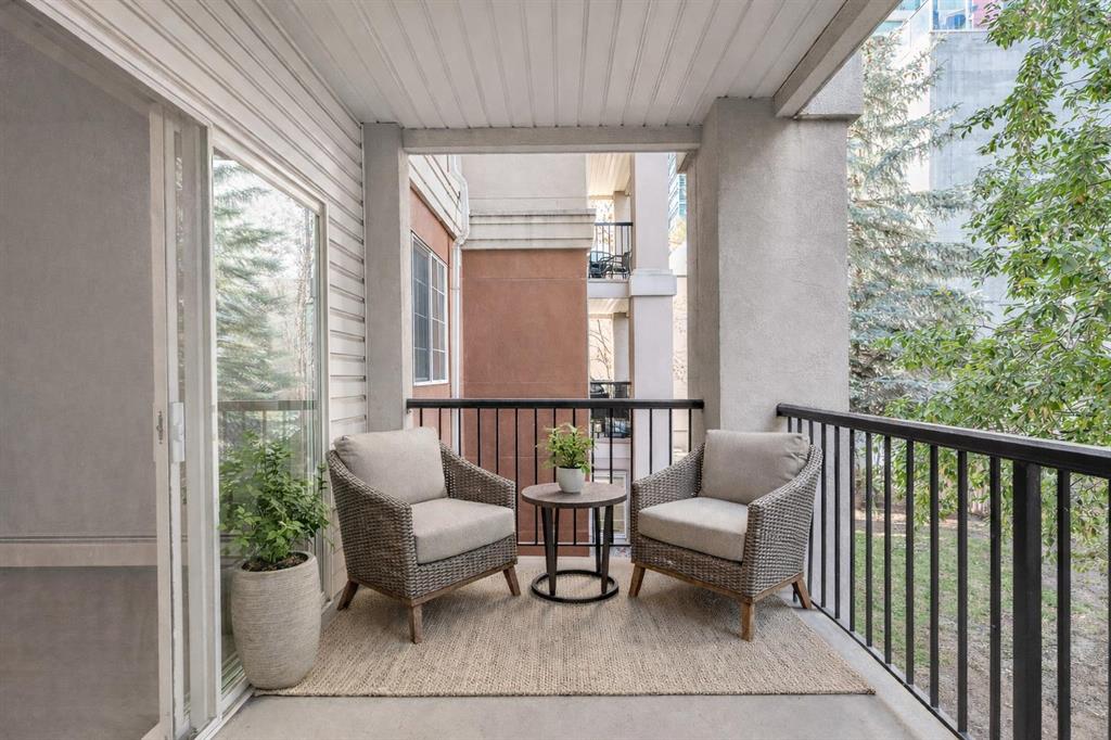 Stylish 2nd-floor condo with modern upgrades in the heart of the Beltline! This beautifully updated unit offers 884 sq.ft, 2 bedrooms, 2 full bathrooms, and 2 HEATED, UNDERGROUND, TITLED, TANDEM PARKING STALLS — a rare and valuable find in the city. A versatile layout perfect for professionals, couples or small families. The open-concept floor plan features neutral tones, newer flooring (luxury vinyl plank) and a bright living room with a cozy gas fireplace. Tall 9-foot ceilings enhance the airy feel, and large windows allow natural light to fill the space. The kitchen features a new quartz countertop, sink and tap, and offers a convenient eating bar. The adjacent dining area provides plenty of space for everyday meals or for hosting guests. The in-suite laundry room includes extra storage for your convenience. Step out through the living room's patio door onto your private spacious balcony with gas hook-up for BBQ. Beautiful views of the city skyline and the Calgary Tower — great for morning coffee or evening relaxation. The large primary bedroom includes a walk-through closet and 4pc ensuite. The sizable second bedroom is located across from the master, affording privacy, and is steps from the second full bathroom. Perfect for a kid's room, guests, roommates or a home office, offering versatility to suit your needs. Unbeatable access to Calgary’s vibrant Beltline. A short walk to 1st Street, Stampede Park and the Saddledome. Easy access to 17th Avenue, MNP Centre and more. Offers comfort, convenience and inner-city living at its finest — this is a must-see!