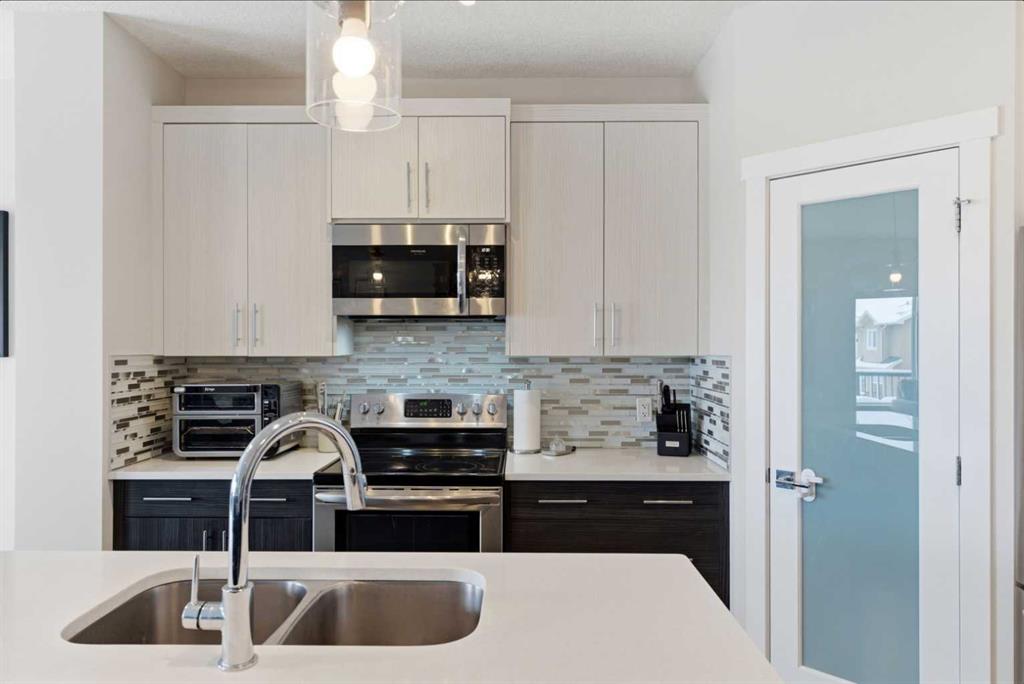 Beautifully maintained and stylish home offers over 2,700 sq. ft. of fully finished living space, this walk-out duplex in Bayview is a rare find. Thoughtfully upgraded throughout, the home features Central Air Conditioning, an impressive kitchen with extended-height cabinetry and Silestone quartz counters, opening to a bright dining nook with access to a large rear deck. The spacious great room is anchored by a quartz-clad built-in entertainment unit, enhanced with recessed lighting for a warm, modern feel and a practical main-floor mudroom/laundry area includes a generous storage closet, to round out the main floor. Upstairs, a well-lit bonus room with vaulted ceilings and pot lights creates an inviting central space. Two large bedrooms and a 4-piece main bath occupy the front of the upper level, while the rear is dedicated to the primary suite. The primary bedroom features an expansive walk-in closet and a bright 5-piece ensuite complete with a soaker tub and separate shower. The newly developed walk-out basement adds exceptional functionality, offering the home’s fourth bathroom, a convenient office/den, and a bright recreation room with large windows and a garden door leading to a covered patio and the rear yard. With a fabulous location close to school, shops and outdoor activities, what more could you ask for in your next home.