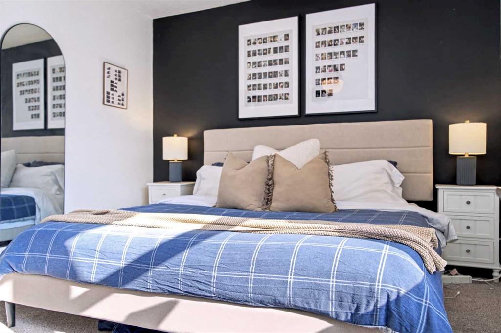 Welcome to Queensland Park! This beautiful and Move in Ready end unit has 2 spacious Bedrooms, 918 square feet of space, Low Condo Fees and a ton of recent upgrades, plus a private fenced back patio! Full of natural light throughout, you get maximum efficiency year round with all windows and exterior doors replaced in 2023. Start your day in this bright and updated kitchen/dining room with New Cabinets, Quartz Counter Tops, Subway Tile back splash, Full Appliance package (2025), Under-mount Sink with Brass finish Faucet, Custom shelves and a new lighting package. The patio sliding door connects you to the private fenced patio for relaxing days in the summer and outdoor entertaining. Into the living room you'll find enough space for cozy evenings to unwind and a front entrance with closet. Upstairs are two spacious bedrooms, the primary is bright with large south facing windows, new lighting and fits a king size bed with room to spare. The 4pc Bath has has been updated (2025) with a new sink, quartz counter top and cabinetry, Shower Kit, lighting and vinyl flooring. The secondary bedroom fits a queen size bed and more with lots of closet space. The unfinished basement is ready for development, extra storage or any project you want to take on. Located steps away from all amenities, schools, transit and walking/ bike trails that lead into Fish Creek Park. This amazing home is Upgraded and ready to go, all it needs is you. Book a showing today before it's gone!