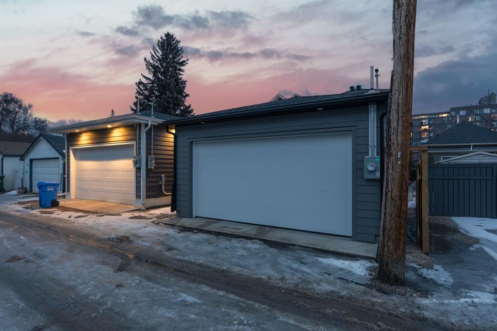 OPEN HOUSES Saturday March 28th 1-4PM & Sunday March 29th 3-6PM! Experience elevated inner-city living with this impeccably designed, brand-new home nestled in one of Calgary’s most sought-after neighbourhoods: Hillhurst. Constructed by a trusted local builder known for craftsmanship, functionality, and aesthetic excellence, this 2-storey residence offers 2,224 SF above grade, with a fully developed basement, 4 bedrooms, and 4.5 bathrooms—a perfect blend of modern luxury and thoughtful detail. From the striking brick facade to the high-end engineered wide plank oak hardwood, every inch of this home exudes quality. The main floor welcomes you with a built-in entry feature and a front formal dining area, accented by elegant wall mouldings, white and gold sconces, and a designer chandelier. At the other end, an open-concept living room is a showstopper, featuring a large-format textured tile fireplace, custom built-ins with display lighting, and massive patio sliders leading to a west-facing, 135-ft deep backyard with a raised patio and gas line—ideal for indoor-outdoor entertaining. The chef’s kitchen is nothing short of stunning, complete with a 2.5" thick quartz island, panel-ready fridge/freezer with knurled handles, sleek quartz countertops, a gas range with pot filler, and backlit display cabinets framing the custom hood fan. You’ll also find a farmhouse sink, full slab backsplash, hidden coffee/appliance nook, built-in pantry, and a drawer-style microwave—each designed to inspire culinary creativity. Tucked behind a barn-style sliding door, the den offers a quiet workspace with a built-in desk, shelving, and bright window. The mudroom, also with a barn door, features tiled flooring, a built-in bench, and a large closet for seamless organization. Upstairs, each of the three spacious bedrooms come with walk-in closets and custom built-ins, along with private ensuites. The primary is sure to impress with vaulted ceilings, a LED-lit feature wall, statement gold light fixture, and a spa-inspired ensuite that boasts a steam shower, dual vanities, and a standalone soaker tub with dramatic black and white tile wall backdrop. A nearby laundry room offers convenience with a sink, folding station, shelving, and tile backsplash. The fully finished, carpeted basement, with 9-ft ceilings, is roughed in for in-floor heating and designed for comfort and versatility—featuring a spacious rec area, a TV wall with built-in components, a wet bar with lit display shelves and tile flooring, a full bath, and a large fourth bedroom with built-ins including a desk. An efficient mechanical room completes the lower level, with additional upgrades including solid core doors and built-in speakers throughout the entire home. Perfectly situated just steps from shops along 14 St NW and walking distance to Kensington Village, Calgary’s extensive river pathways, and the Downtown Core—this is urban luxury at its finest. Act now and make this exceptional Hillhurst property your forever home.