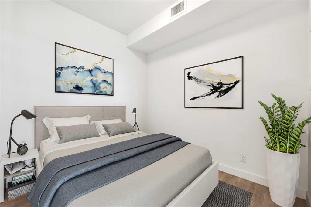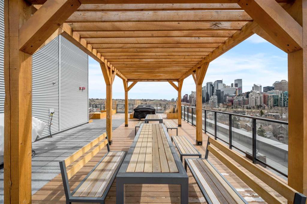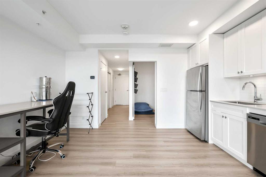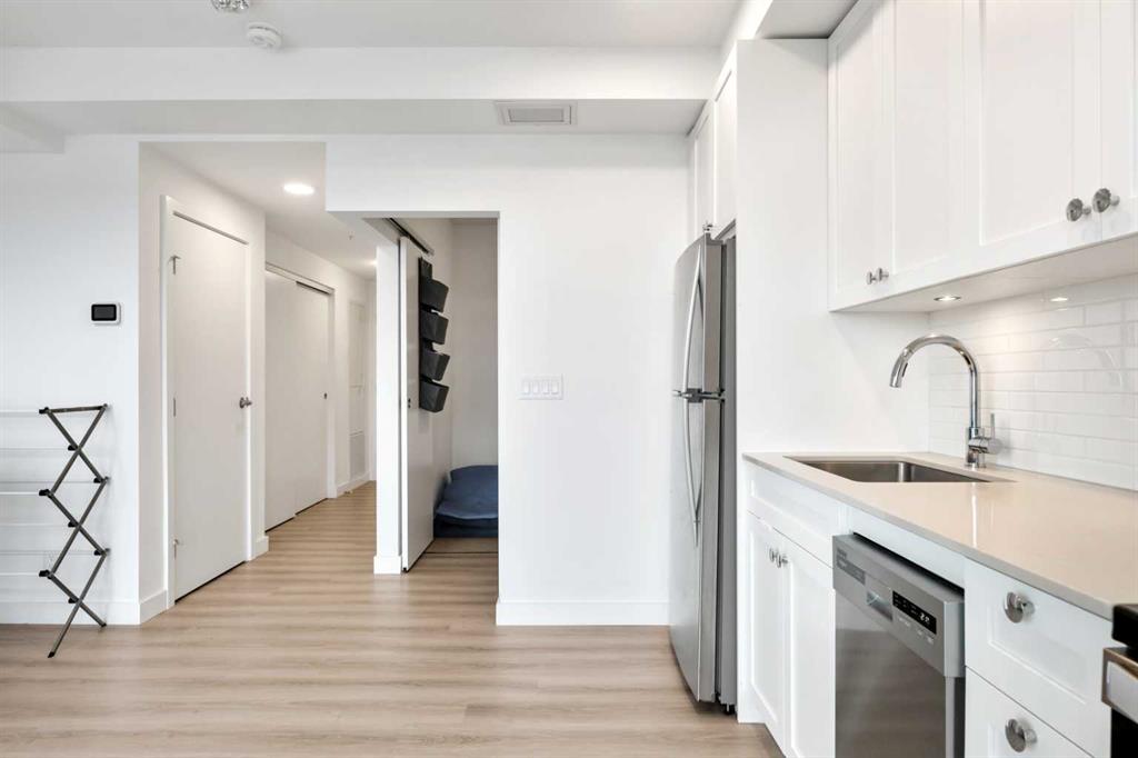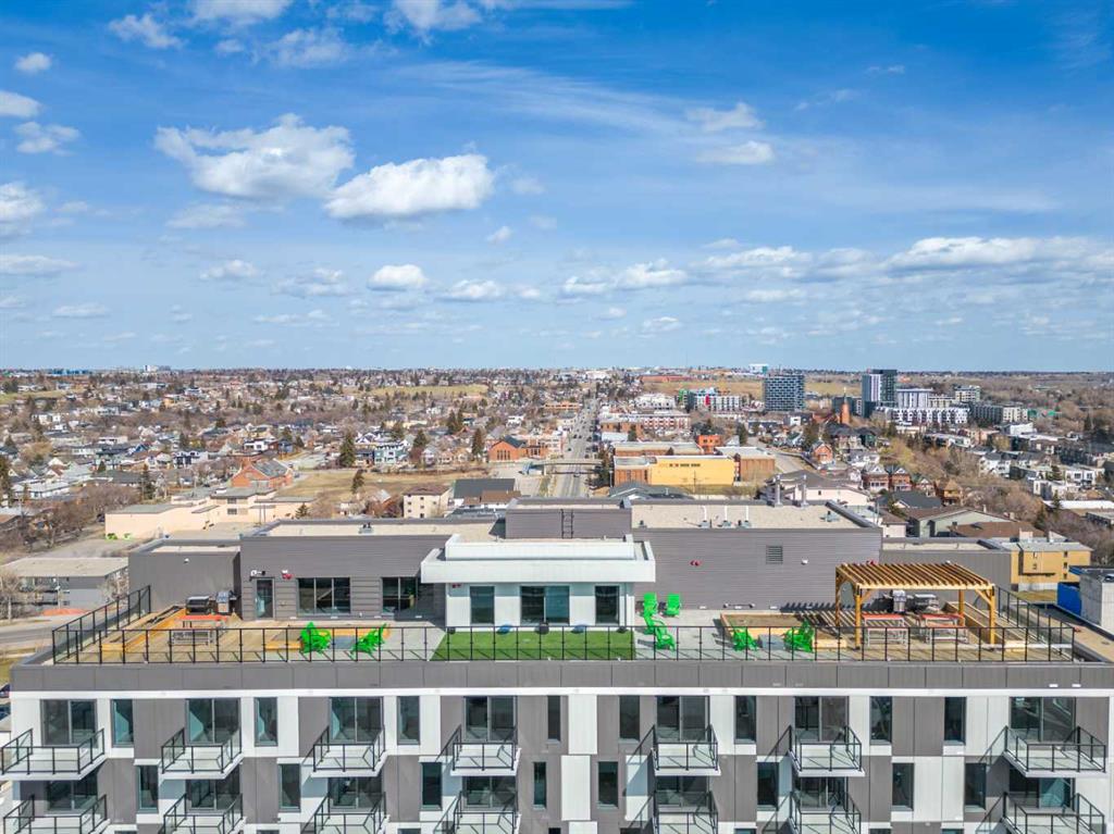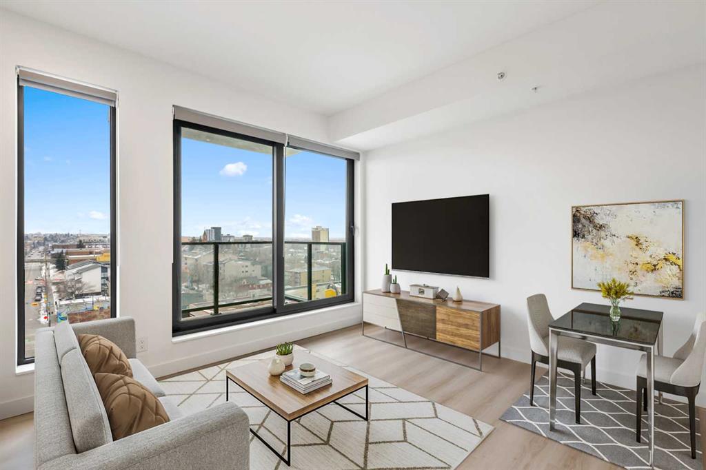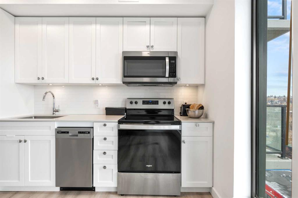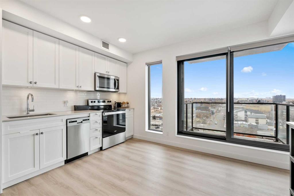 Perched on the 9th floor in the vibrant inner-city community of Crescent Heights, 908–123 4 Street NE offers a stylish one-bedroom, one-bathroom apartment with impressive downtown Calgary views and a highly walkable location just minutes from the city core. Built in 2022, this modern high-rise residence combines contemporary finishes, efficient design, and excellent investment potential, making it ideal for first-time buyers, professionals, or investors seeking a turnkey property. Inside, the thoughtfully designed open-concept layout maximizes both space and natural light. Warm vinyl flooring flows throughout the unit, creating a clean and cohesive feel. The kitchen is finished with quartz countertops, stainless steel appliances, an electric cooktop, built-in oven, microwave hood fan, and ample cabinetry, providing both modern style and everyday functionality. The living area connects seamlessly with the kitchen, creating a comfortable space for relaxing or entertaining. Large windows allow natural light to pour into the unit while framing beautiful city views. Step outside onto the private balcony, an ideal spot to enjoy morning coffee or unwind in the evening while overlooking the Crescent Heights neighbourhood and downtown skyline. The bedroom is thoughtfully positioned with sliding doors and a closet for efficient use of space and privacy. A four-piece bathroom features contemporary finishes and quartz countertops, while in-unit laundry adds convenience to this well-designed home. Residents of the building enjoy a variety of amenities including a rooftop deck with panoramic views of Calgary, picnic area, elevators, secured parking, and professional property management. The unit also includes one assigned parking stall in the secure underground parking, offering additional convenience for inner-city living. Located in Crescent Heights, one of Calgary’s most desirable inner-city communities, this home places you steps from local cafés, restaurants, parks, schools, and shopping. The nearby Bow River pathway system provides excellent options for walking, cycling, and outdoor recreation, while quick access to Deerfoot Trail, Crowchild Trail, and downtown Calgary makes commuting simple. Whether you’re searching for a modern urban home or a smart investment opportunity, 908–123 4 Street NE delivers style, convenience, and exceptional location in the heart of Calgary.
