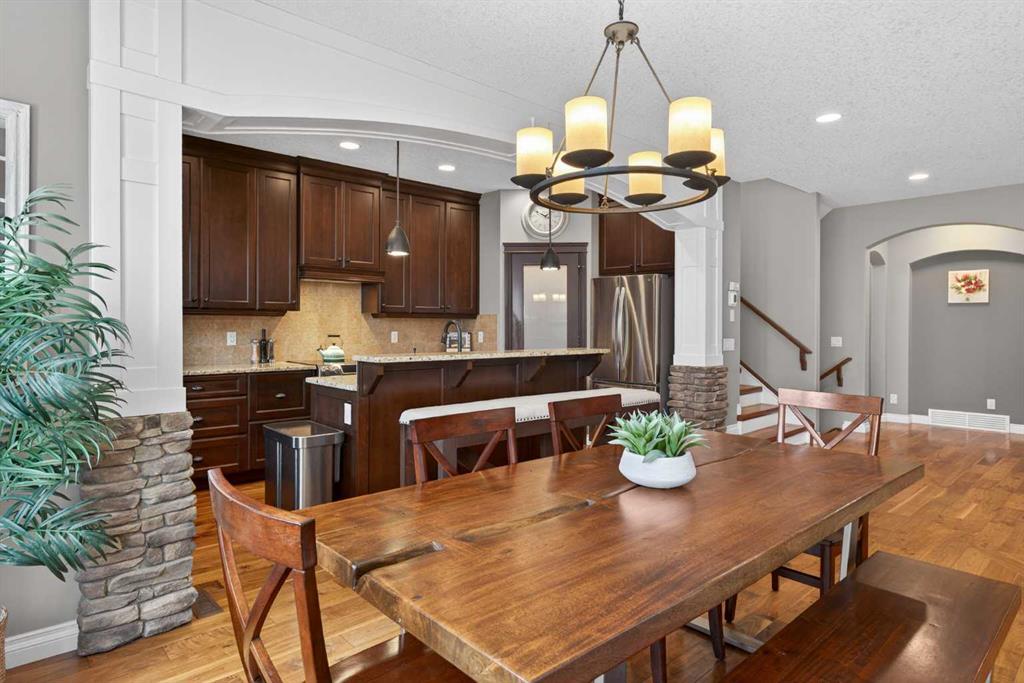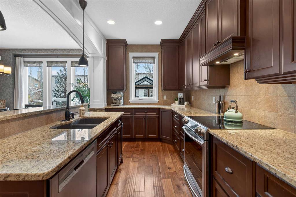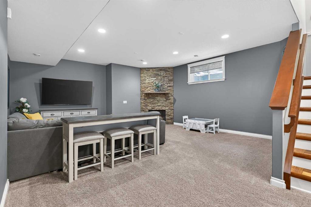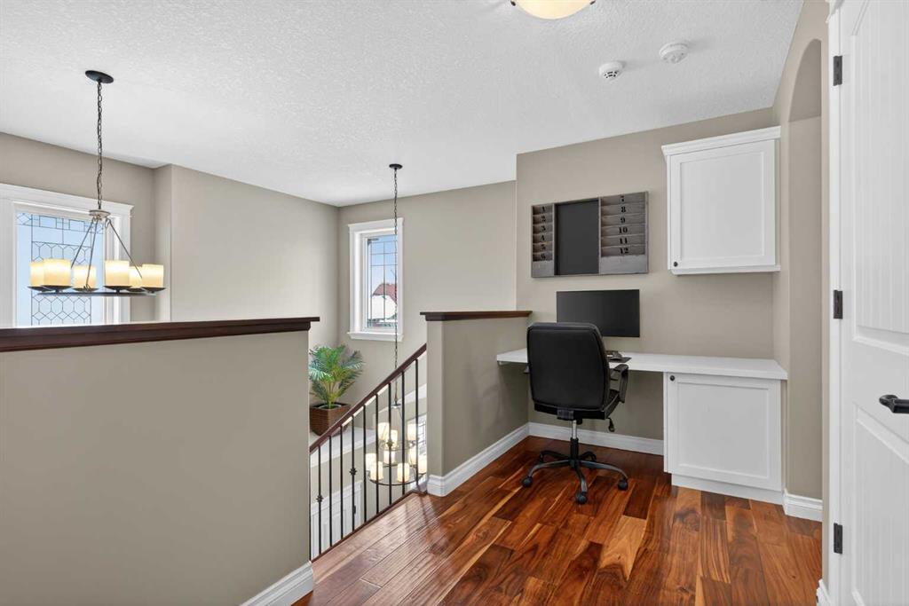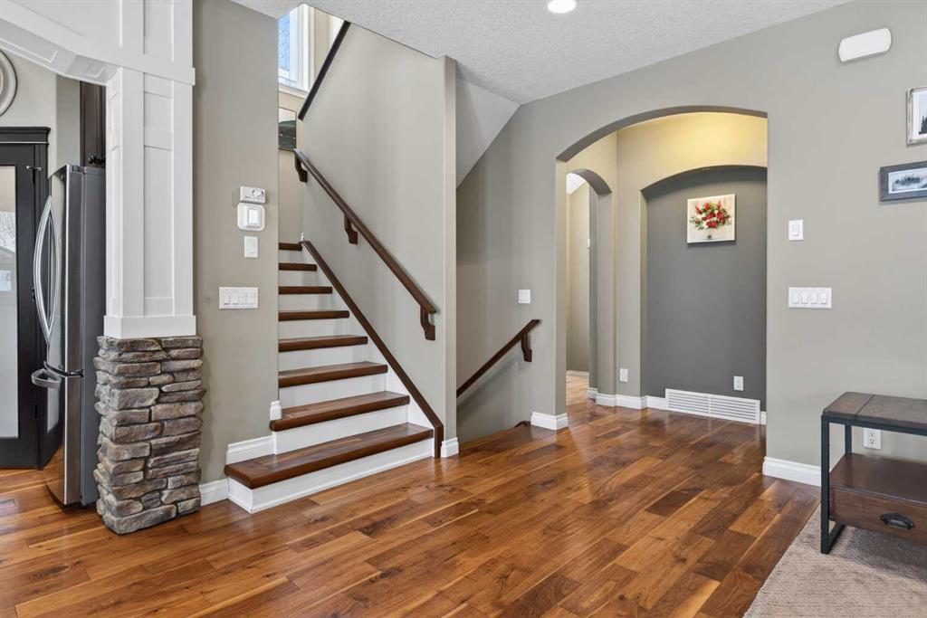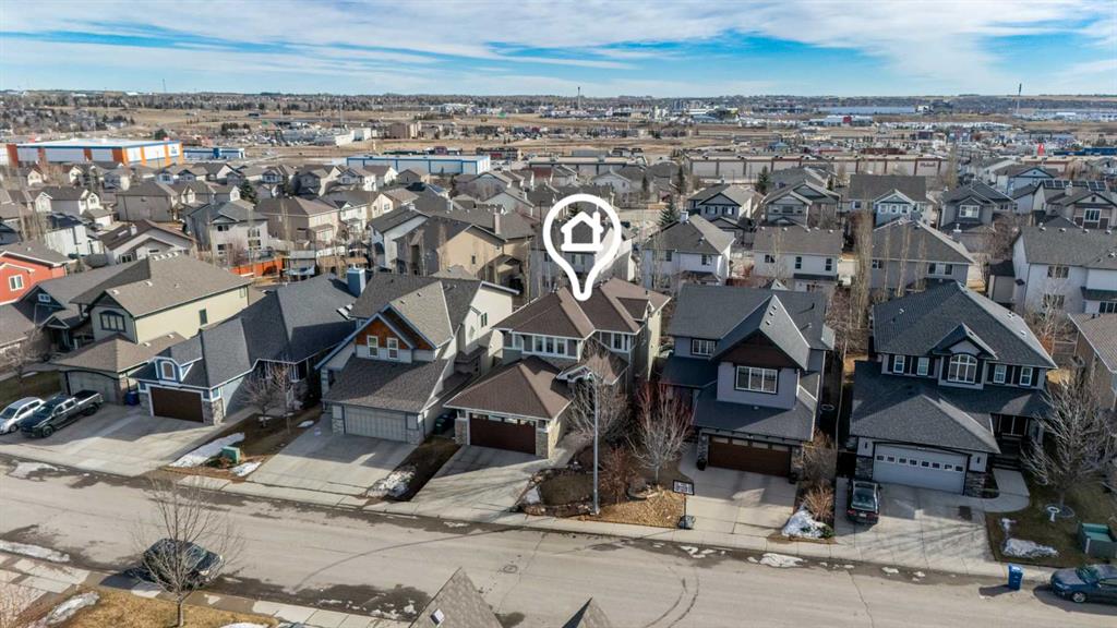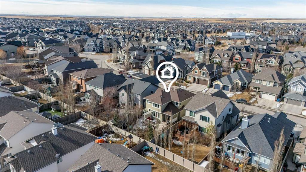 Do you know what it’s like to find the home of your dreams? Well now you’ll know when you step through the door of this custom-crafted estate home here in Cooper’s Crossing within walking distance to neighbourhood schools & leisurely stroll to Discovery Park. Built by Copper Rock Homes, this extensively upgraded two storey enjoys walnut & Acacia hardwood floors, relaxing central air, total of 4 bedrooms, heated 3 car garage & beautifully landscaped backyard with firepit, winding gardens & deck. Complemented by expansive 9ft ceilings & wide-plank walnut flooring, you will be truly impressed by the elegant feel of the main floor with its inviting living room with stone-facing fireplace accented by built-in cabinets, airy open concept dining room with picture windows looking out into the backyard & fully-loaded chefs kitchen with full-height cabinets & island with raised bar, granite countertops, walk-in pantry & sleek stainless steel appliances including Bosch dishwasher & Samsung stove/convection oven. Upstairs there are 3 fantastic bedrooms & 2 full bathrooms – highlighted by the owners’ retreat with vaulted ceilings, big walk-in closet & luxurious soaker tub ensuite with double vanities & separate shower. One of the kid’s bedrooms also has built-in shelving & walk-in closet. Completing the 2nd floor is an office alcove/loft with built-in desk & laundry with front-loading Samsung washer & dryer. The lower level – with 9ft ceilings, is beautifully finished with a 4th bedroom & another full bath, playroom, loads of storage space & wonderful rec room with stone-facing fireplace. The 3 car garage…tandem-style…is insulated, drywalled & heated, with built-in shelving & 1 bay currently set up as an awesome home gym. For your outdoor pleasure, the backyard is fully fenced & landscaped, complete with stone patio with firepit, fruit trees (including sour cherry), play structure for the kids & 300+sqft deck with gas BBQ line. Additional features include new furnace (2025) & central air (2022), main floor mudroom with built-in lockers & walk-in closet, grand foyer with soaring 18ft ceilings, upgraded lighting & fixtures, wrought-iron spindles & granite counters in all the bathrooms. Three schools are all within walking distance… Cooper’s Crossing School, St. Veronica School & St. Martin de Porres High School. And only minutes away is Cooper’s Town Promenade…featuring an open-air stage & firepit, office space, restaurants & a wide variety of shopping (anchored by Shopper’s Drug Mart & Save-On-Foods). Prime location in this highly-desirable Southwest Airdrie neighbourhood within easy reach of the Sierra Springs Shopping Centre & quick access to 40 Avenue & the QE2, Cross Iron Mills, Costco & Calgary.