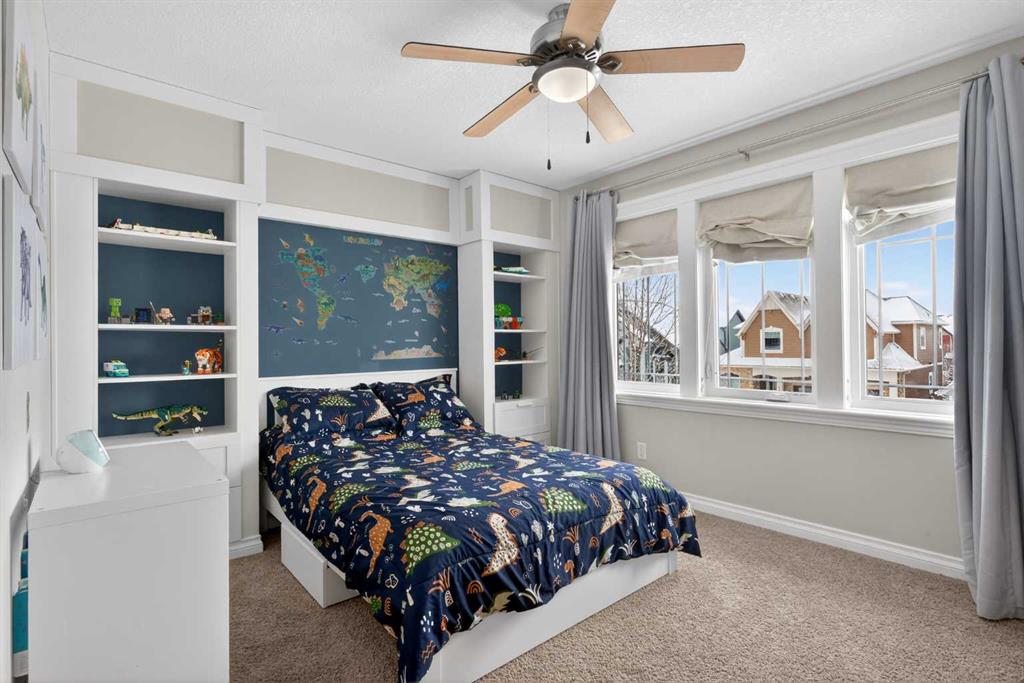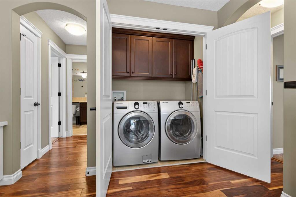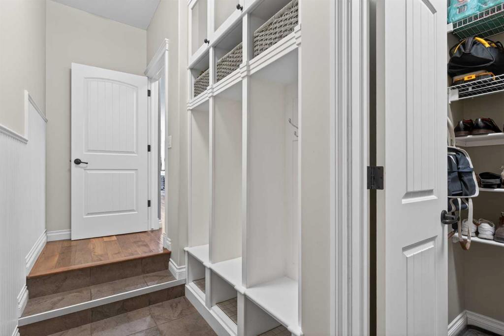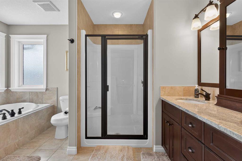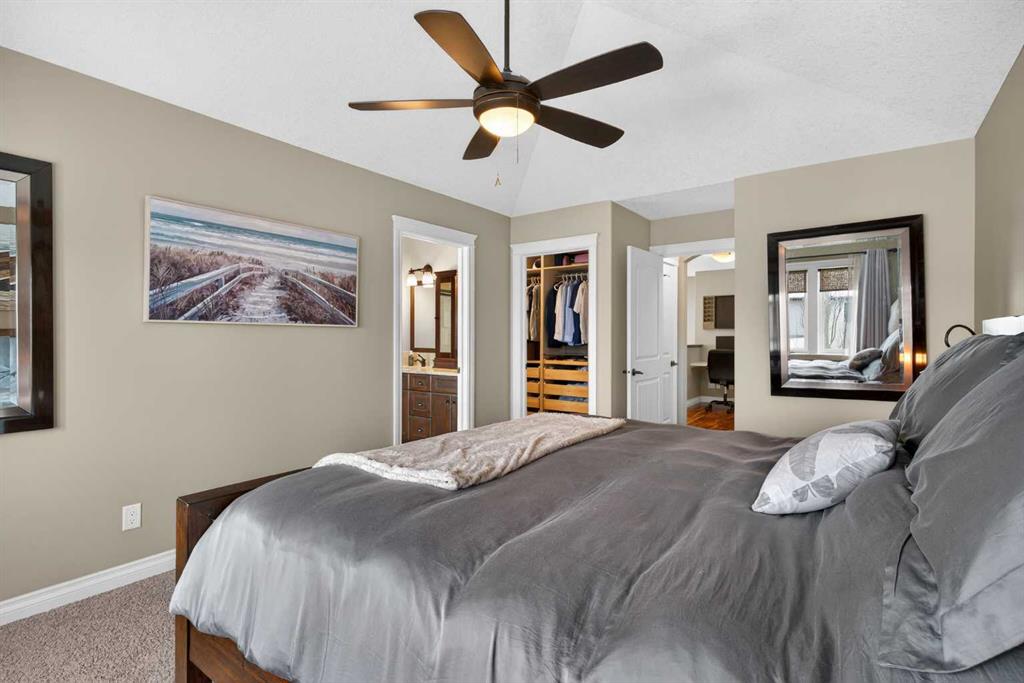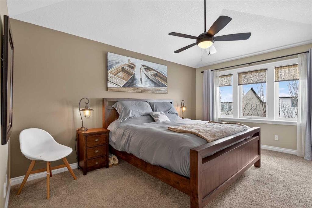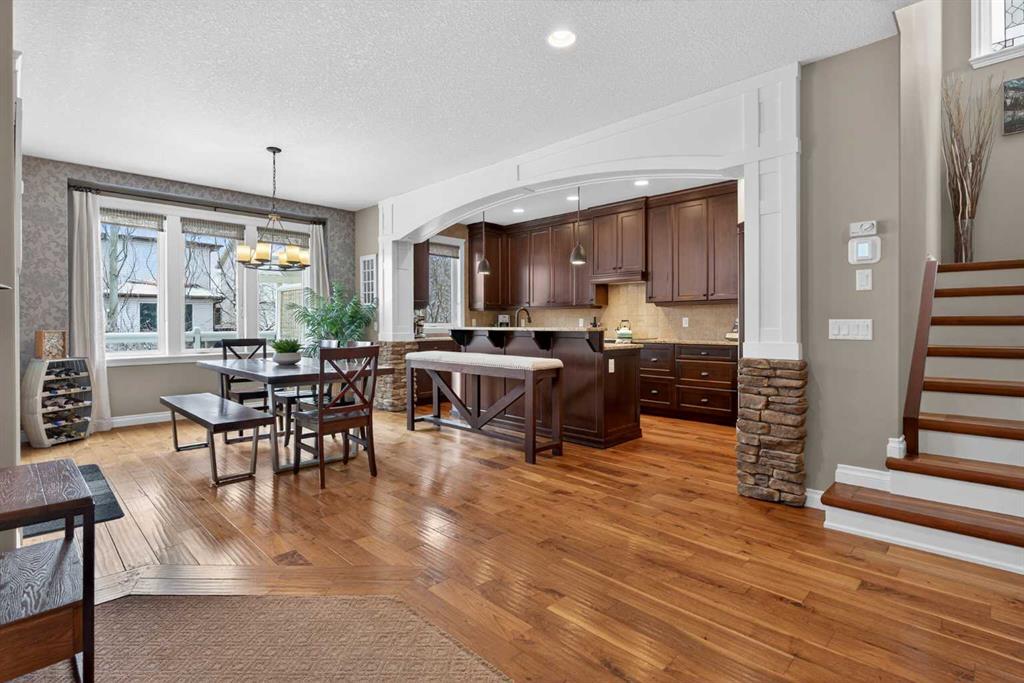 Do you know what it’s like to find the home of your dreams? Well now you’ll know when you step through the door of this custom-crafted estate home here in Cooper’s Crossing within walking distance to neighbourhood schools & leisurely stroll to Discovery Park. Built by Copper Rock Homes, this extensively upgraded two storey enjoys walnut & Acacia hardwood floors, relaxing central air, total of 4 bedrooms, heated 3 car garage & beautifully landscaped backyard with firepit, winding gardens & deck. Complemented by expansive 9ft ceilings & wide-plank walnut flooring, you will be truly impressed by the elegant feel of the main floor with its inviting living room with stone-facing fireplace accented by built-in cabinets, airy open concept dining room with picture windows looking out into the backyard & fully-loaded chefs kitchen with full-height cabinets & island with raised bar, granite countertops, walk-in pantry & sleek stainless steel appliances including Bosch dishwasher & Samsung stove/convection oven. Upstairs there are 3 fantastic bedrooms & 2 full bathrooms – highlighted by the owners’ retreat with vaulted ceilings, big walk-in closet & luxurious soaker tub ensuite with double vanities & separate shower. One of the kid’s bedrooms also has built-in shelving & walk-in closet. Completing the 2nd floor is an office alcove/loft with built-in desk & laundry with front-loading Samsung washer & dryer. The lower level – with 9ft ceilings, is beautifully finished with a 4th bedroom & another full bath, playroom, loads of storage space & wonderful rec room with stone-facing fireplace. The 3 car garage…tandem-style…is insulated, drywalled & heated, with built-in shelving & 1 bay currently set up as an awesome home gym. For your outdoor pleasure, the backyard is fully fenced & landscaped, complete with stone patio with firepit, fruit trees (including sour cherry), play structure for the kids & 300+sqft deck with gas BBQ line. Additional features include new furnace (2025) & central air (2022), main floor mudroom with built-in lockers & walk-in closet, grand foyer with soaring 18ft ceilings, upgraded lighting & fixtures, wrought-iron spindles & granite counters in all the bathrooms. Three schools are all within walking distance… Cooper’s Crossing School, St. Veronica School & St. Martin de Porres High School. And only minutes away is Cooper’s Town Promenade…featuring an open-air stage & firepit, office space, restaurants & a wide variety of shopping (anchored by Shopper’s Drug Mart & Save-On-Foods). Prime location in this highly-desirable Southwest Airdrie neighbourhood within easy reach of the Sierra Springs Shopping Centre & quick access to 40 Avenue & the QE2, Cross Iron Mills, Costco & Calgary.