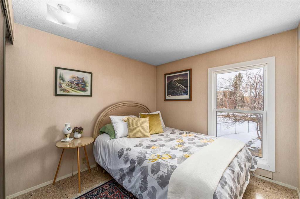 Bathed in natural sunlight and beautifully maintained, this two-story corner townhouse in the established community of Pineridge offers a rare combination of privacy, outdoor space, and pride of ownership. Ideally located beside green space and featuring a private south-facing backyard, this home enjoys sunshine throughout the day and a peaceful setting within the complex. The backyard entry is the access most commonly used in the complex, creating a convenient everyday flow from parking into the home. Step inside to a bright kitchen and dining area filled with natural sunlight, setting the tone for the warm and cheerful feel carried throughout the property. The main floor continues into a comfortable living room and front foyer, with beautiful vinyl plank flooring running throughout the main and second levels. A convenient 2-piece powder room completes the main floor. Upstairs you will find three spacious bedrooms and a full 4-piece bathroom. The south-facing primary bedroom is especially bright and inviting, enjoying sunshine throughout the day and comfortably accommodating a king-size bed, while offering a full wall-length closet for excellent storage. Many of the windows were replaced in 2020, including all bedroom windows, helping improve comfort and energy efficiency. The partially developed basement provides additional flexible space with a rec area, laundry, workbench, and ample storage, offering great potential for future customization. This home has been lovingly maintained by the same owner since 1999 and reflects true pride of ownership throughout. Key mechanical updates include the furnace and central air conditioning installed in 2021, a rare and valuable feature for a south-facing unit. One of the standout features of this property is the private south-facing backyard. Beautifully finished with full brick patio work and raised planters, and surrounded by mature trees, this outdoor space feels peaceful, established, and wonderfully private. It is a perfect extension of the home for gardening, relaxing, or enjoying sunny afternoons. The property includes one assigned parking stall, and the seller currently leases a second stall directly beside it for a small monthly fee, which may be an option for a future owner to arrange through the management company. Bright, charming, and meticulously maintained, this is a fantastic opportunity to own a well-cared-for home in a convenient location close to schools, parks, shopping, transit, and everyday amenities.