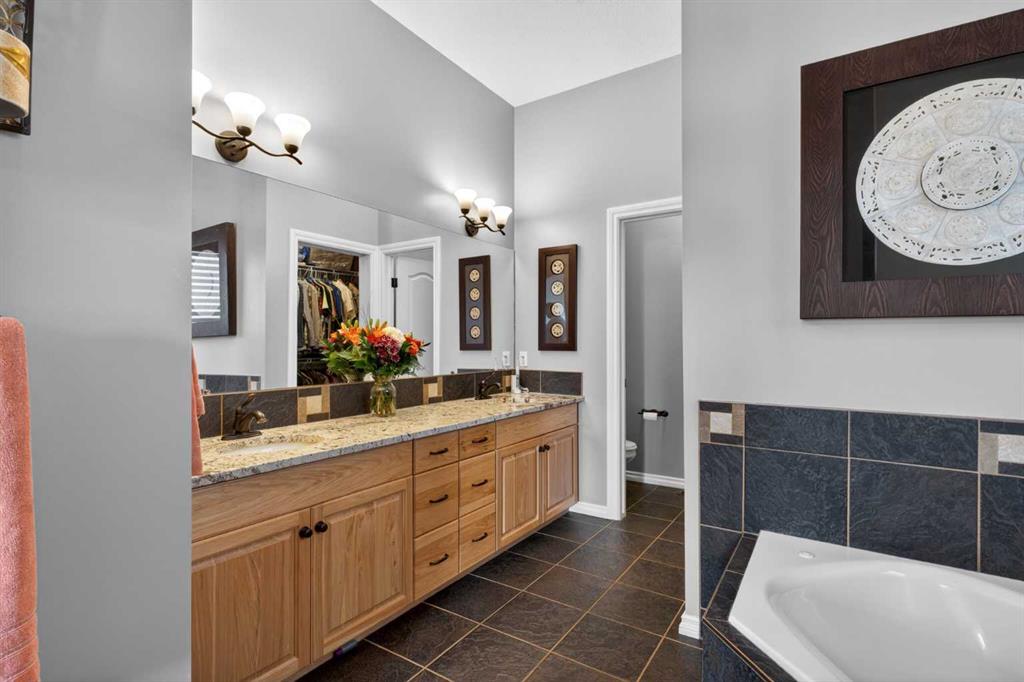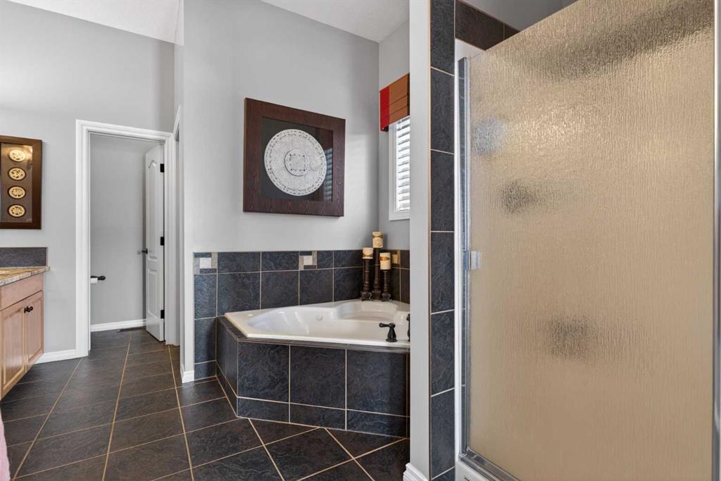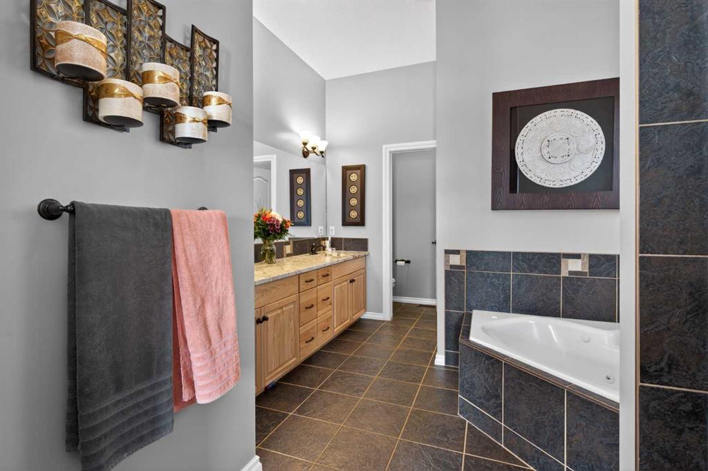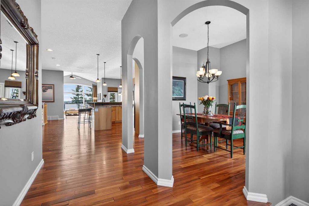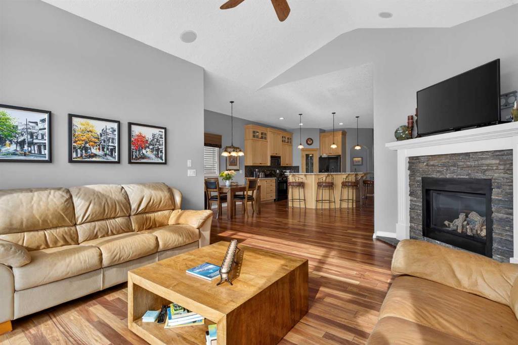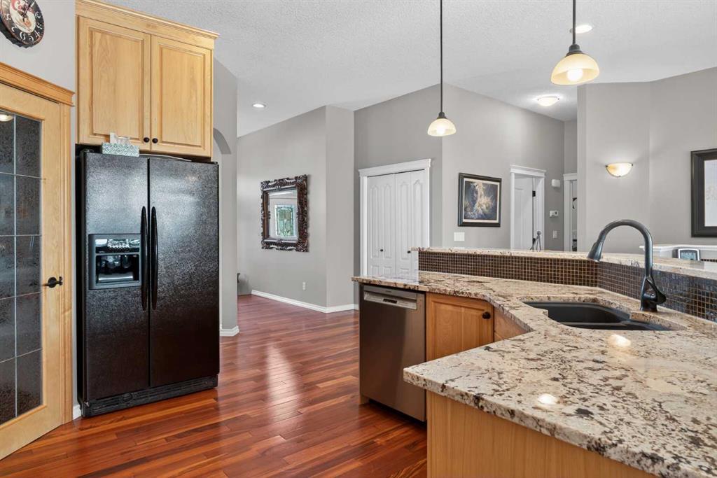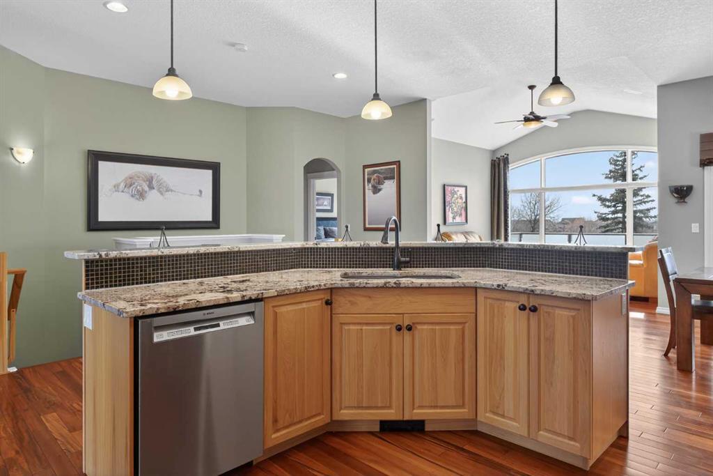 Welcome to this beautiful WALKOUT HOME backing directly onto the GOLF COURSE, offering an exceptional blend of comfort, craftsmanship, and lifestyle. Tucked away on a quiet street with friendly neighbours, this home provides the kind of peaceful setting that truly feels like coming home. Step inside to an inviting main floor featuring 10-foot ceilings, EXPANSIVE WINDOWS and a VAULTED CEILING in the living room centered around a cozy fireplace, creating a bright and airy space perfect for relaxing or gathering with family and friends. A main floor PRIMARY bedroom with a primary ensuite designed for relaxation, complete with a jetted tub and separate shower, creating a private retreat at the end of the day. The formal dining room provides the perfect setting for hosting special dinners and celebrations. The kitchen is both elegant and functional, featuring a gas stove, GRANITE COUNTERTOPS, and beautiful HICKORY CABINETRY , combining timeless style with durability. HUNTER DOUGLAS blinds add a refined touch, while the TIGERWOOD hardwood flooring on the upper level brings warmth and natural beauty. Downstairs, the fully finished walkout basement expands your living space and opens directly to the golf course views. FEATURES heated floors, 2 beds, full bath and a large recreational/family room. Outside, enjoy the durability and ease of composite decking, providing a low-maintenance space to take in the serene golf course backdrop, and more than 20 matured perennials. This home has also seen several thoughtful upgrades and improvements: 18 SOLAR PANELS installed (October 2024) by Orizon Energy , 75 US gallon hot water tanks replaced (January 2025), Water softener replaced (March 2024) , Washer and dryer replaced (November 2023), Dishwasher replaced (October 2022). The irrigation system is professionally maintained through Naiad Irrigation Systems, with the blowout completed September 25, 2025. Welcome home. ***VIRTUAL TOUR AVAILABLE***