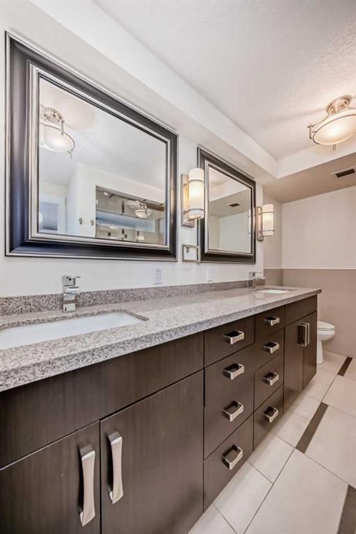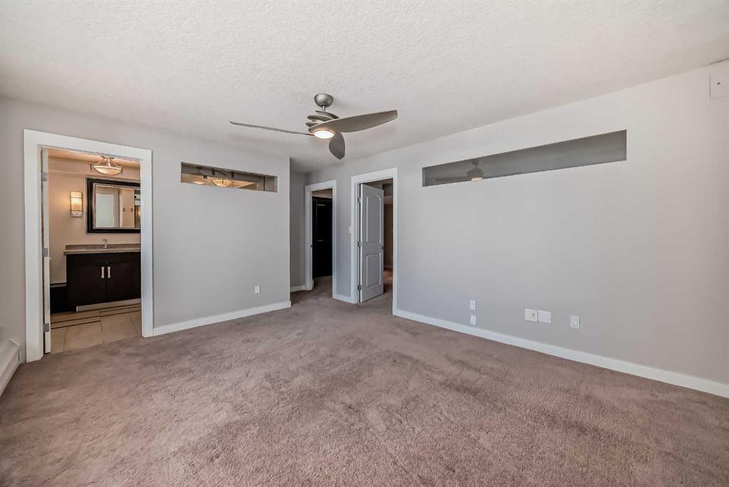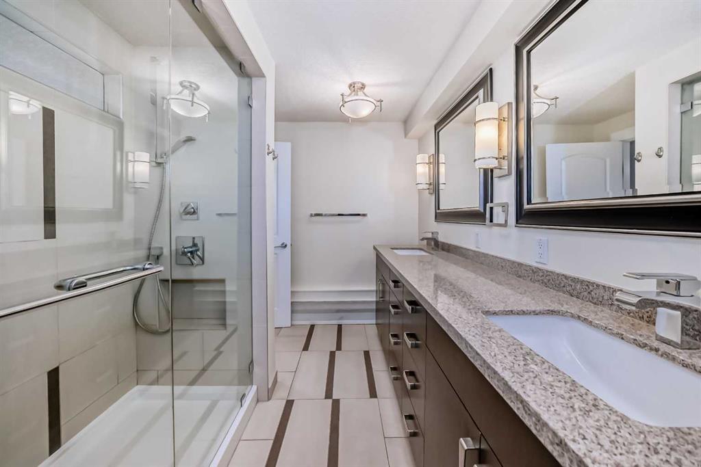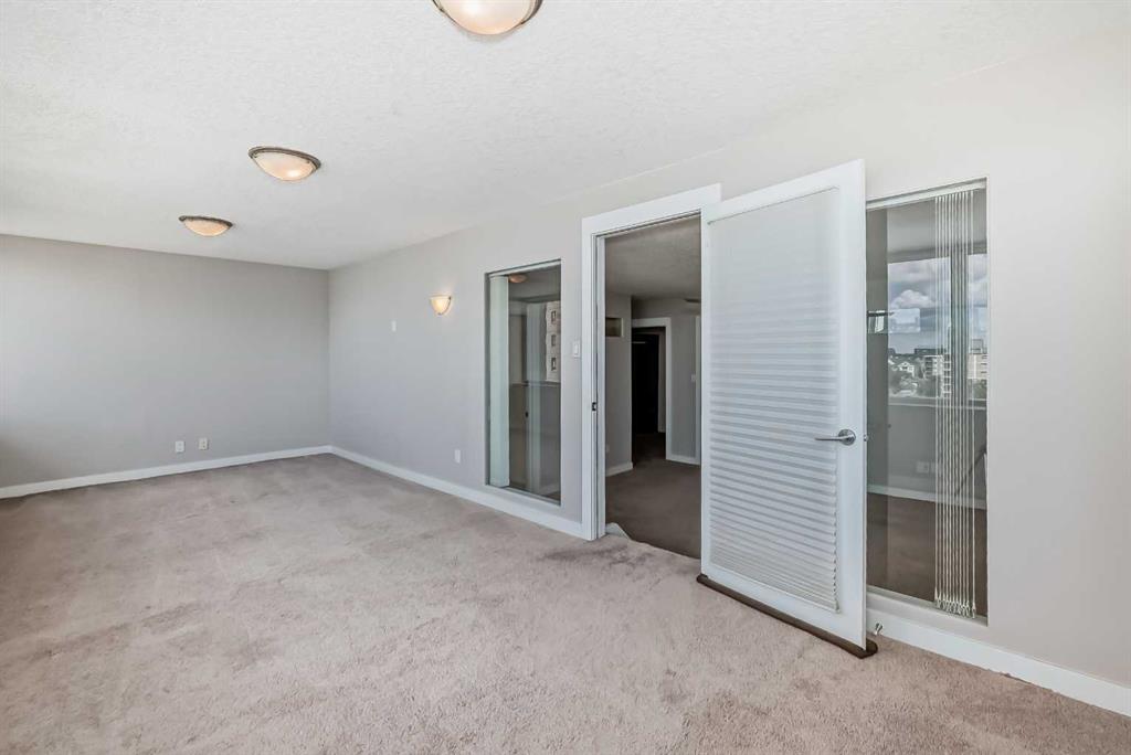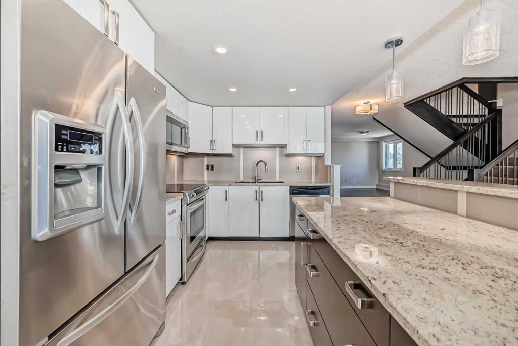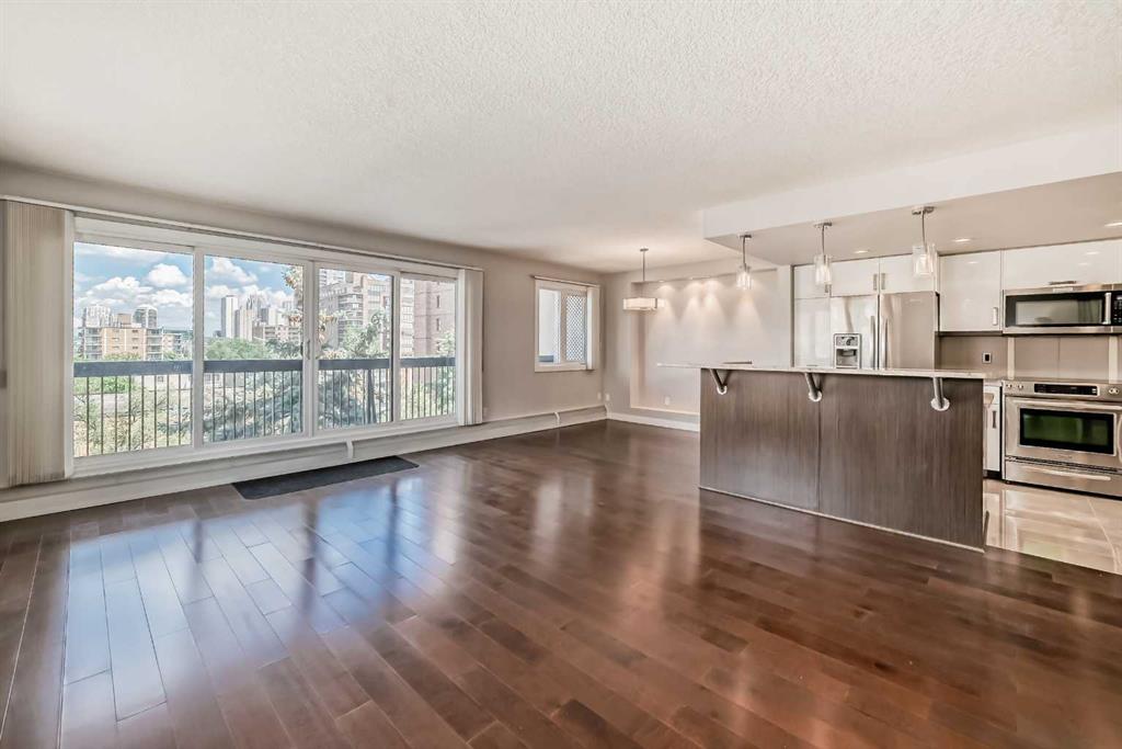 Check out this stunning 2 level top-floor penthouse condominium, offering luxurious living in the heart of the Beltline. A unique unit boasting over 2100 Square feet of renovated space. This exquisite 2-bedroom, 2.5-bathroom, two-story home boasts breathtaking city views and features a spacious and modern layout. The main floor is adorned with engineered wood floors and includes a large front closet and stylish powder room. The layout incorporates a vast great room that seamlessly combines 2 family rooms, kitchen, and dining area. The kitchen is a highlight with its gleaming white rear cabinets, a large dark island with breakfast bar, granite countertops, glissining tile and stainless steel appliances. Conveniently, there is a large laundry room with front-load machines and a sink, along with two in-suite storage rooms. The central dark maple staircase leads to the upper level, where you will find the grand master suite, which includes a private solarium or retreat, a spacious walk-in closet, and a spa-inspired en-suite bath featuring double sinks, a large Caesar stone vanity with ample cabinet space, and a glass shower with rain head. The second bedroom is generously sized with a sizable walk-in closet. The main bath offers a luxurious oversized air tub, a separate shower, and a stylish vanity. A second entry door is located on this floor to access the building hallway. Additional amenities include two underground parking stalls, two large storage units. This pet-friendly condo (for small dogs with prior approval) provides exceptional value and a unique, stylish living experience. Walking distance to 17th avenue, coffee shops, restaurants and plenty of parks. Easy access to transit. Book your showing today!