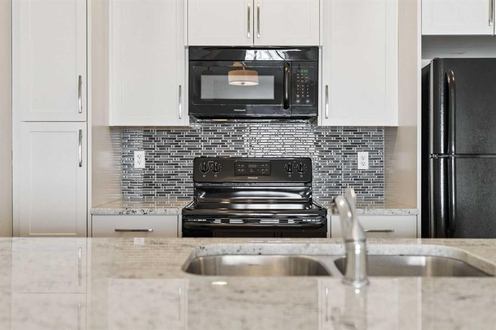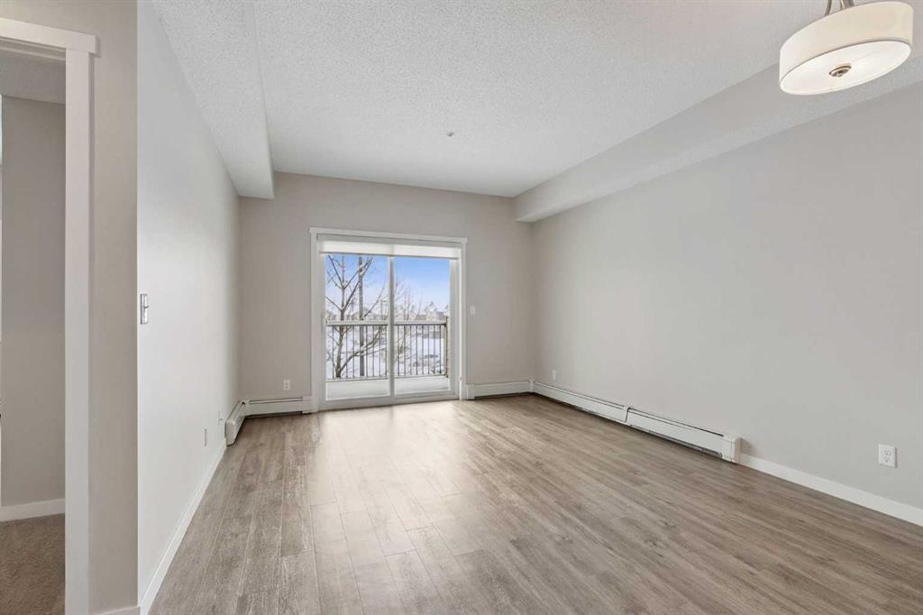 Modern & Inviting Condo in Desirable Sunset Ridge! Welcome to this beautifully designed one-bedroom plus den apartment in The Trading Post of Sunset Ridge, a welcoming and well-established community. Offering over 715 sq. ft. of thoughtfully planned living space, this home blends contemporary style with everyday functionality. The spacious primary bedroom, open-concept layout, and inviting eat-in kitchen create a comfortable and practical setting for both relaxing and entertaining. Large vinyl windows and a patio door allow natural light to fill the space, enhancing the bright and airy feel throughout. The versatile den provides excellent flexibility—ideal for a home office, guest space, nursery, or quiet retreat—easily adapting to your needs. This fully sprinklered building offers added peace of mind, while in-suite laundry, a private storage locker, and two parking stalls—including a heated underground stall—deliver exceptional everyday convenience. Step out onto the generous covered balcony and take in serene southwest-facing ravine views with glimpses of the mountains—an ideal place to unwind at the end of the day. The building features durable Hardie board siding, attractive landscaping, secure underground parking, and well-maintained, light-filled common areas. Elevator access and multiple stairwells ensure easy movement throughout the complex. Enjoy unmatched convenience with medical and dental clinics, a pharmacy, and retail services located on the main floor, along with nearby restaurants, a convenience store, and a gas station just steps away. Experience exceptional value and a connected lifestyle in Sunset Ridge—this condo offers more than just a place to live, it offers a place to truly feel at home.