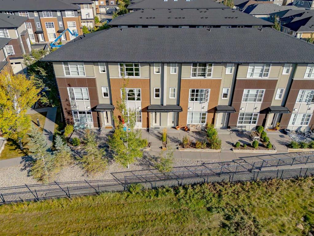 Priced to sell! Enjoy breathtaking ravine and green space views from this beautifully maintained 3-bedroom, 2.5-bathroom townhome in Vantage on Evansridge. With nearly 1,541 sq. ft. of finished living space, a double attached garage, and low condo fees, this home offers outstanding value compared to nearby single-family houses. From the private front patio, step into the main floor featuring a versatile bedroom that can also serve as a home office or den, along with direct access to the garage. Upstairs, the open-concept second level is anchored by a stylish kitchen with a large granite island, stainless steel appliances, dark-stained maple cabinets, and a spacious pantry. The kitchen flows seamlessly into the dining area and bright living room, where expansive windows frame the stunning ravine views. A balcony with a gas line and a convenient half bath complete this level. The top floor offers three bedrooms, two full bathrooms, and laundry. The primary suite features a walk-in closet and a beautifully upgraded ensuite with a double shower. Additional highlights include Hunter Douglas window coverings, a water softener, and an insulated garage that easily fits two vehicles. This move-in ready home is surrounded by natural pathways, playgrounds, and green space, with Our Lady of Grace School, transit, and quick access to Stoney Trail and Deerfoot nearby. With incredible views, modern finishes, and a fantastic location, this is the perfect place to call home. Click the Virtual Tours for more detail!