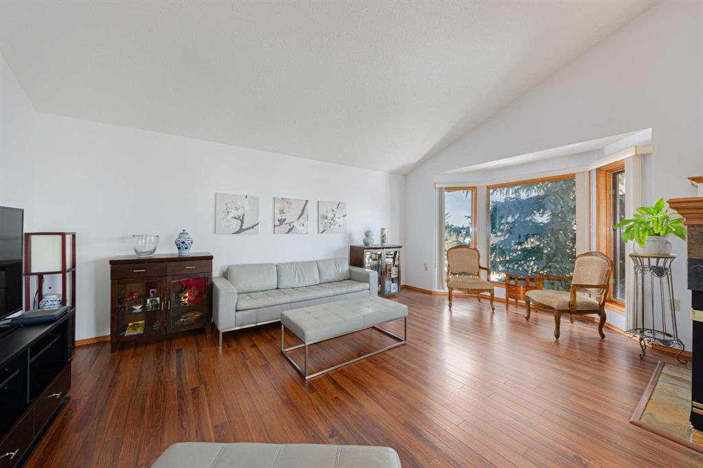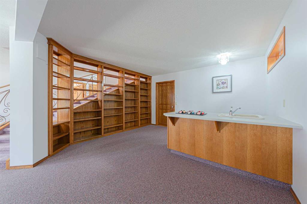 Across from Somerset Park on a large lot is this rare find walkout bungalow with over 3300sqft of usable space! Truly one-of-a-kind in the community of Somerset, main floor features dramatic vaulted ceilings, a three-sided see through fireplace, and floor to ceiling windows allowing abundant natural lights brighten up the whole great room! Well designed layout includes an open kitchen with pantry and a wooden countertop island, a bright breakfast nook which you can sit down and enjoy views of neighborhood from different seasons! The supersized primary bedroom offers two large closets, 2 entry doors, a 4pcs spa like ensuite. There is an additional bedroom, formal dinning room and a full bathroom complete this level. Walk along the artistic railing down to the basement, you will find a spacious recreation room with unique built-in book shelves, a wet bar, good sized 3rd bedroom with again big window, a full bathroom, and a den that can easily be converted into the 4th bedroom. Lots of extra space in furnace room provides multiple options for gym lovers, hobby room, or family’s storage needs. To complete the full package there’s an oversized insulated garage with separate doors/openers. Other highlights includes extra wide driveway, front yard metal gate with brick pathway, central air conditioning for all year round comfort...Long term owner has taken care of every inch of this home and keeps interior in perfect condition! Recent upgrades including new roof & gutter (2022), full house stucco exterior paint (2022) and Poly-B plumbing replacement (2025)! Bungalows of this size are hard to come up in Somerset, especially in a super convenient park front location like this! Call today to view!