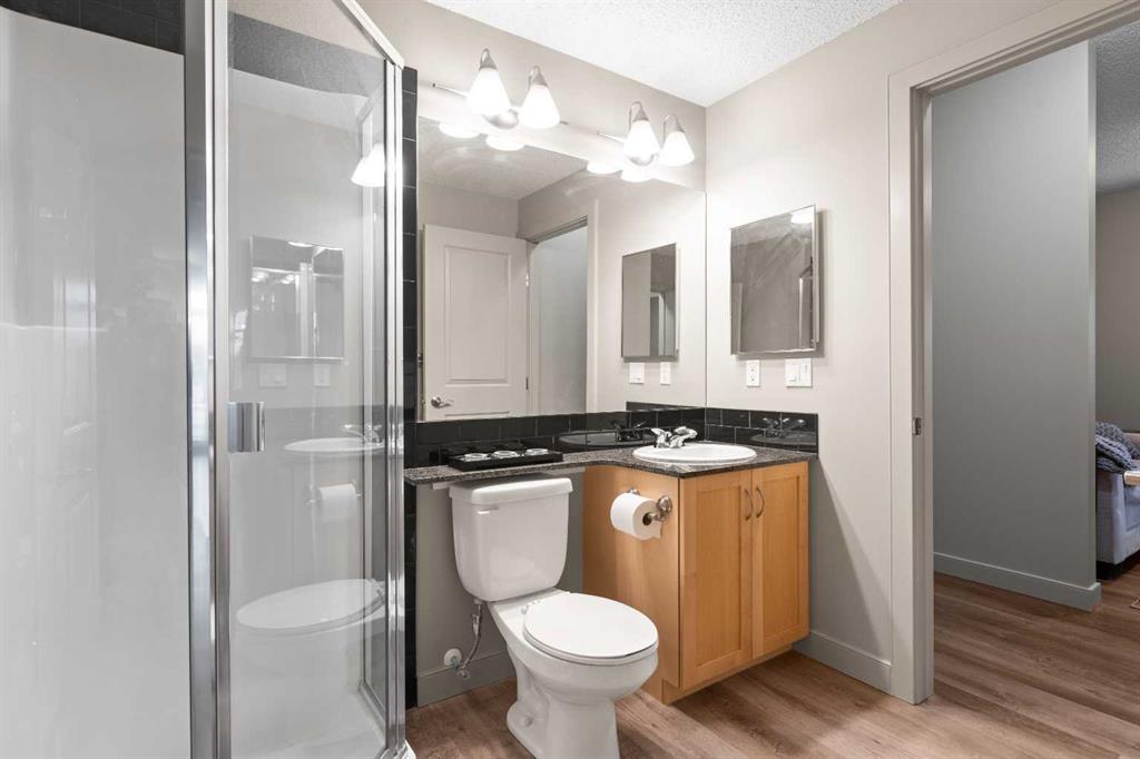 This is a rare find 1080 sq ft, move-in ready 2-bedroom main floor corner unit in the highly sought-after Lake Bonavista community. The kitchen is functional and spacious, featuring granite countertops, an extended eating bar, and under-cabinet lighting. Both bedrooms come with walk-through closets and ensuites, making it ideal for guests or roommates. With 9 ft ceilings, full-length windows, and new vinyl plank flooring throughout, this home is bright and inviting. The south-facing patio wraps around to a west-facing patio with lawn space directly outside, perfect for pet owners. This condo has geo-thermal heating, cooling, and electricity all included in the condo fees, and is built with concrete walls, including most interior walls, for added soundproofing. The building also offers fantastic amenities, including a state-of-the-art fitness center, two social rooms, guest suites, on-site management, and security. Condo fees cover all utilities except TV and Wi-Fi. Located within walking distance of the C-train, bus lines, South Centre Mall and Avenida Place, and with easy access to Deerfoot via Anderson Road, this unit is both convenient and well-connected. A titled underground heated parking stall with extra storage is conveniently located right in front. This home has been cared for by its original owner and is a must-see! Click the multimedia tab for an interactive 3D tour, additional photos, and floor plans.