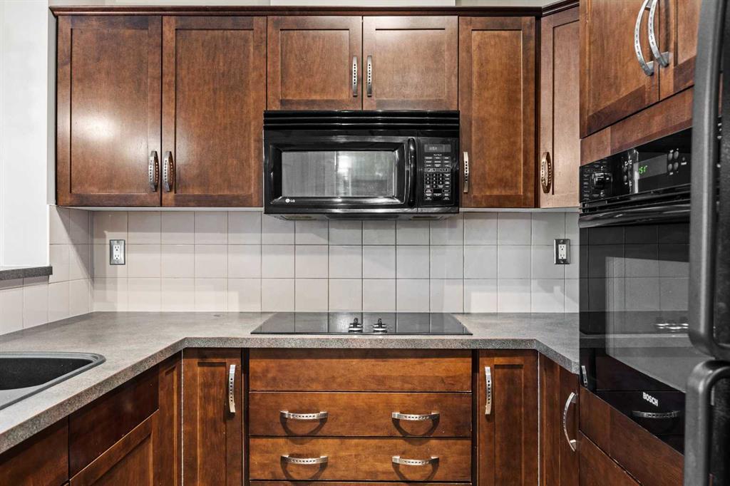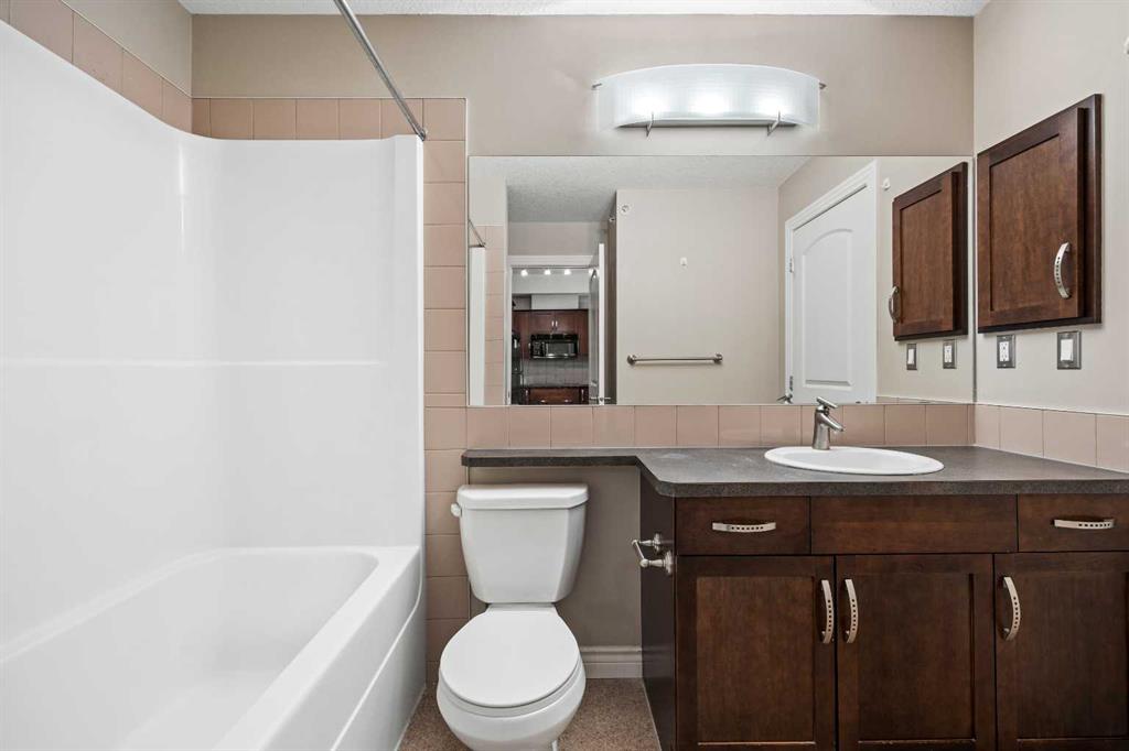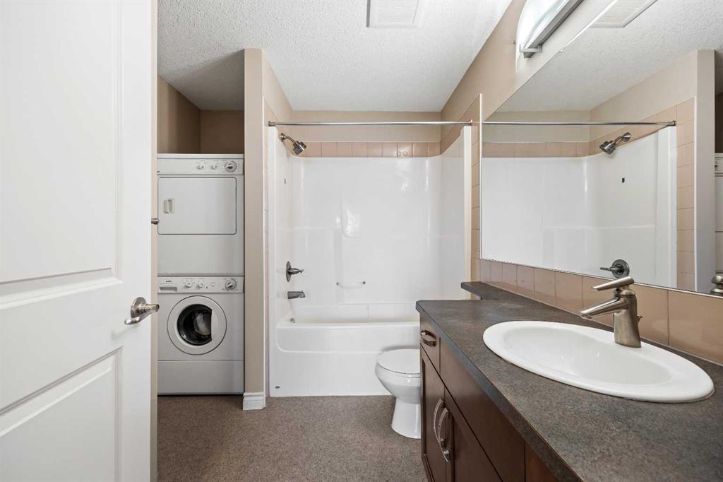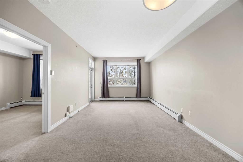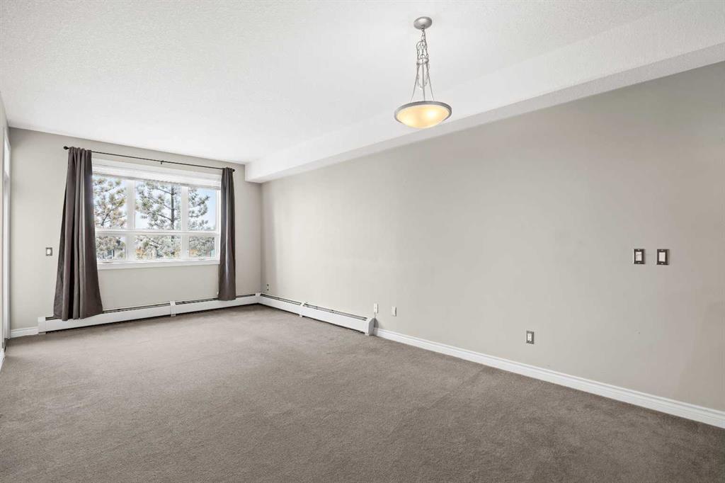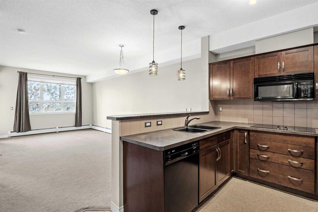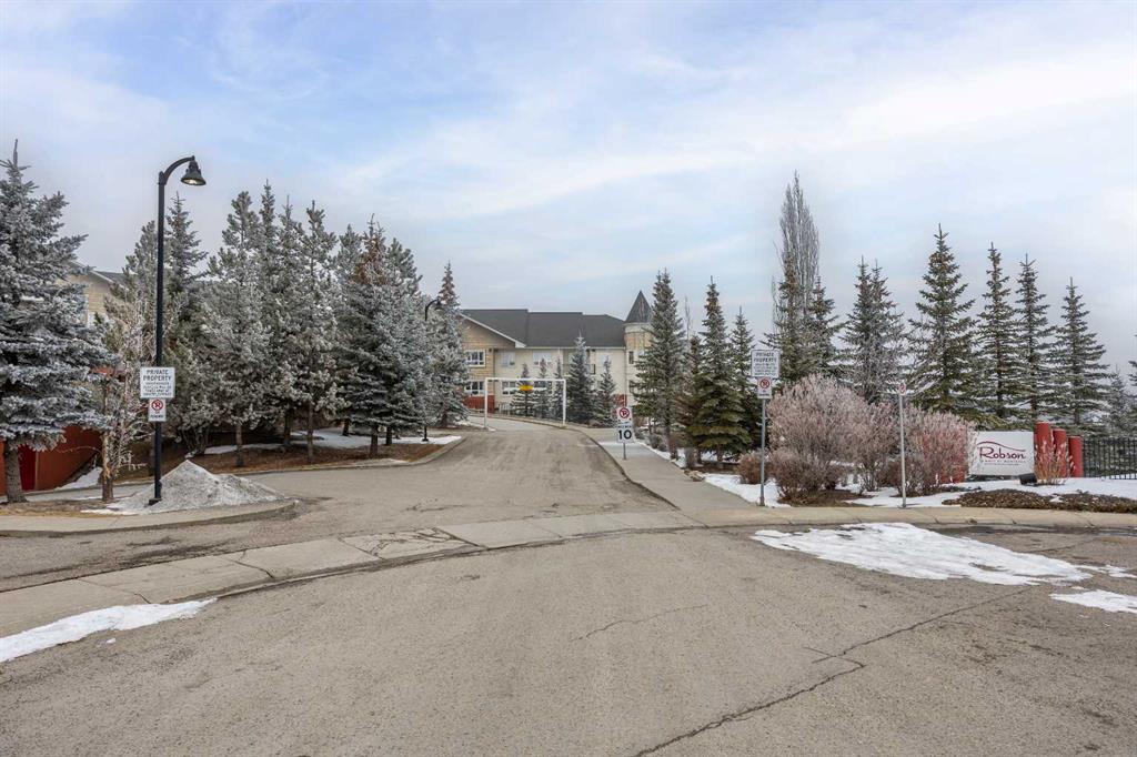 Move-in ready top-floor condo in an outstanding location within prestigious Springbank Hill. Top-floor positioning means no neighbours above, creating a peaceful everyday setting in the sought-after community of Springbank. A sunny southwest-facing balcony welcomes warm afternoon light while mature trees create a surprisingly private outdoor retreat for morning coffee or relaxed evening barbeques thanks to the convenient gas line. Open-concept living supports comfortable day-to-day living and easy hosting with clear sightlines that supports conversations to flow naturally between spaces. Thoughtful kitchen design provides abundant cabinetry and generous counter space, while a peninsula island with raised breakfast bar seating invites casual meals, quick breakfasts or gathering with friends while meals are prepared. A large dining area offers flexibility for everyday dinners or weekend entertaining, positioned seamlessly beside the relaxing living room where oversized windows draw in natural light. Sliding doors extend living outdoors to the covered balcony, creating a comfortable space to unwind while enjoying leafy surroundings. A spacious bedroom is designed for both comfort and functionality, featuring dual walk-through closets that provide excellent storage while delivering convenient cheater access to the 4-piece bathroom. In-suite laundry adds everyday practicality, keeping household routines simple and efficient. Titled underground parking protects your vehicle year-round, while a titled storage locker provides valuable space for seasonal gear and extras. Residents of this well-maintained building enjoy access to a well-equipped fitness facility and a landscaped courtyard that enhances the sense of community and outdoor enjoyment. Surrounding greenspaces, ponds and walking paths create opportunities for fresh air just steps from the complex, while nearby Stoney Trail allows efficient travel across the city. Daily errands remain convenient with Aspen Landing and Westhills only minutes away, brings grocery stores, restaurants, cafés and essential services within easy reach. A unique pocket of Calgary where natural surroundings meet urban convenience, this Springbank Hill location supports an active and connected lifestyle.