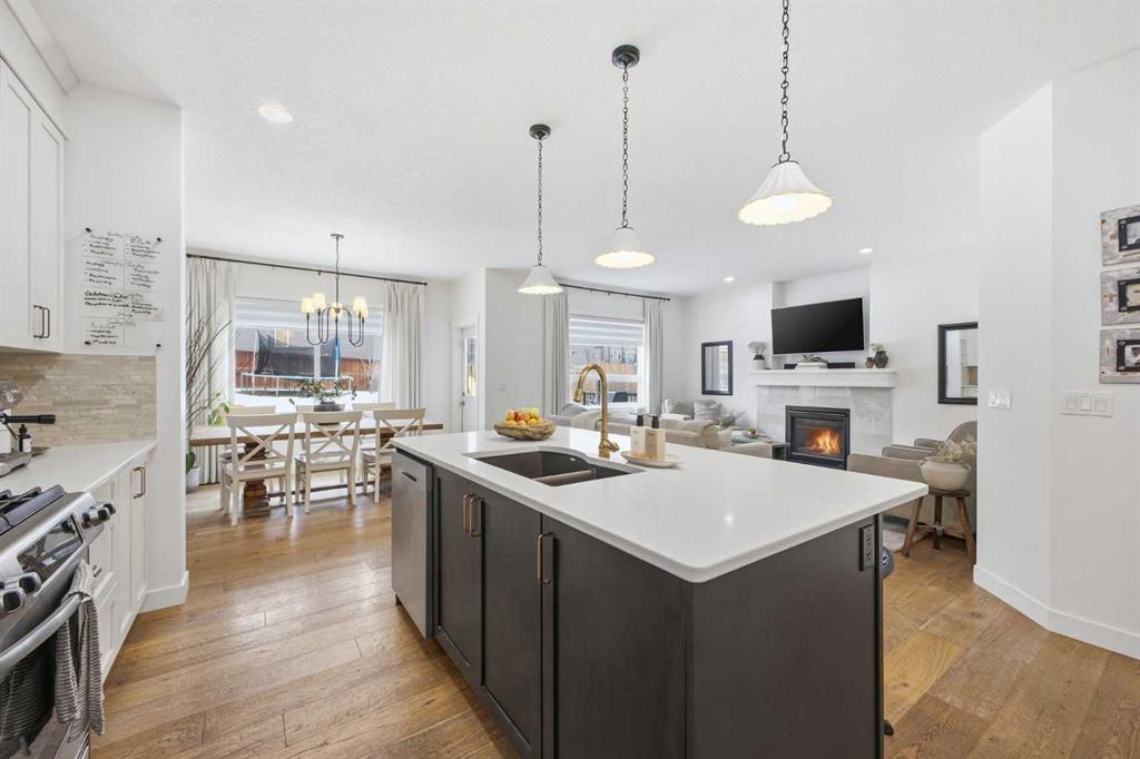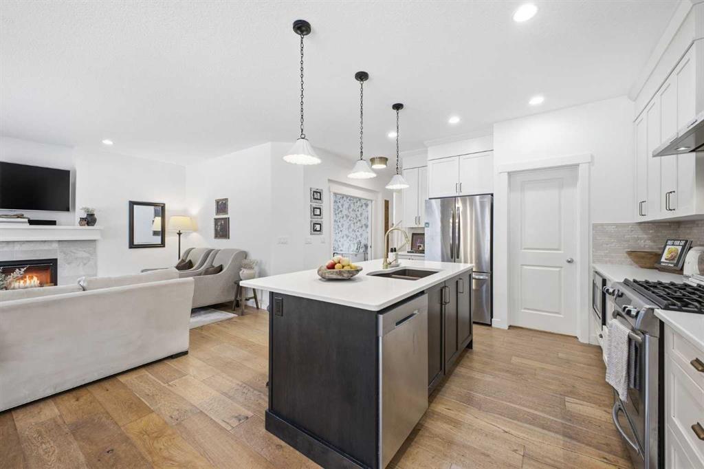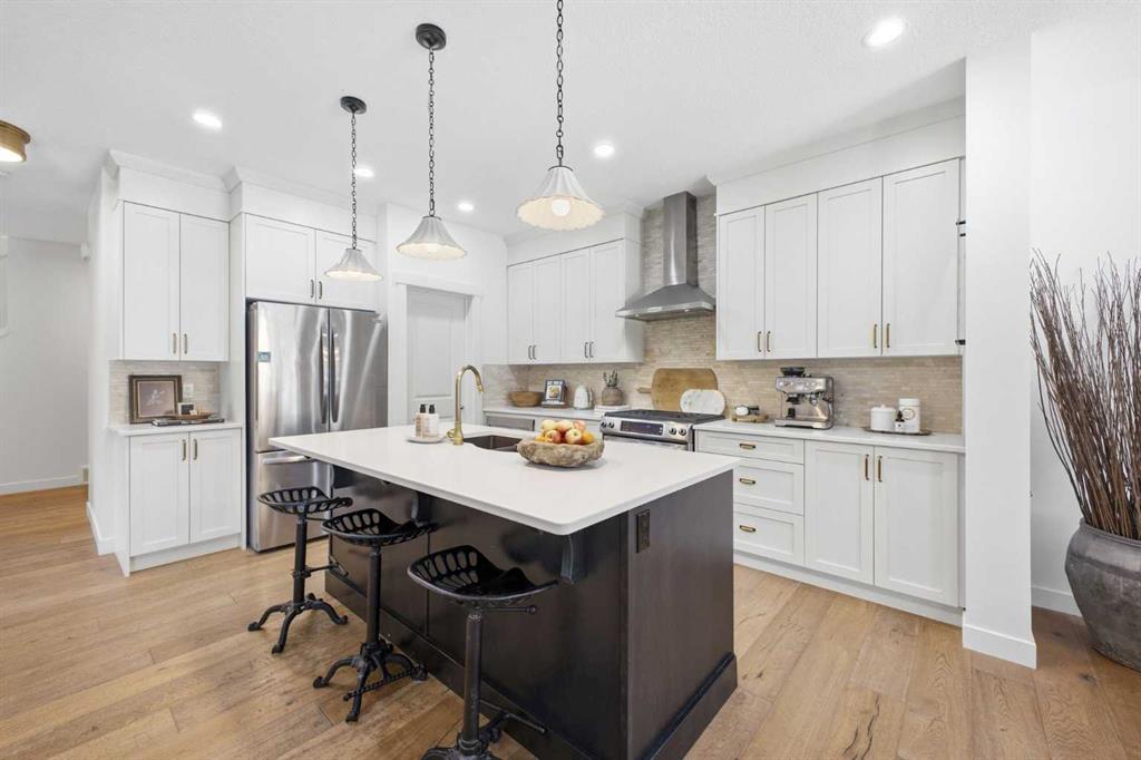 Located in the family friendly community of Nolan Hill and situated on an expansive corner lot, this beautifully appointed 4+1 bedroom home offers over 3,600 sq ft of thoughtfully designed living space. Wide plank hardwood floors, soaring ceilings, and upgraded lighting create an inviting main level centered around a stylish living room with a feature fireplace. The adjacent chef’s kitchen is finished with quartz countertops, a generous island with seating, abundant cabinetry including a walk in pantry, and stainless steel appliances. A spacious dining area easily accommodates gatherings with family and friends. Just off the kitchen, a private office with new carpet and pocket doors provides an ideal work from home retreat. A mudroom and a 2 piece powder room complete the main floor. The upper level, also updated with new carpet, hosts four generously sized bedrooms, a convenient laundry room, and a 4 piece main bath. The serene primary suite features a walk in closet and a spa inspired 5 piece ensuite with dual sinks, a corner soaker tub, and a separate shower. The fully developed basement expands your living space with a huge recreation room—perfect for movie nights or a games area—along with a fifth bedroom and roughed in for a full bath, ideal for guests or teens . Outside, the expansive backyard offers both a deck and patio, providing multiple zones for outdoor dining, relaxation, and play. A double attached front garage adds everyday convenience. This exceptional home is ideally located close to parks, schools, shopping, public transit, and offers quick access to Sarcee and Shaganappi Trails. New Catholic School Opening Next year!