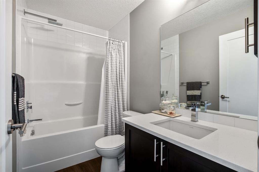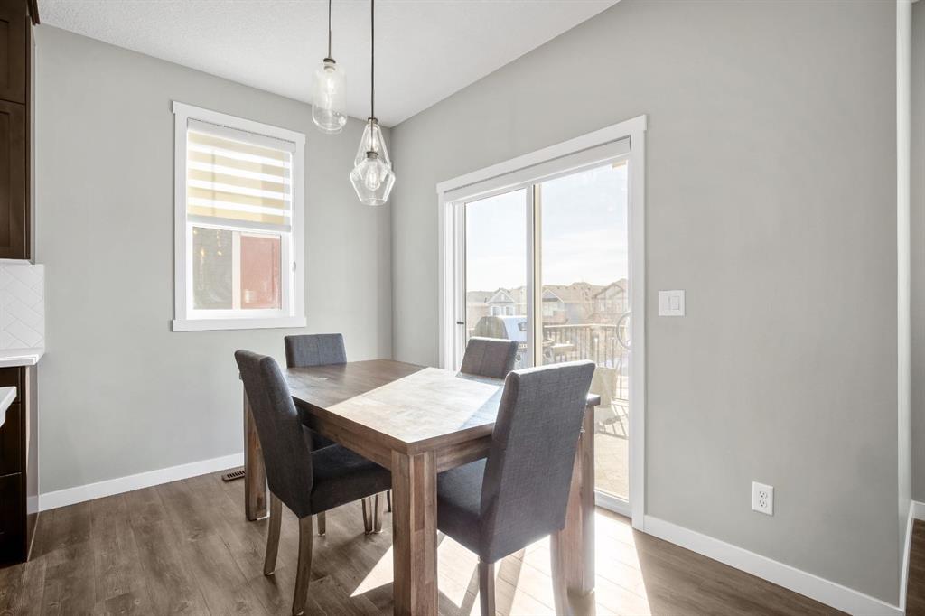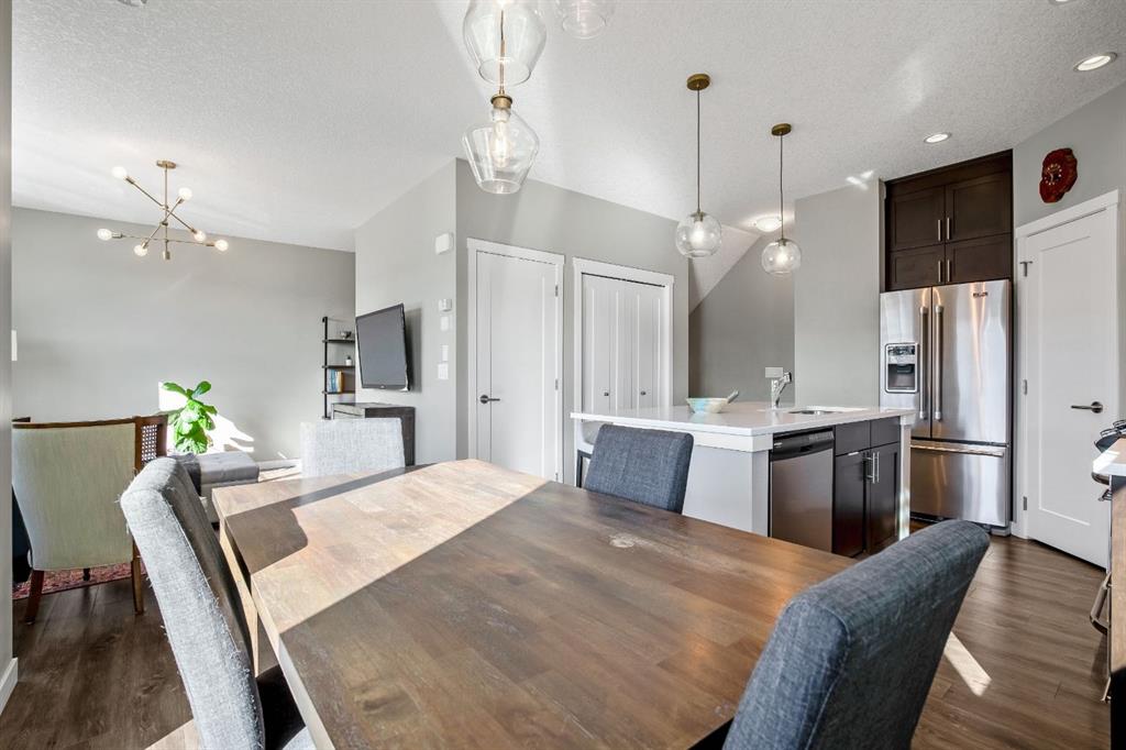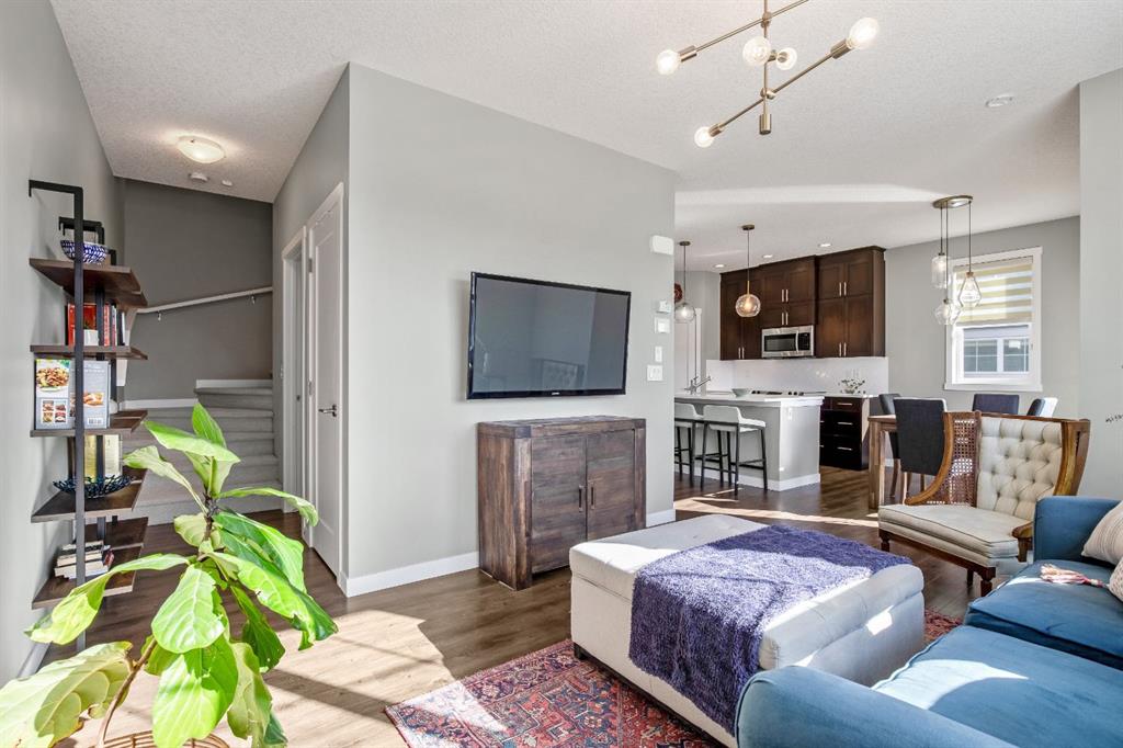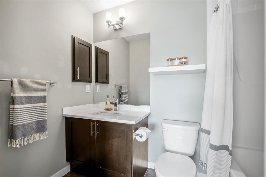 Welcome to this bright and stylish 3 storey corner unit townhome in the sought-after community of Nolan Hill, offering over 1,325 sq. ft. of living space in a very well-managed complex close to parks, ponds, pathways, shops, and restaurants. The main living level features 9’ ceilings and an open-concept layout with a spacious living room, dining area, and a modern kitchen complete with quartz countertops, stainless steel appliances, updated lighting and hardware, and a large central island. Sliding doors off the dining area lead to a sunny south-facing deck. Upstairs you’ll find two spacious bedrooms, each with its own 4-piece ensuite, making this an ideal layout for roommates, guests, or a home office setup. The primary bedroom also features a walk-in closet. A main level powder room & laundry room add extra convenience. The entry level offers a welcoming foyer and access to the attached single garage with additional storage/mechanical space. Located just minutes from major shopping including Costco, Walmart, Home Depot and Canadian Tire, along with restaurants, schools, playgrounds, and extensive walking paths throughout the community. A great opportunity for first-time buyers, professionals, or investors looking for low-maintenance living in a fantastic NW community.
