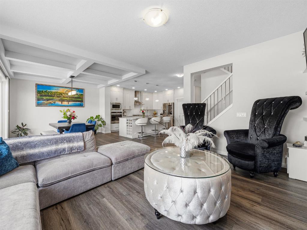 Welcome to this stunning detached home in the sought after lake community of Mahogany, offering over 3,700 sq ft of FULLY DEVELOPED beautifully designed living space. This well-maintained home features 4 spacious bedrooms and 3.5 bathrooms, with thoughtful upgrades throughout. The main floor showcases a gorgeous kitchen with GRANITE countertops, UPGRADED APPLIANCES and an OVERSIZE ISLAND, perfect for entertaining or gathering with family. The dining is elevated by COFFERED CEILING detailing, adding elegance and architectural interest to the space, while BUILT-IN SPEAKERS create the perfect atmosphere for entertaining or relaxing at home. The open-concept layout provides a warm, inviting flow. Upstairs, you’ll find a bright bonus room enhanced by SKYLIGHTS, filling the space with NATURAL LIGHT. The convenient upper-floor laundry room adds everyday practicality, while the upgraded bathrooms feature GRANITE countertops. The spacious primary ensuite features tile flooring, DUAL sinks, a WALK-IN closet and a relaxing SOAKER TUB, along with a beautifully finished shower with TILE extending to the ceiling, adding a modern and luxurious touch. The FULLY DEVELOPED basement expands your living space with a LARGE recreation room perfect for games or movie nights, a WET BAR, an additional bedroom, full bathroom and plenty of storage space. Step outside to enjoy the spacious deck and yard, ideal for kids, summer BBQs, and relaxing evenings. Located within walking distance to the lake and wet pond, you’ll be able to fully enjoy the lifestyle offered by this incredible community. This beautifully cared-for home offers the perfect blend of SPACE, UPGRADES, and LOCATION in one of Calgary’s most DESIRABLE LAKE communities.