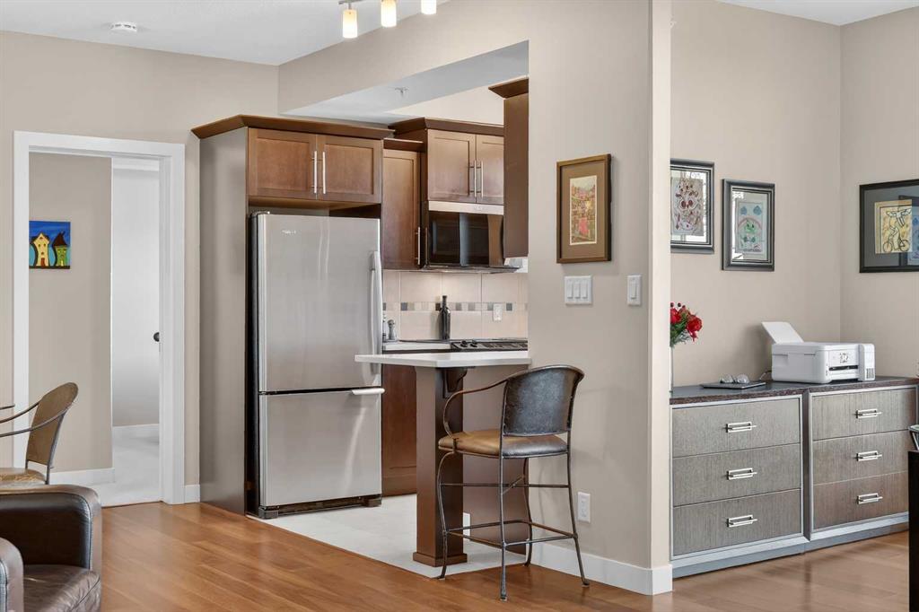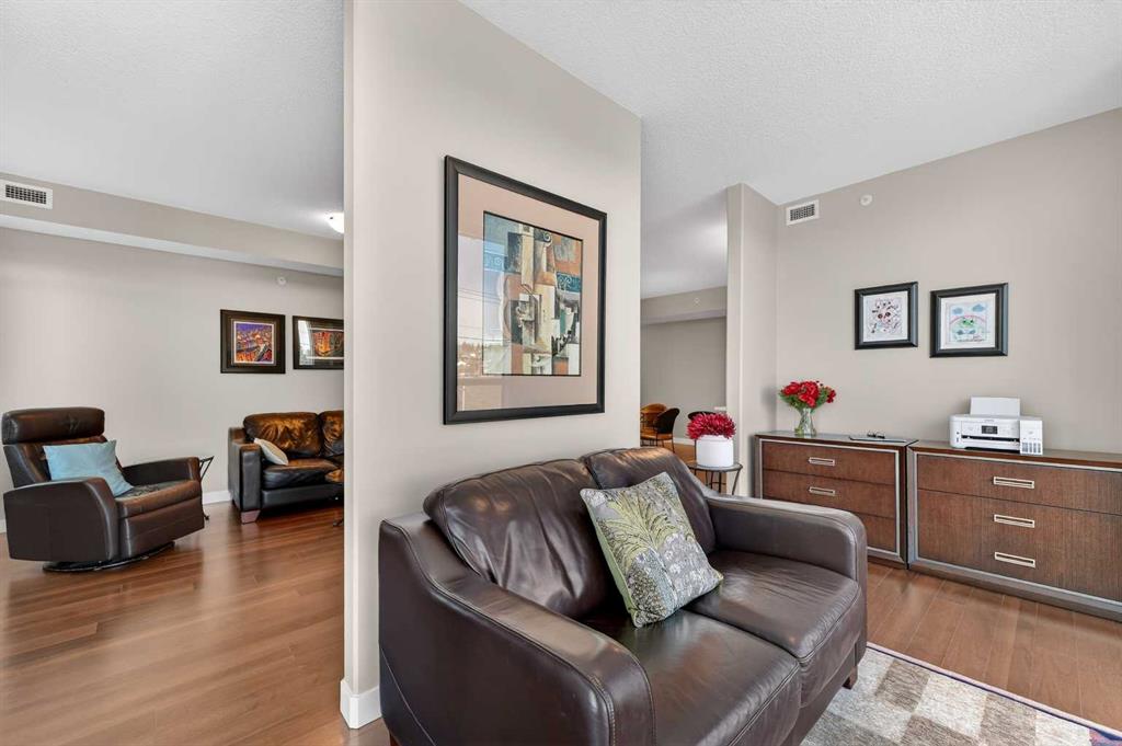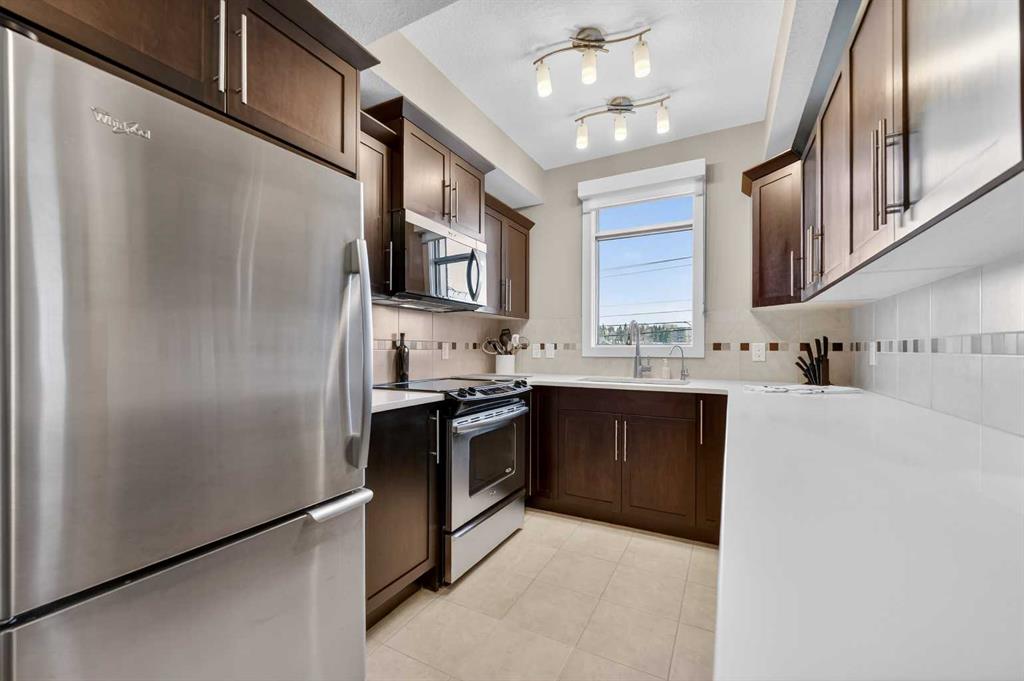 Welcome to The Groves of Varsity, a highly sought-after condominium complex in the heart of Varsity - one of Calgary’s most desirable and established northwest communities. Known for its tree-lined streets, proximity to parks and pathways, excellent schools, shopping, transit access, and close connection to major routes, Varsity offers a lifestyle that balances urban convenience with residential charm. This spacious corner unit offers almost 1,300 sqft of bright, open living space enhanced by 9-foot ceilings and an abundance of large windows that fill the home with natural light throughout the day. The thoughtful layout provides exceptional flow between the kitchen, dining, and living areas - ideal for both everyday living and entertaining. The well-appointed kitchen features stainless steel appliances, including a new microwave/hoodfan combination and new dishwasher, quartz counters, ample cabinetry, and functional workspace. Durable laminate flooring runs through the main living areas, complemented by tile flooring in the entry, kitchen, and bathrooms, and comfortable carpet in both bedrooms. The unit includes two generously sized bedrooms and two full bathrooms, offering flexibility for guests, roommates, or a dedicated home office. In-suite washer and dryer add daily convenience. Additional value features include a separately titled underground parking stall and a separate assigned storage locker, providing secure parking and extra space for seasonal items. Residents of The Groves of Varsity enjoy access to premium building amenities including a fully equipped fitness center, steam room, fully equipped social room, and a rooftop terrace with BBQ area offering impressive views. With nearby shopping, dining, transit, U of C, and green space just steps away, this location supports both an active and connected lifestyle. Whether you are downsizing, investing, or seeking a low-maintenance home in a mature, high-demand community, this bright corner unit offers space, comfort, and long-term value in one of northwest Calgary’s premier condominium developments.