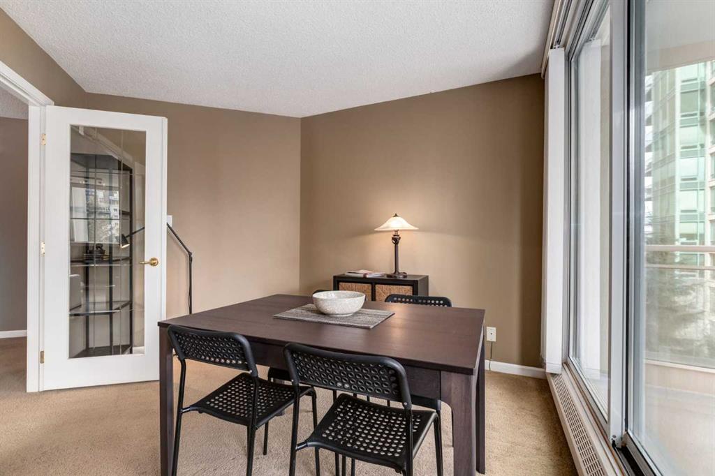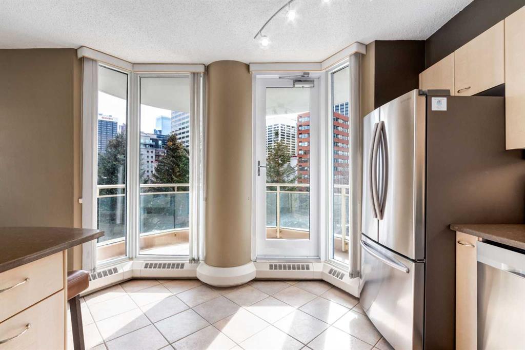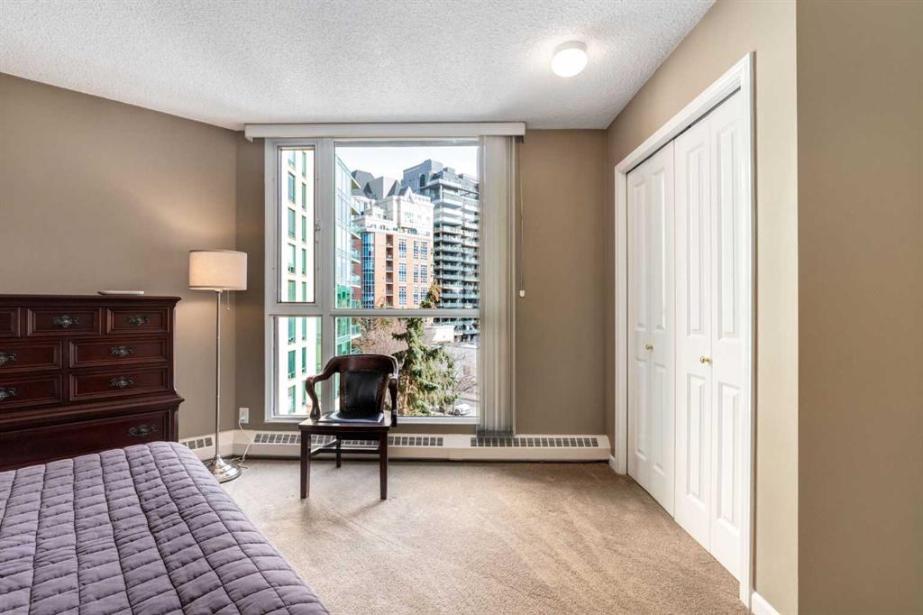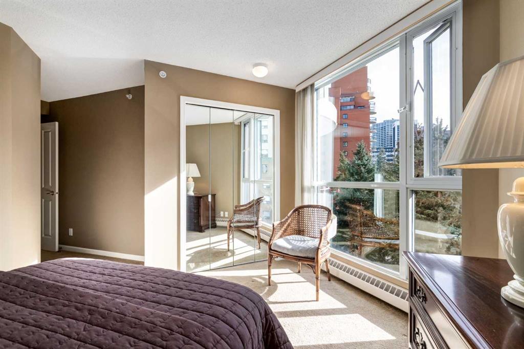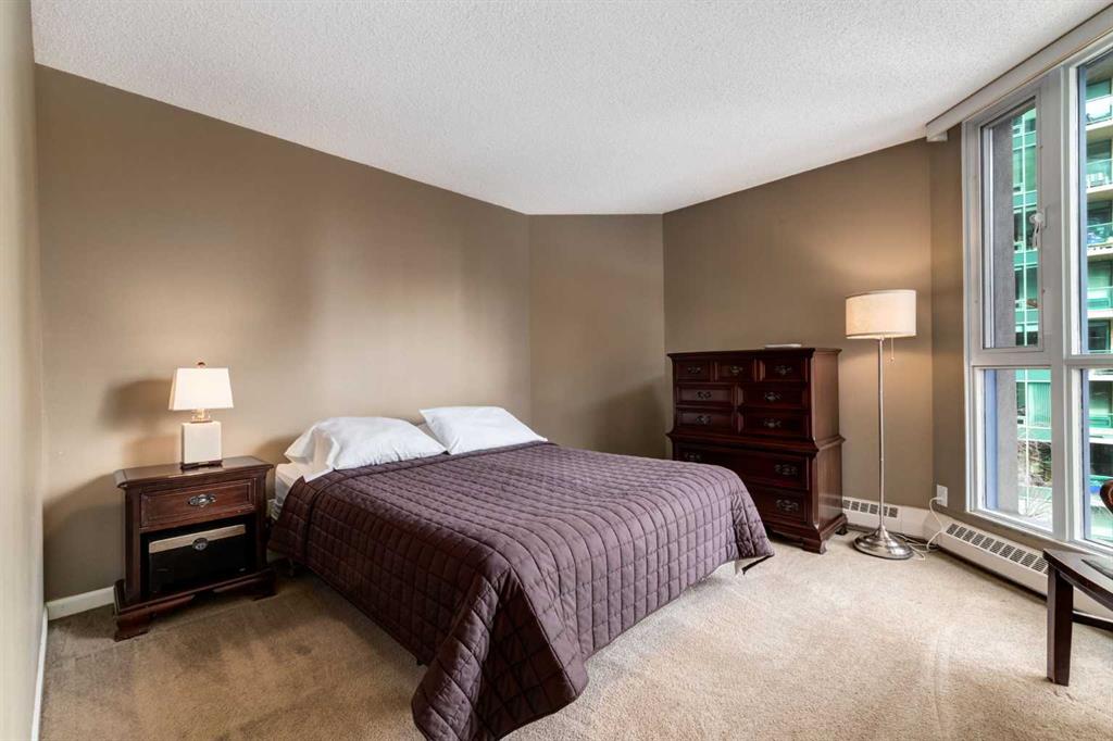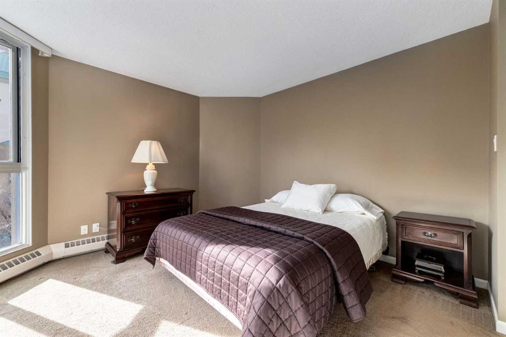 ** Open house for Saturday, March 14 is canceled ** Your EXECUTIVE, urban condo lifestyle beckons at The Liberte - conveniently located in the highly sought-after Eau Claire area of Downtown Calgary, this prime END UNIT is a rare offering! Featuring a spacious floor plan with nearly 1200 SF, 2 bedrooms on either side of the suite PLUS a versatile DEN and 2 full baths. You are welcomed into the suite with a gracious tiled foyer with mirrored closet doors. The layout of the home provides separation and privacy between the living areas and the two bedrooms, each designed as a comfortable retreat. The main living/dining area is anchored with an inviting tiled gas, mantled fireplace with oversized windows to take in the urban views, the kitchen has been updated with quartz counters, stainless steel appliances and offers ample cabinets, drawers and counter space including breakfast ledge plus there is access to one of the two balconies – super convenient for your summer BBQ-ing. The den, located off the living area, is perfect for a home office, cozy dining room or other flex area as needed and features access to the second balcony. Primary bedroom easily accommodates a king-sized bed, features walk through closets with mirrored doors, and offers a 4 piece ensuite bath with soaker tub. Second bedroom is at the opposite end of the suite (great for room mates or a guest bedroom), 3 piece bath is convenient located right beside it. Side by side washer & dryer is a great upgrade. Rarely do suites in this location in the building come on the market. Titled parking stall in the heated underground parkade and additional storage locker are included. As a resident of Liberte, you will appreciate the updated and renovated common areas, have access to premium amenities, including a tennis court, bike storage, a fully equipped fitness centre and a residents lounge complete with a kitchen - ideal for your group gatherings. Plus, the building is very pet friendly! This prime location is situated just steps from some of the city’s finest restaurants including Alforno Bakery and Buchanan’s Chop House, is a short stroll to the Bow River, waking & bike pathways, Prince’s Island Park, the downtown core and surrounded by upscale amenities to suit all lifestyles; this incredible location is sure to impress. Offering the perfect blend of convenience, lifestyle, and luxury, this property is an unparalleled opportunity in the heart of the city. Perfect for the discerning buyer that wants luxury living and an option for a true lock and go lifestyle. Book your viewing Today!