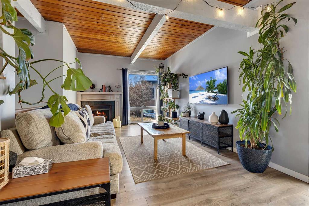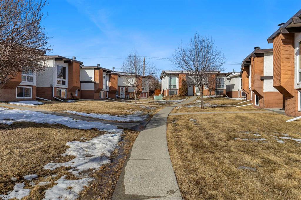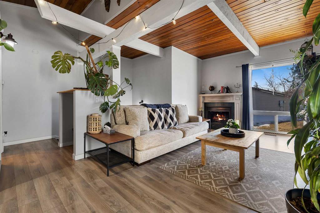 Welcome Home! This stunning half duplex bi level offers one of a kind living featuring: OVER 1,000 sq ft / 2 bed / 1 bath | BACKYARD SPACE (can be fenced!) | VAULTED CEILINGS WITH EXPOSED WOOD BEAMS | BACKS GREEN-SPACE | UPDATED | LOW CONDO FEES & more in an idyllic location in Calgary's 'PINERIDGE' - 10m to downtown, a complex surrounding by green spaces and walking paths, easy access to main roadways (16th/stoney/deer foot), amenity nearby, schools and so much more. Heading into the complex will give you a breathe of fresh air, with beautiful greenery, greenspaces, & walking paths welcoming you to your unit. Stepping inside, you'll immediately feel how open the place feels with vaulted ceilings w/ exposed wood beams throughout the main floor. The main floor layout has a very functional layout that makes the place feel very spacious, connecting the living and dining together along with vaulted ceilings and large windows making it give an open feel. Not only that, there is the cozy comfort of wood railings, and wood burning fireplace with mantel for the cooler days. Kitchen is tucked away to keep the place feeling neat, with sink overlooking the yard. Enjoy the warmer days off the east facing deck, that backs onto a green space! The main floor is complete with an updated full bathroom that has bath/shower combo, toilet, vanity. Lower level offers 2 bedrooms, utility room, laundry, storage space. The property has updates over the years like: paint, bathroom (tile), fixtures, hardware, furnace, and more. The best part is, the condo fees are very low at just over $300 a month, making this a very affordable option ! Likewise, condo has great condo management. Unit comes with 1 outdoor stall, along with the complex that has visitor parking. With so much to offer, this makes a great place to call home. Book your viewing today, before it's gone!