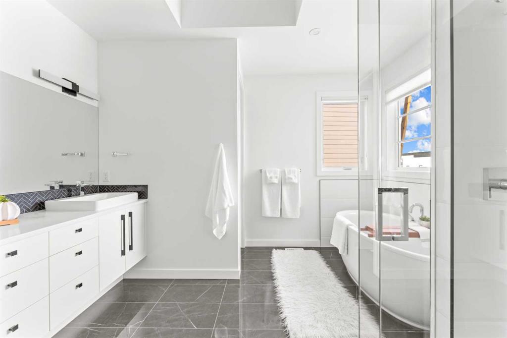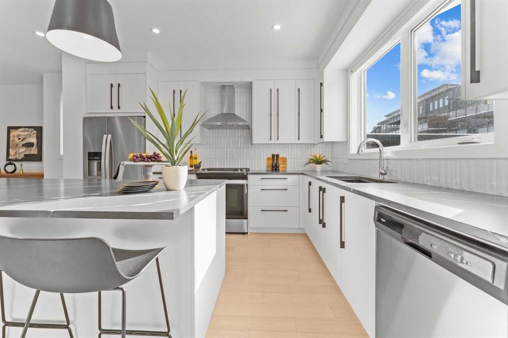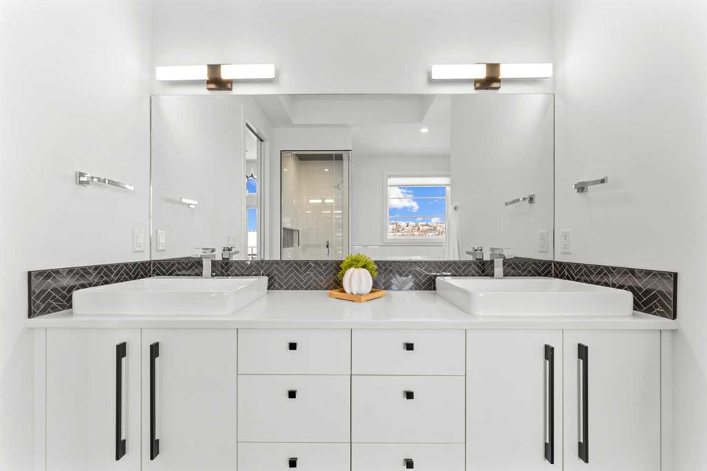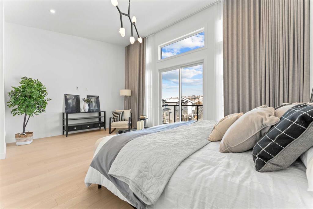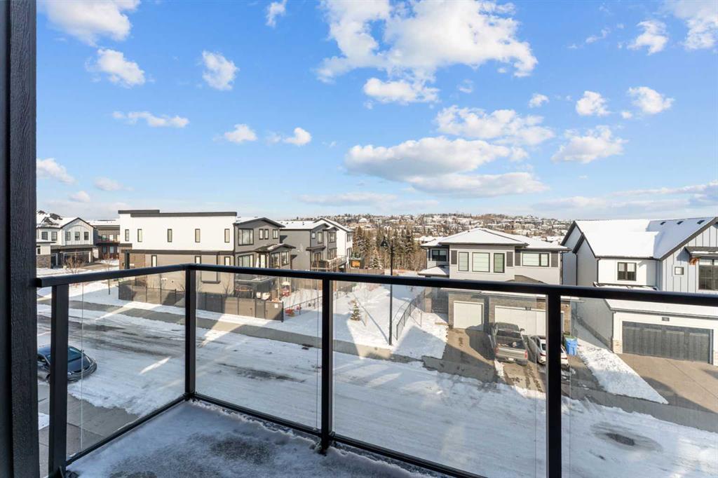 ***OPEN HOUSE – Sunday, March 15, 12:00 - 2:00 PM*** Discover upscale living in this beautifully finished TRUMAN home in the prestigious community of Timberline Estates. Ideally located near parks, pathways, schools, Aspen Landing Shopping Centre, Calgary Transit, the LRT, and with easy access to the mountains, this 3-bedroom home offers an exceptional blend of style, comfort, and convenience. The bright open-concept main floor is designed for both everyday living and entertaining, featuring 9-foot ceilings, engineered hardwood flooring, a private den, elegant powder room, and central air conditioning. The chef-inspired kitchen is a standout with full-height cabinetry, soft-close doors and drawers, quartz countertops, stainless steel appliances, a gas stove, built-in microwave, range hood, under-cabinet lighting, oversized island with seating, walk-in pantry, and dedicated wine room. The adjoining dining and living areas are equally impressive, complete with a wet bar and striking quartz fireplace feature wall. Step out to the covered main-floor balcony with BBQ gas line connection for easy indoor-outdoor living. Upstairs, the spacious bonus room with tray ceiling detail adds flexibility, while the primary suite offers a private retreat with its own covered balcony, custom walk-in closet with built-ins, and a spa-inspired 5-piece ensuite with freestanding soaker tub, tiled shower, dual vanities, and separate water closet. Two additional bedrooms, a full bathroom, and a well-appointed laundry room with built-in cabinetry and sink complete the upper level. The finished basement extends the living space with a movie room, wet bar, and full 4-piece bathroom, perfect for entertaining or relaxing. Additional highlights include painted ceilings, built-in bench seating at the lower entrance, a 200-amp electrical panel, and an oversized garage. A rare opportunity to own a thoughtfully upgraded home in one of Calgary’s most desirable west-side communities.