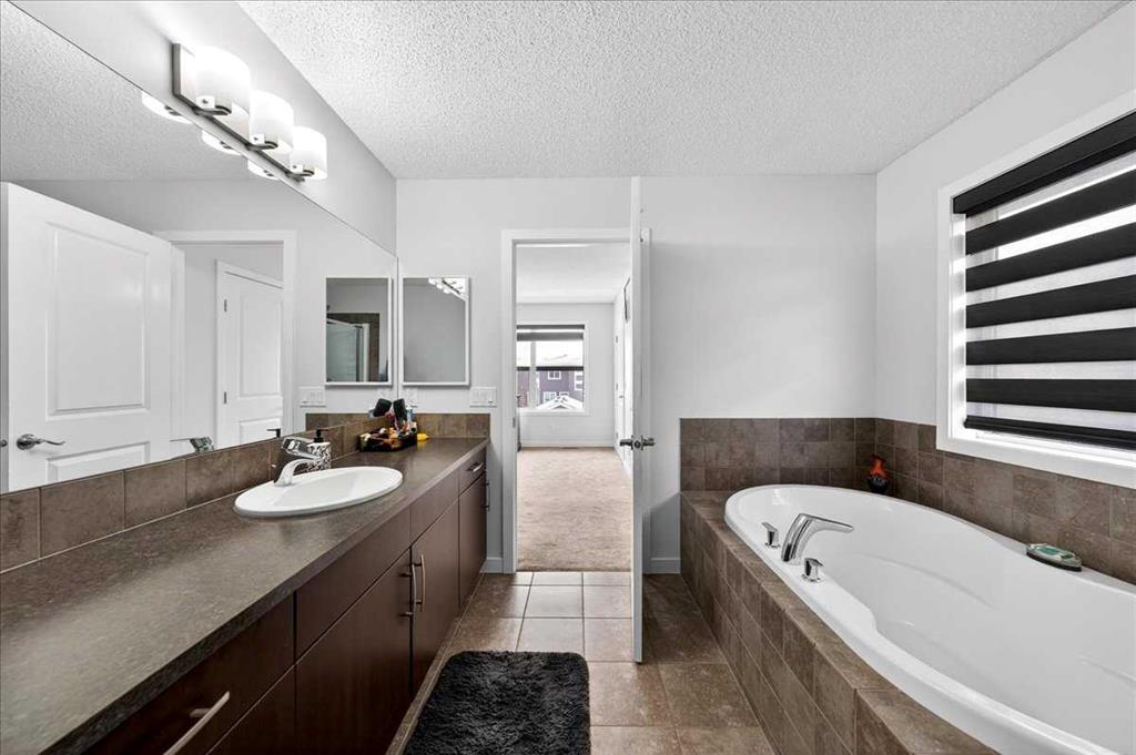 2300+ SqFt home with LEGAL BASEMENT SUITE that shows great, Located in the heart of Redstone with easy access to nearby amenities and steps to a playground! Step inside the foyer to find the 2-pc bath. The bright and open main living area features a timeless espresso kitchen that overlooks the main living and dining areas. Perfect for entertaining, beautiful kitchen with eat-in island with double sink, quartz counters and stainless-steel appliances. Patio doors from dining area lead to fenced and landscaped yard with spacious deck. Upstairs is a bonus room to relax and lounge. Master bedroom is complete with double door walk-in closet and 4-piece ensuite including soaker tub and walk-in shower. Two more generous sized bedrooms, 4-piece bathroom and laundry complete the upper level. Basement is fully finished with 2 bedrooms and LEGAL SUITE. Very cooperative tenants who are paying $1350 inclusive of utilities are willing to stay. A fully landscaped backyard is finished with two sitting areas - a deck and lower patio, and is fully fenced. Call to view this home today!