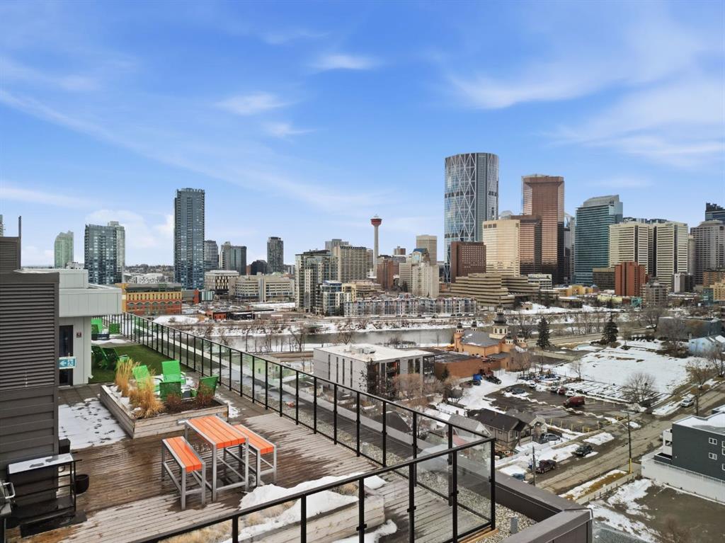 Welcome to Era by Minto Communities, where modern design meets exceptional lifestyle in one of Calgary’s most vibrant inner city locations. This beautifully designed 1 bedroom, 1 bathroom residence offers the rare opportunity for Airbnb and short term rentals, making it an incredible option for both homeowners and investors seeking flexibility and strong income potential. Bathed in soft northeast facing light, the thoughtfully designed open concept layout creates an effortless flow between the kitchen, dining, and living areas. Large windows invite the city skyline inside, while the private balcony provides the perfect place to enjoy your morning coffee, fresh air, and peaceful views above the energy of the city. The contemporary kitchen is both stylish and functional, featuring quartz countertops, stainless steel appliances, sleek modern cabinetry, and a spacious island ideal for entertaining or everyday living. The interior is finished with durable vinyl plank flooring, in suite laundry, and air conditioning, offering comfort and convenience year round. Additional highlights include titled underground parking and a titled storage locker, ensuring secure and practical everyday living in the heart of downtown. Era raises the bar with LEED inspired construction and advanced smart building technology, including facial recognition access, one way video calling, secure package lockers, community messaging, and a virtual concierge system designed for modern urban living. Residents also enjoy access to the spectacular rooftop patio, complete with panoramic skyline views, fire pits, BBQ areas, and indoor workspaces, creating the perfect environment to relax, entertain, or work remotely. Perfectly located between Bridgeland and Crescent Heights, you are just steps from the Bow River pathways, Bridgeland LRT station, renowned restaurants, boutique shopping, cafes, and downtown Calgary’s core. Whether you are looking for a stylish city home, a lock and leave lifestyle, or a high performing short term rental investment, this exceptional residence delivers it all. Opportunities like this in an Airbnb permitted building are rare! Book your private showing today.