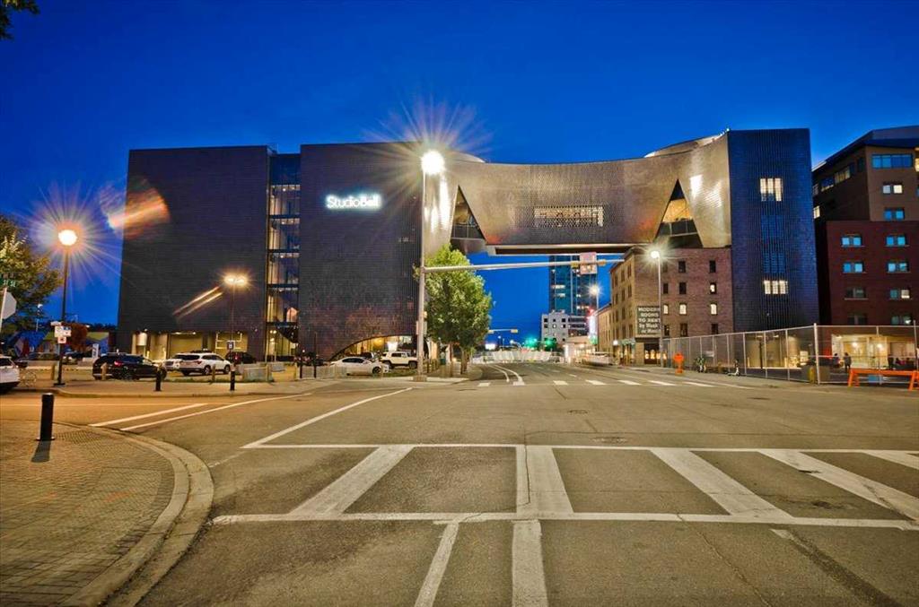 Welcome to Riverfront Pointe, where this splendid 2-Bedroom, 2-Bathroom, 1 heated underground parking stall Condo awaits. Enjoy Panoramic views of the river and lush river valley from every window, including the Balcony. The open-concept kitchen, dining and living area is ideal for entertaining, enhanced by 9-foot ceilings and abundance of natural light. Convenience is key with in-suite laundry, and fully equipped fitness room. Enjoy the modern kitchen, granite countertop and SS appliances. Stroll to trendy restaurants, live music venues, the world-class Library, and scenic Bow River Pathways. Hurry and schedule your showing, and make this your Downtown Oasis.