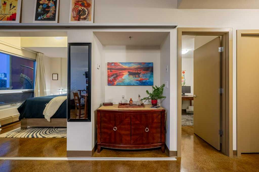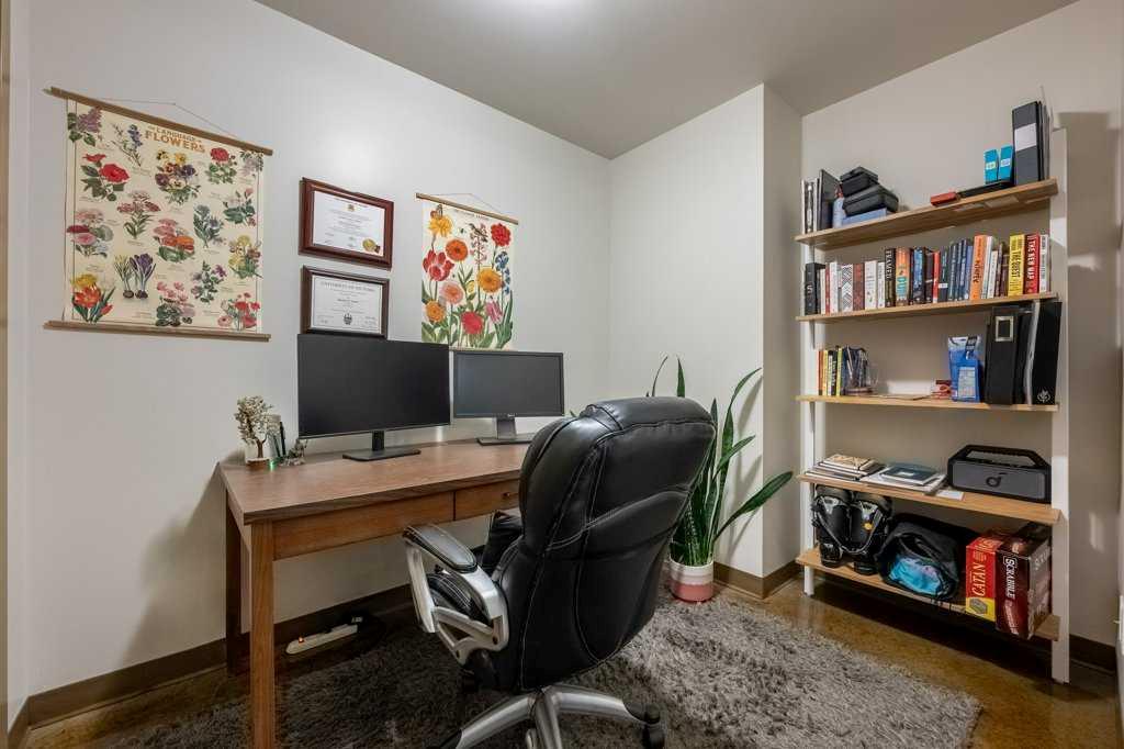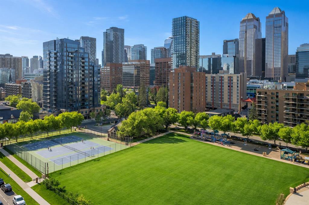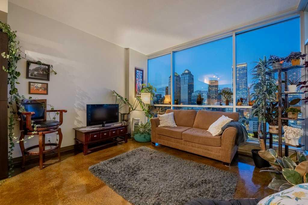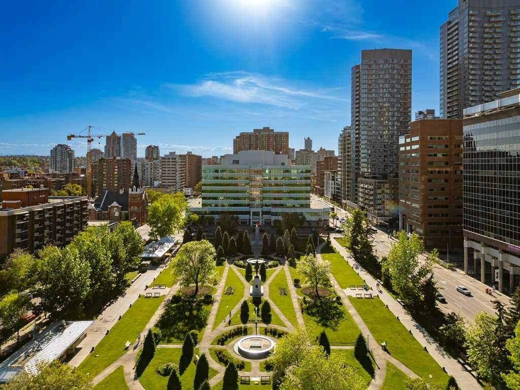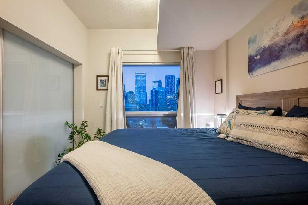 Seventeen floors above the city, the perspective changes. The noise fades, the skyline sharpens and Calgary stretches out before you like a living postcard. This is Colours, a short-term rental approved complex, where a coveted two bedroom residence delivers a truly panoramic view of the downtown skyline. You know, the kind of million dollar outlook typically reserved for penthouses - yet here you experience it for roughly a third of the price. Stunning floor-to-ceiling north facing windows frame the city like artwork, flooding the space with natural light while showcasing Calgary’s towers, lights and endless urban energy. The freshly polished concrete floors add warmth and modern edge, perfectly complementing the open-concept layout that flows effortlessly between the kitchen, dining and living spaces. The primary bedroom becomes a front-row seat to the skyline, offering a calm retreat with those same sweeping visuals, while the versatile second bedroom easily transforms into a guest room or home office. Step onto your private balcony with natural gas hookup and watch the city shift from golden sunset to sparkling evening lights - a daily reminder that some views never get old. Boasting central A/C, underground parking stall, bike storage and a shared outdoor community garden that brings colour and greenery to the area. And the lifestyle below? It's just as compelling: order top shelf cocktails at Proof, grab a quick bite at First Street Market, Ten Foot Henry, Pat & Betty, St James Corner or Calcutta Cricket Club. Calgary's emerging entertainment district is just moments away which include the new arena, shopping destinations and convention centre. You are also completely walkable to the c-train line, Central Memorial Park, 17th Avenue, downtown office core and the Stampede grounds. Whether you’re a young professional, first-time buyer, investor or someone simply looking to live above it all, Colours ticks all the boxes. The skyline everyone wants - the price few expect.