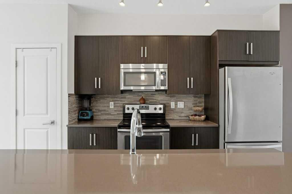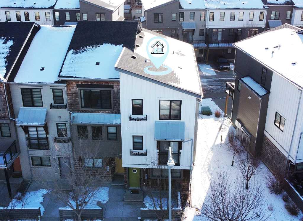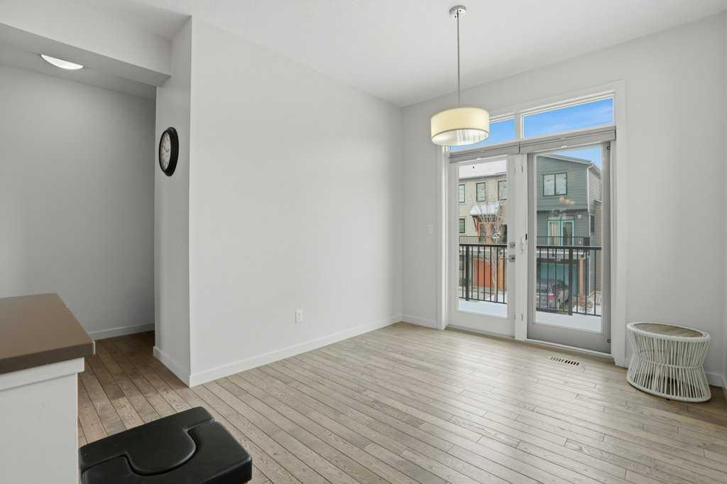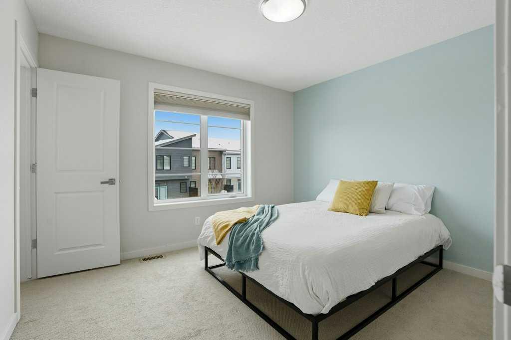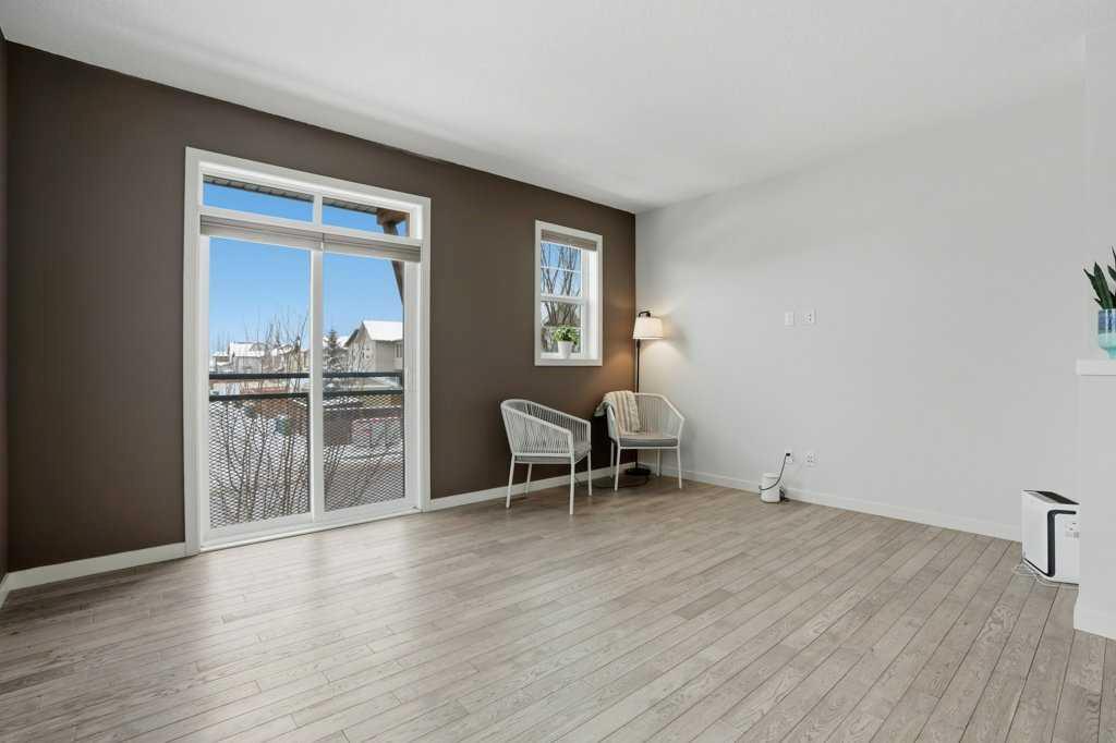 Welcome to this spacious end-unit townhouse in the desirable community of Walden, located just steps from shopping, restaurants, transit, parks, and pathways. This home features a double-attached tandem garage with a driveway, plus ample street parking nearby. Step inside to the bright main floor with hardwood flooring and custom blinds throughout. The dining area is filled with natural light from large windows and a glass door leading to your private balcony with BBQ gas line. The kitchen features stainless steel appliances, quartz countertops, and a large island with breakfast bar, perfect for entertaining. The west-facing living room is flooded with natural light, creating a warm and inviting space to relax. A convenient 2-piece bathroom completes this level. Upstairs, you’ll find three bedrooms with blackout blinds, including a primary bedroom with a walk-in closet and private ensuite. One of the secondary bedrooms also features its own walk-in closet. This level also includes a second full bathroom and convenient laundry area.The double attached tandem garage is fully finished with drywall, paint, textured ceilings, and two windows, offering excellent additional storage space. The Edison is a well-maintained complex in the heart of Walden, featuring beautifully maintained landscaping and convenient access to nearby amenities. Book your showing today!