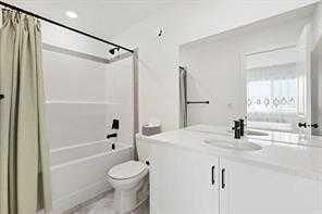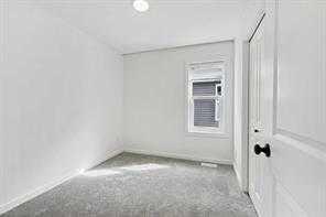END UNIT - NO CONDO FEE! Welcome home to this beautifully maintained 2-storey townhome, built in 2024, has New Home Warranty. Step inside to discover a modern open-concept main floor, where the living, kitchen, and dining areas flow seamlessly over beautiful laminate flooring. The stylish kitchen is a chef’s dream, featuring quartz countertops, a large island, and stainless steel appliances. A convenient half-bath completes this level Upstairs you'll find a generously sized primary bedroom comes complete with a walk in closet and 4-pc ensuite bathroom. Two additional good sized bedrooms, 4 pc bath and laundry complete the upper floor. The backyard, with alley access, provides ample space and potential for a future double garage, workshop, or man cave. The Basement is fully framed, also electrical work is completed , featuring a large window and rough-in for a bathroom, giving you the opportunity to design a space that fits your needs. An easy walk to the shops, restaurants & services of Legacy Common and All Saints High School. The community features 15km of scenic pathways into the 300 acre Pine Creek Valley environmental reserve, numerous playgrounds, a community garden & public art. Easy access to MacLeod Trail & Stoney Trail allow you to get anywhere in the city easily