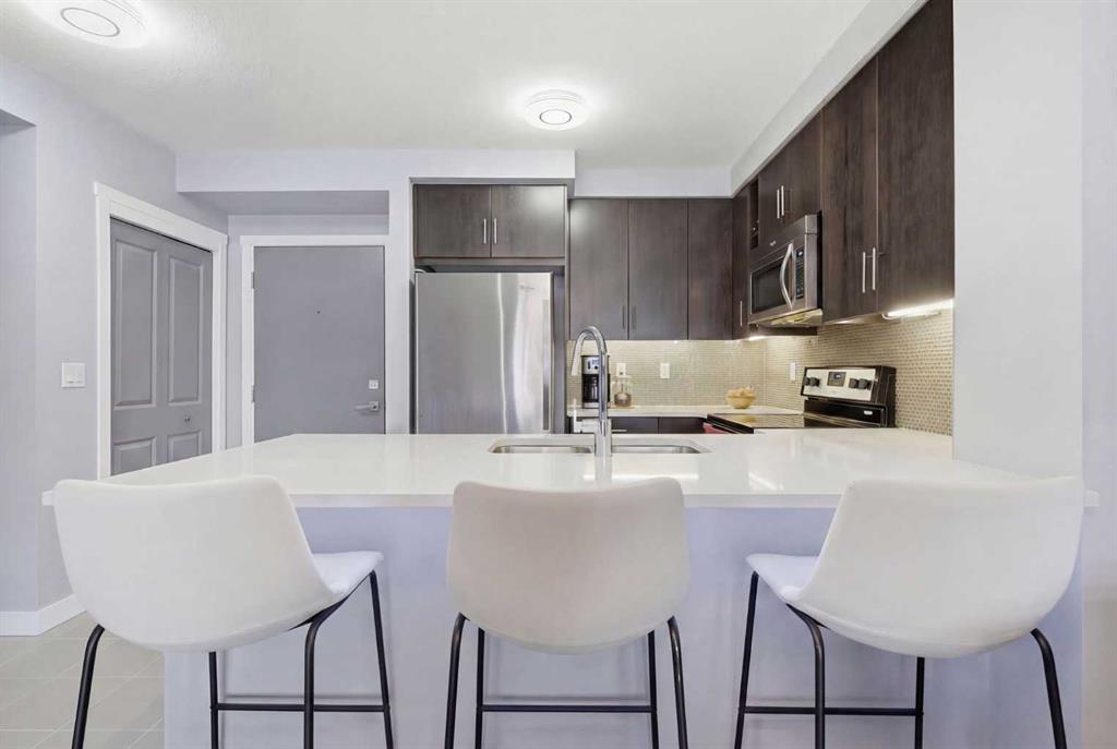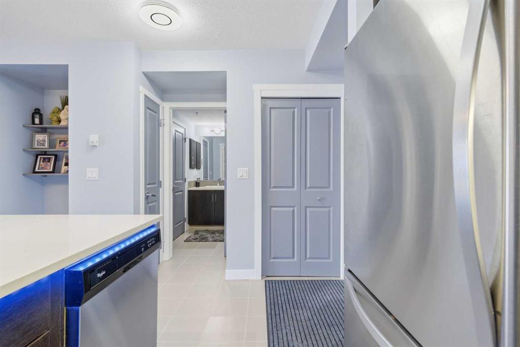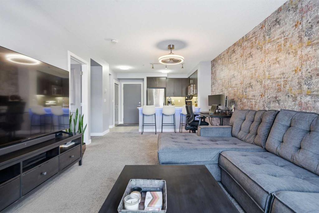 Welcome to lake living in Auburn Bay. This beautifully maintained 1 bedroom, 1 bathroom condo in the Canoe building by Avi Urban offers the perfect combination of comfort, style, and convenience. The bright north-facing unit features an open-concept layout with oversized windows that fill the space with natural light. The modern kitchen is finished with flat-panel cabinetry, stainless steel appliances, and a functional breakfast bar, ideal for everyday living or entertaining. The spacious bedroom includes a walk-in closet and direct access to the 4-piece bathroom, which is also accessible from the main living area for added convenience. Additional highlights include in-suite laundry, a covered patio, titled underground parking, and a separate storage locker. Residents of this pet-friendly complex enjoy access to a beautifully landscaped courtyard terrace with a firepit, perfect for relaxing outdoors. The location is exceptional — directly across from Auburn Station Shopping Centre and just steps from Mahogany Village Market, giving you quick access to groceries, restaurants, cafés, fitness studios, and everyday amenities. You’ll also enjoy year-round lake access, parks, pathways, and everything that makes Auburn Bay one of Calgary’s most desirable lake communities. Perfect for first-time buyers, downsizers, or investors looking for a low-maintenance lifestyle in a prime southeast Calgary location.
