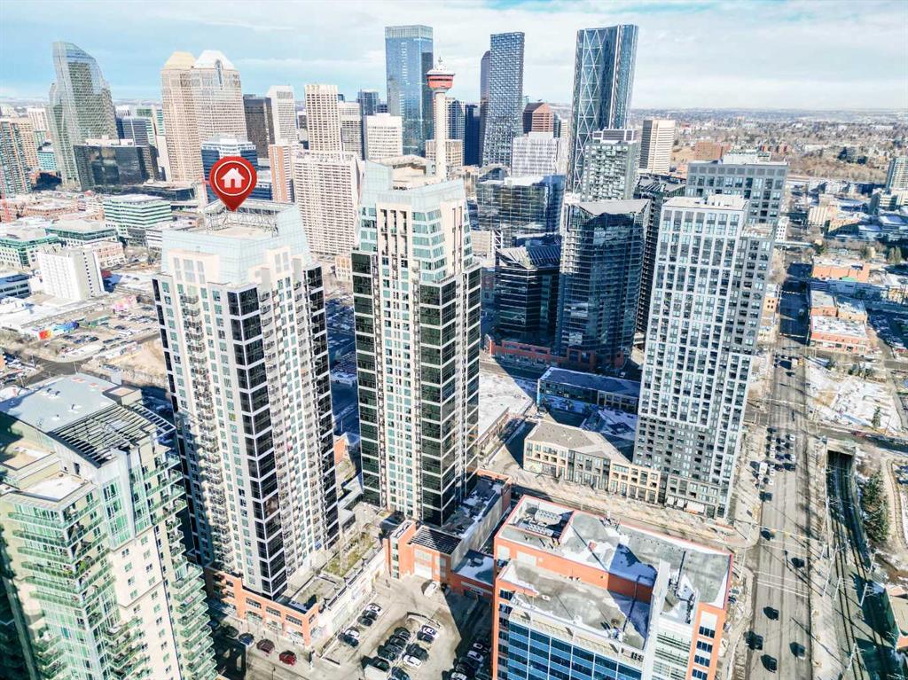 Welcome to Alura in Calgary's vibrant Beltline! This beautifully maintained 2-bedroom, 2-bathroom condo offers an exceptional downtown lifestyle featuring fantastic views of the Scotiabank Saddledome and Stampede Park. Recently refreshed with fresh paint and brand-new carpets, the home feels bright, clean, and move-in ready. The modern kitchen is perfect for entertaining, complete with quartz countertops, stainless steel appliances, and ample cabinetry. The spacious primary bedroom features a large walk-in closet and a private 4-piece ensuite, while the thoughtful floor plan provides excellent separation between the two bedrooms. Floor-to-ceiling windows fill the space with natural light and lead to a private balcony, ideal for relaxing or barbecuing while enjoying the downtown atmosphere. Residents of Alura enjoy a wide range of premium amenities including a fully equipped fitness centre, concierge service, 24-hour security, central air cooling, and a second floor rooftop terrace. The location is unbeatable—just steps from the Scotiabank Saddledome, the soon to open "Scotia Place", the Calgary C Train Victoria Park/Stampede Station, shopping, dining, and recreation at the MNP Community Sport Centre. This unit also includes one titled underground parking stall, an assigned storage locker, and in-suite laundry for added convenience. Don’t miss your opportunity to own in one of downtown Calgary’s most desirable buildings—book your private showing today!