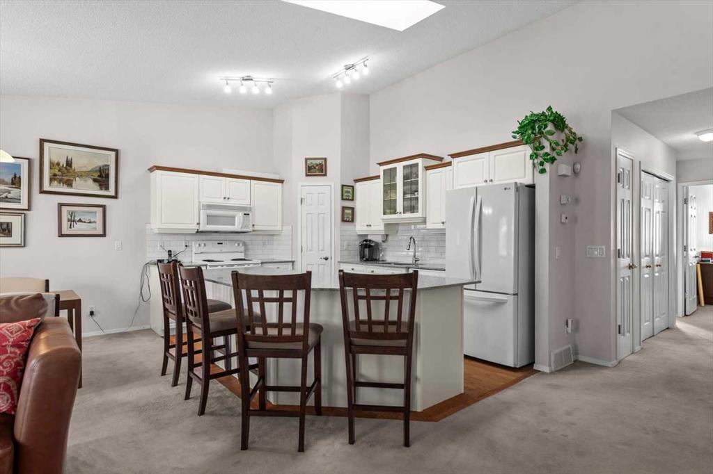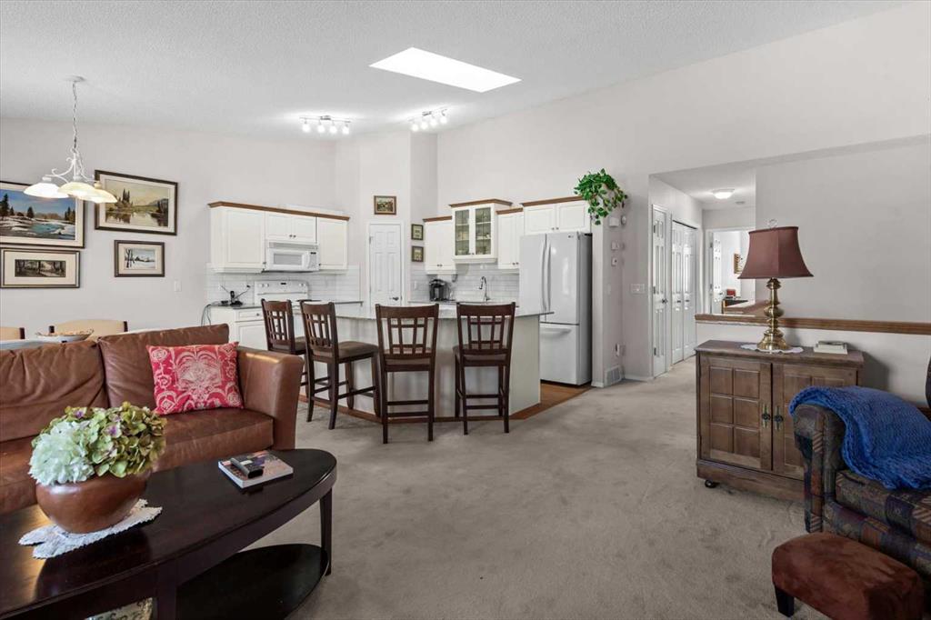 There's a particular kind of ease that comes with the right home at the right chapter of life. This reverse walkout villa in the Highlands of Valley Ridge has that quality, the kind that's hard to manufacture but immediately felt the moment you walk through the door. The upper level is where daily life unfolds beautifully. An open-concept kitchen, dining, and living space catches the light generously, anchored by a corner gas fireplace that earns its place as the room's quiet focal point. The kitchen is thoughtfully laid out — a large island for morning coffee or casual catch-ups, ample cabinetry, a corner pantry, and real counter space to actually cook in. Updated quartz countertops and subway tile backsplash bring a clean, bright energy, the kind of quiet refresh that makes everything feel considered. The dining area opens to a large, tree-shaded deck where morning coffee tastes a little better, summer dinners linger well past sunset, and conversations with longtime friends seem to find their way here naturally. Surrounded by mature trees, it carries the feeling of a mountain retreat without leaving the city. The primary bedroom is genuinely restful — generous enough for king-sized furniture, with a walk-in closet and a private 3-piece ensuite. A second bedroom and full bathroom sit just down the hall, ready for out-of-town guests who'll inevitably want to extend their stay, or the grandchildren who've already claimed it as their own. The entry level offers real versatility. A third bedroom, family room, full bathroom, and a surprising amount of storage make this level as functional as it is flexible. Step outside to a private patio where a corner flower garden stops you in your tracks — tended with care and devotion over twenty years, it's the kind of garden that doesn't happen by accident. Seasons of intention are written into every bloom. Birthdays celebrated here, neighbours stopping by unannounced, quiet mornings that belong to no one but you. The Highlands clubhouse offers a party room with a built-in kitchen, lounge, and pool tables — the kind of space where holiday gatherings spill over with laughter. The Valley Ridge Golf Club sits directly across the street. Walking and bike paths wind toward the Bow River and Bowness Park — easy riding distance to summer BBQs, riverside trails, and the kind of unhurried family afternoons that become the memories people talk about for years. This home has been loved and carefully maintained for twenty years. The garden, the details, the way everything has been kept, it all tells the same story. Ready for its next chapter and the next owner lucky enough to carry that care forward. Double attached garage, Stoney Trail minutes away, and the mountains just 45 minutes west. Some homes ask you to settle. This one invites you to truly arrive — and stay.