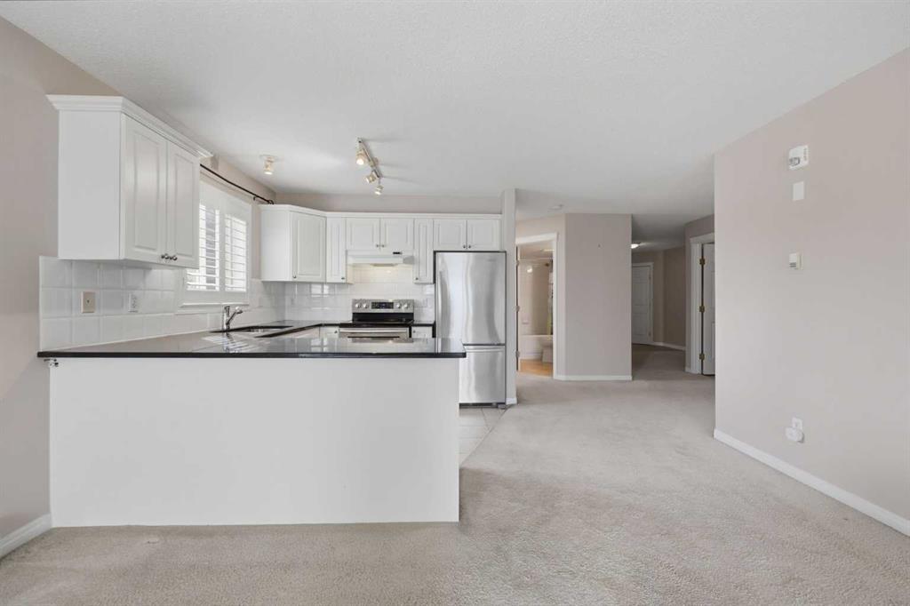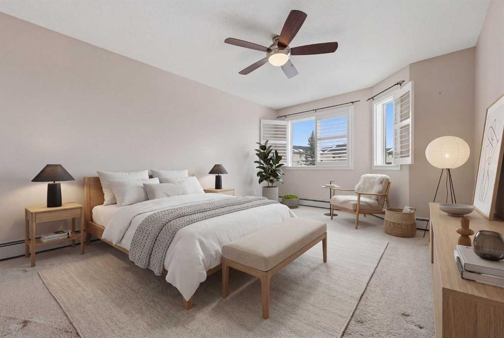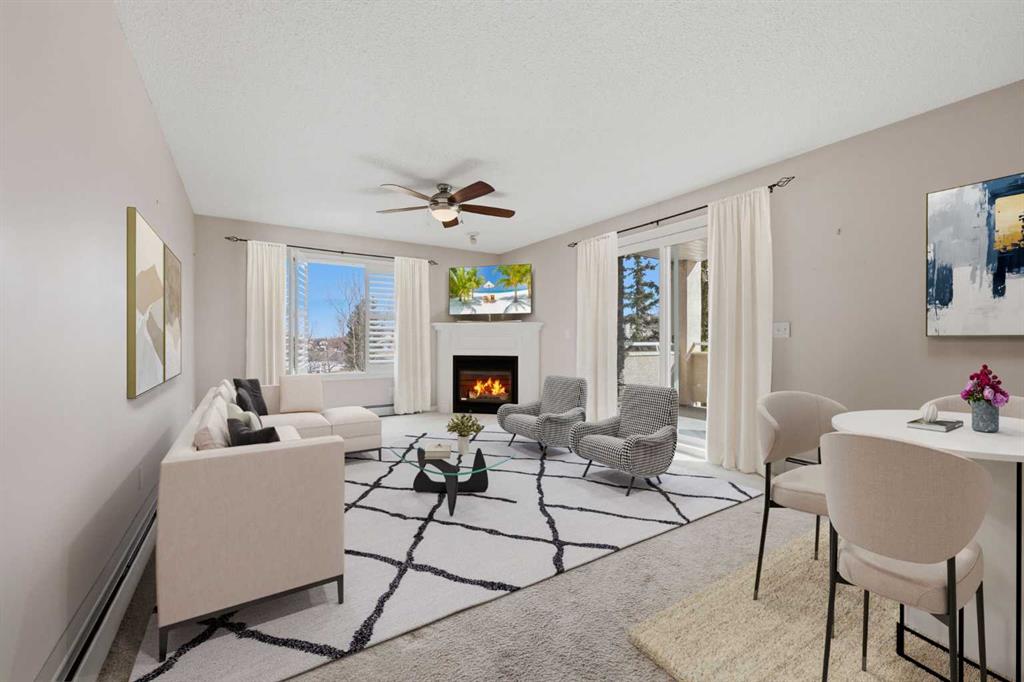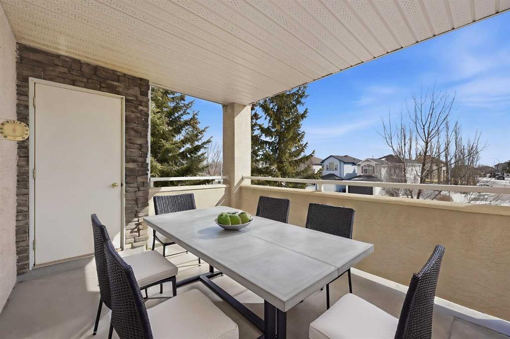 Welcome to one of the premier locations in the Fairways Pavilions of Country Hills, it is a south facing very sunny 2nd floor corner unit. Also one of the largest units in the complex at almost 1200 sq ft. with some recent upgrades: countertops, California shutters, upgraded ceiling fans and Toto toilets in both bathrooms. From the spacious front entry to the contemporary wide open floor plan, the bright white kitchen has plenty of prep space, window over the sink and stainless steel appliances. The kitchen opens to a large dining room, living room has a corner gas fireplace for those chilly evenings. Patio doors lead out to a sunny south facing balcony with tons of room to entertain, with a gas bar-b-que connection and storage room. The primary bedroom is large enough to accommodate a king size bed, walk in closet and a spacious 5 pc ensuite with a stand alone shower and soaker tub. The secondary bedroom easily fits a queen sized bed, there is a 4 pc bathroom and in-suite laundry room. Titled underground heated parking rounds out this amazing unit. Close to tons of shopping, restaurants, golf course nearby, parks and playgrounds in the neighborhood. A terrific property ready for immediate possession.