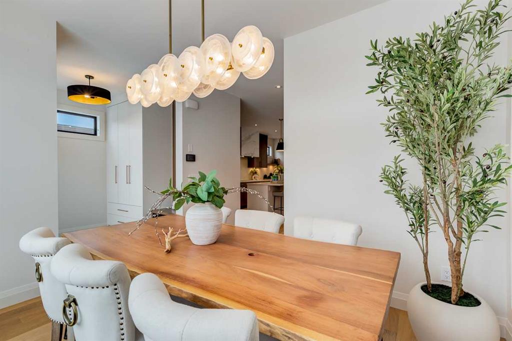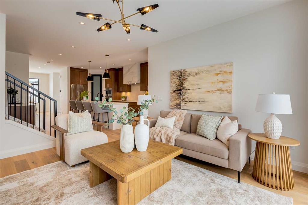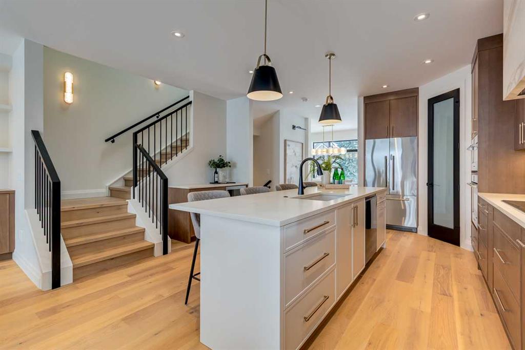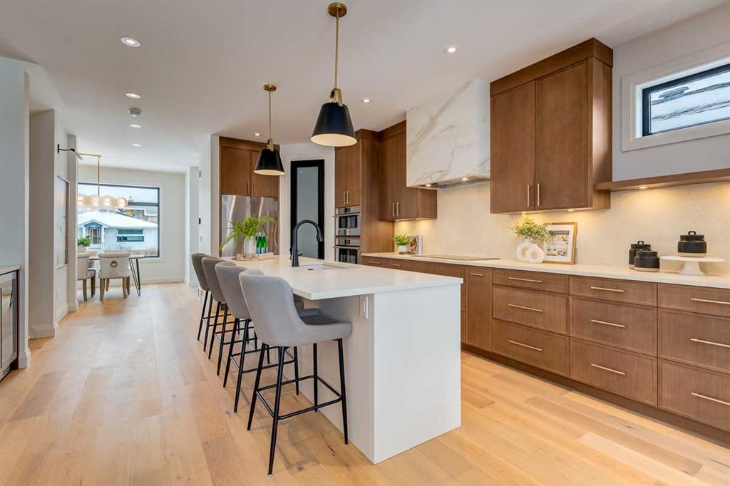 Welcome to this brand-new, exquisitely designed custom home with a West backyard built by Treehouse Developments — an award-winning builder celebrated for quality craftsmanship and thoughtful design. Located in the heart of Killarney, this property stands apart from the typical infill with its elevated finishes, concrete party wall, full New Home Warranty and a level of luxury rarely found, offering both peace of mind and timeless appeal. It’s packed with upgrades throughout and offers a truly refined living experience. Step inside to a welcoming foyer and dining room that flow seamlessly into an open-concept kitchen and living area, ideal for both everyday living and entertaining. The kitchen is equipped with high-end Fisher & Paykel appliances, stone countertops throughout, a large island, walk-in pantry, and stunning white oak rift-cut cabinetry. Extensive custom built-ins are thoughtfully integrated into the foyer, mudroom, and living room, adding function and elegance throughout the main floor. The living room features a porcelain-clad fireplace complete with Frame TV and sliding patio doors leading to a spacious maintenance-free composite deck. A functional mudroom off the rear entry leads directly to the garage, making daily routines effortless. Upstairs, a dramatic skylight floods the stairwell and bonus area with natural light, creating the perfect space for a desk or reading nook. The primary bedroom is impressively spacious, creating a true retreat with a spa ensuite that includes a standalone tub, steam shower with handheld, and heated floors. The main bath offers double sinks and linen storage, while upstairs laundry provides added convenience. Custom built-in closets are found throughout. The fully developed basement includes a large rec room with dry bar and bar fridge, a bedroom suite with walk-in closet and ensuite, and hydronic in-floor heating paired with an on-demand boiler for year-round comfort. A central AC/heat pump system adds modern efficiency. Outside, enjoy the fully landscaped private sunny yard and an oversized 21' x 21' garage, insulated and drywalled to fit a truck. The exterior blends stone, cedar accents, and Hardie siding for striking curb appeal. This home is move-in ready and exemplifies the craftsmanship, quality, and design that make Treehouse Developments a standout builder in Calgary. It’s rare for a Treehouse-built home to hit the market, making this a special opportunity to own a truly exceptional property.