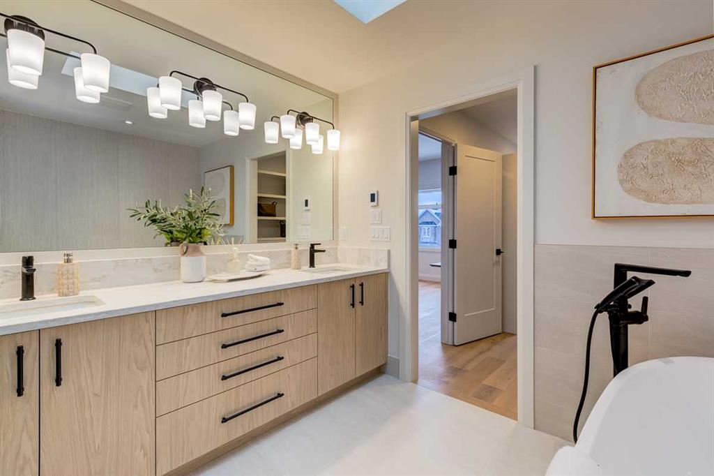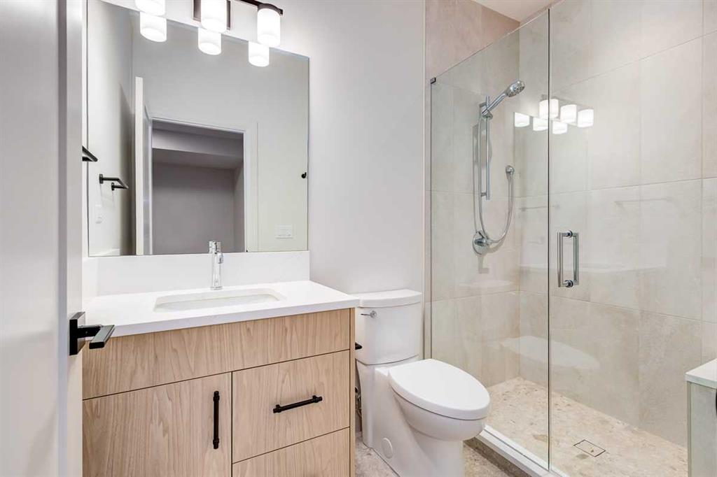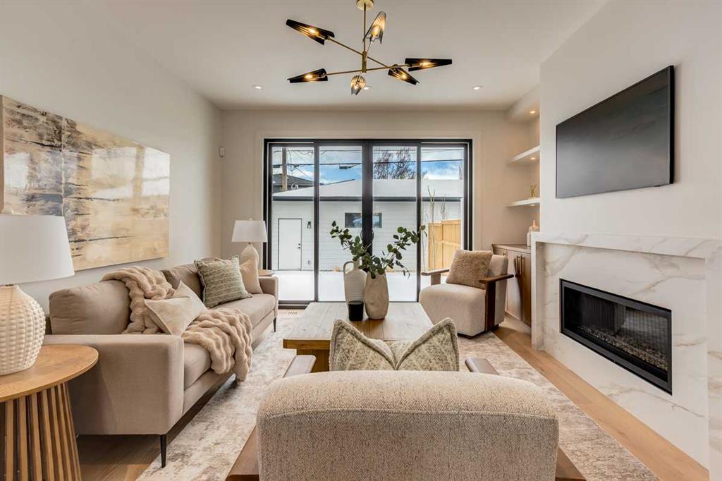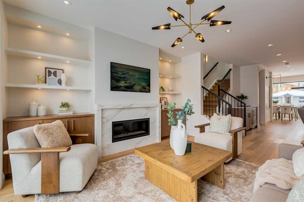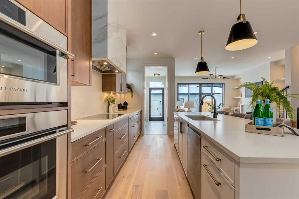 Welcome to this brand-new, exquisitely designed custom home with a West backyard built by Treehouse Developments — an award-winning builder celebrated for quality craftsmanship and thoughtful design. Located in the heart of Killarney, this property stands apart from the typical infill with its elevated finishes, concrete party wall, full New Home Warranty and a level of luxury rarely found, offering both peace of mind and timeless appeal. It’s packed with upgrades throughout and offers a truly refined living experience. Step inside to a welcoming foyer and dining room that flow seamlessly into an open-concept kitchen and living area, ideal for both everyday living and entertaining. The kitchen is equipped with high-end Fisher & Paykel appliances, stone countertops throughout, a large island, walk-in pantry, and stunning white oak rift-cut cabinetry. Extensive custom built-ins are thoughtfully integrated into the foyer, mudroom, and living room, adding function and elegance throughout the main floor. The living room features a porcelain-clad fireplace complete with Frame TV and sliding patio doors leading to a spacious maintenance-free composite deck. A functional mudroom off the rear entry leads directly to the garage, making daily routines effortless. Upstairs, a dramatic skylight floods the stairwell and bonus area with natural light, creating the perfect space for a desk or reading nook. The primary bedroom is impressively spacious, creating a true retreat with a spa ensuite that includes a standalone tub, steam shower with handheld, and heated floors. The main bath offers double sinks and linen storage, while upstairs laundry provides added convenience. Custom built-in closets are found throughout. The fully developed basement includes a large rec room with dry bar and bar fridge, a bedroom suite with walk-in closet and ensuite, and hydronic in-floor heating paired with an on-demand boiler for year-round comfort. A central AC/heat pump system adds modern efficiency. Outside, enjoy the fully landscaped private sunny yard and an oversized 21' x 21' garage, insulated and drywalled to fit a truck. The exterior blends stone, cedar accents, and Hardie siding for striking curb appeal. This home is move-in ready and exemplifies the craftsmanship, quality, and design that make Treehouse Developments a standout builder in Calgary. It’s rare for a Treehouse-built home to hit the market, making this a special opportunity to own a truly exceptional property.