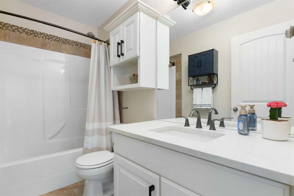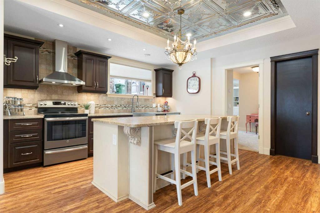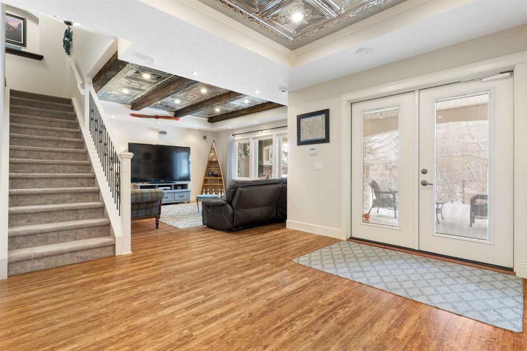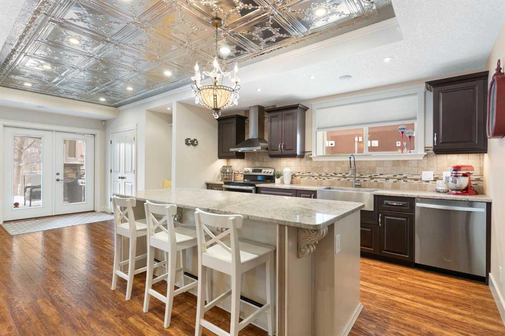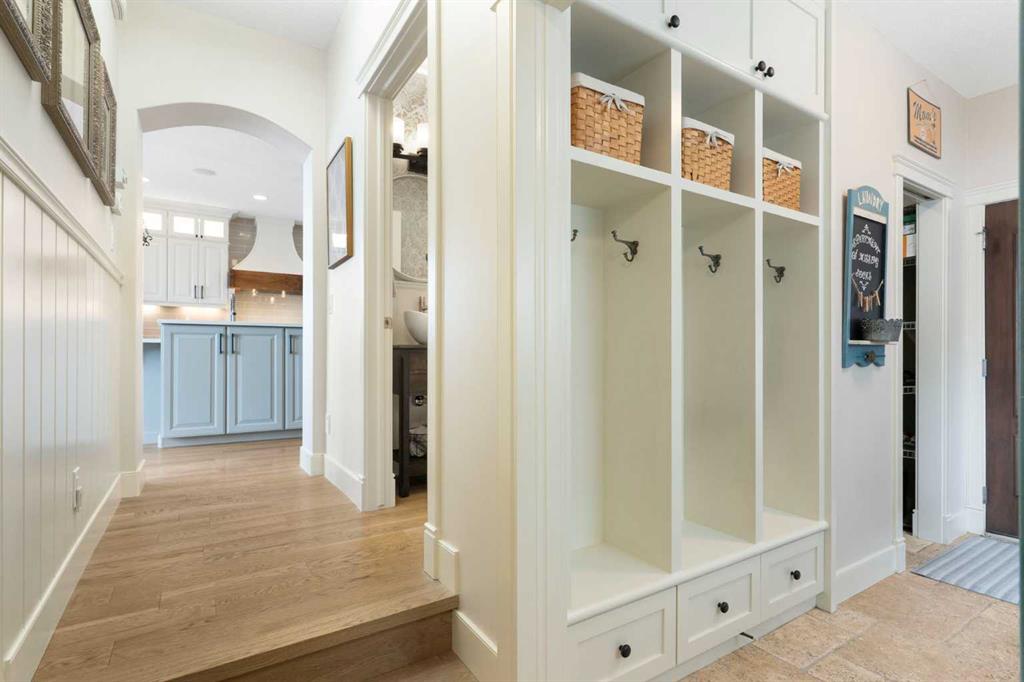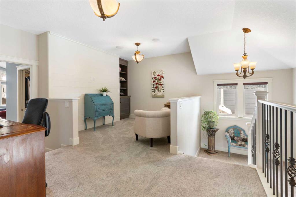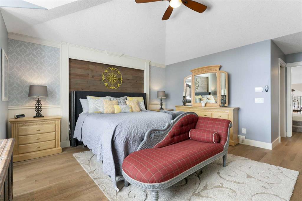 Hello, Gorgeous! Welcome to this beautifully renovated executive walkout home in the highly sought-after community of Coopers Crossing in Airdrie. Offering over 2,500sq ft. above grade plus a fully developed walkout basement, this home blends impressive architectural spaces with thoughtful custom finishes throughout. Step inside to a stunning entry featuring stacked stone accents, rustic beams, and an inviting sense of craftsmanship that continues throughout the home. The main floor includes a private office with glass French doors, perfect for working from home or flexible use as a dining space or additional bedroom. At the heart of the home is the dramatic great room with soaring 14-foot vaulted ceilings, arched windows, and a beautiful fireplace feature wall that fills the space with natural light from the west-facing backyard. The chef-inspired kitchen is designed for both everyday living and entertaining, featuring a large island, quartz countertops, professionally painted two-tone cabinetry, custom organizers, and a striking solid walnut hood fan. Premium appliances include KitchenAid, Bosch, Thermador, and MasterChef, along with a gas range, wall oven, beverage cooler, and walk-in pantry. Upstairs, a welcoming loft creates an additional living space for relaxing or family time. Two spacious bedrooms share a well-appointed bathroom, while the impressive primary retreat offers vaulted ceilings, custom wall detailing, and a luxurious ensuite with heated floors, double vanity, soaker tub & separate water closet. The fully developed walkout basement adds incredible flexibility with a gorgeous second full kitchen, large recreation area, full bathroom, wine/cool room, and a spacious additional bedroom or versatile flex room with built-in Murphy bed. With its high-end finishes and thoughtful layout, this level is ideal for entertaining or multi-generational living. Outdoor living is just as impressive with a west-facing backyard, a 300sq ft. Duradek balcony with glass railing, natural gas line for BBQ, and a walkout patio below with additional gas connections and hot tub rough-in, plus two storage sheds. The beautifully landscaped yard features custom concrete work, mature trees and shrubs, and a 7-zone irrigation system. Completing the home is a triple attached garage plus shop area, with epoxy floors, forced-air heating, workshop wiring, EV/welder outlets, and extensive built-in storage. Located in one of Airdrie’s most desirable communities, close to parks, pathways, schools, and amenities, this exceptional home offers the perfect combination of space, luxury, and functionality.