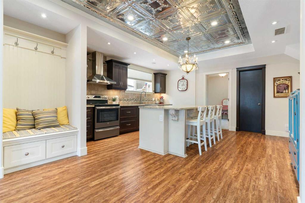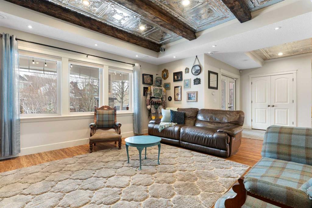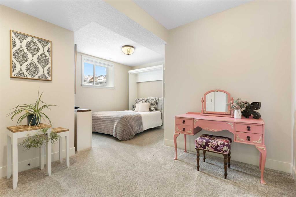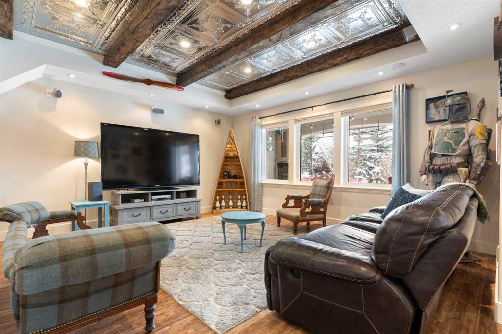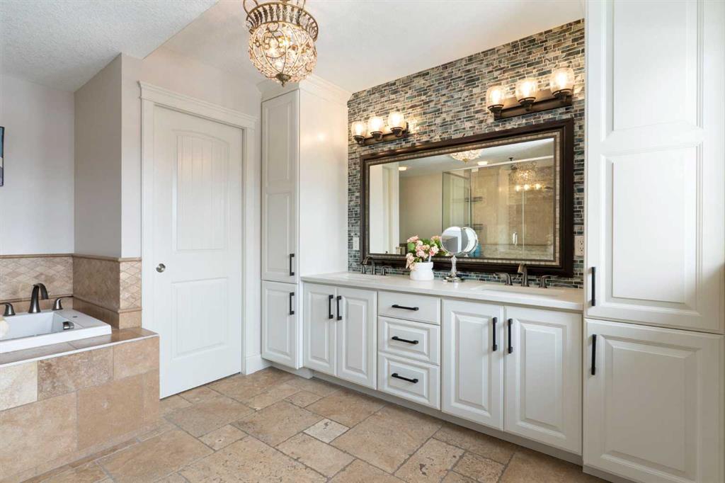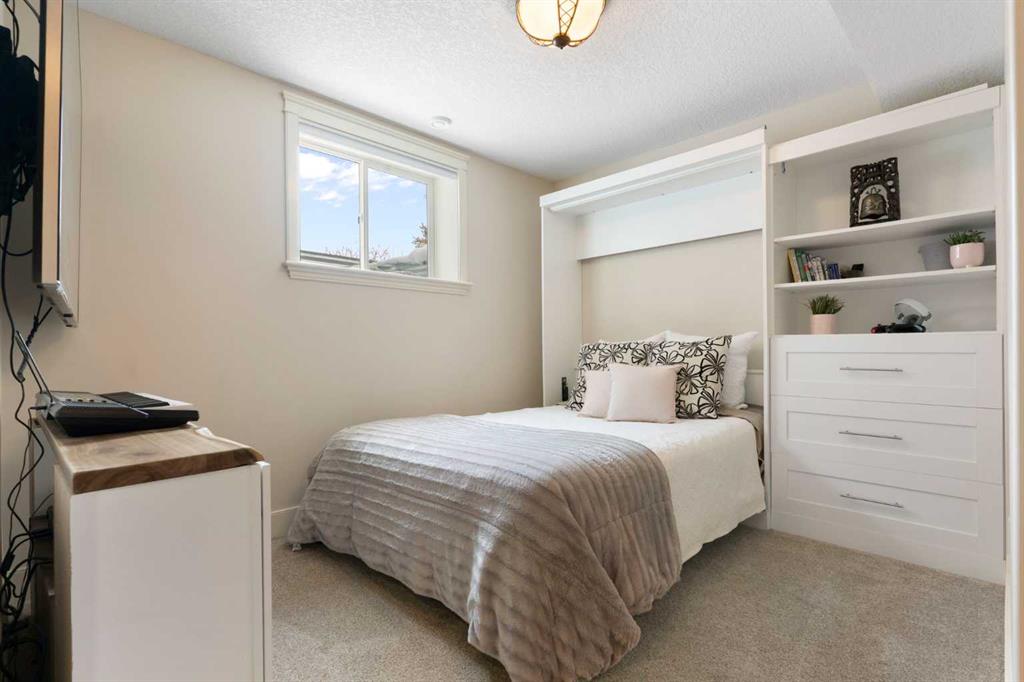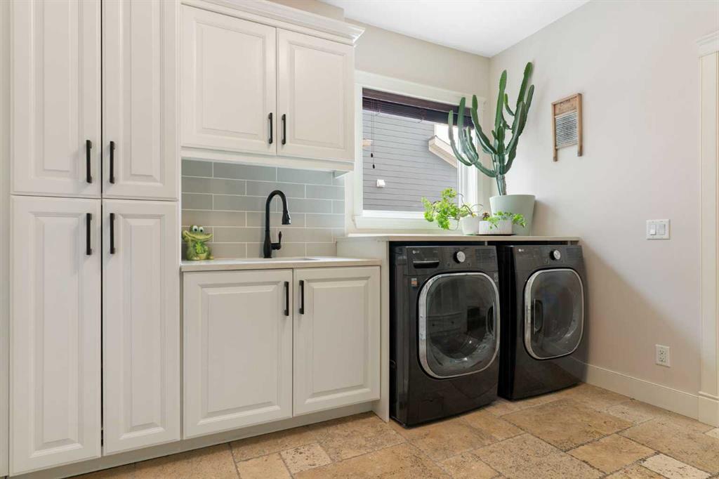 Hello, Gorgeous! Welcome to this beautifully renovated executive walkout home in the highly sought-after community of Coopers Crossing in Airdrie. Offering over 2,500sq ft. above grade plus a fully developed walkout basement, this home blends impressive architectural spaces with thoughtful custom finishes throughout. Step inside to a stunning entry featuring stacked stone accents, rustic beams, and an inviting sense of craftsmanship that continues throughout the home. The main floor includes a private office with glass French doors, perfect for working from home or flexible use as a dining space or additional bedroom. At the heart of the home is the dramatic great room with soaring 14-foot vaulted ceilings, arched windows, and a beautiful fireplace feature wall that fills the space with natural light from the west-facing backyard. The chef-inspired kitchen is designed for both everyday living and entertaining, featuring a large island, quartz countertops, professionally painted two-tone cabinetry, custom organizers, and a striking solid walnut hood fan. Premium appliances include KitchenAid, Bosch, Thermador, and MasterChef, along with a gas range, wall oven, beverage cooler, and walk-in pantry. Upstairs, a welcoming loft creates an additional living space for relaxing or family time. Two spacious bedrooms share a well-appointed bathroom, while the impressive primary retreat offers vaulted ceilings, custom wall detailing, and a luxurious ensuite with heated floors, double vanity, soaker tub & separate water closet. The fully developed walkout basement adds incredible flexibility with a gorgeous second full kitchen, large recreation area, full bathroom, wine/cool room, and a spacious additional bedroom or versatile flex room with built-in Murphy bed. With its high-end finishes and thoughtful layout, this level is ideal for entertaining or multi-generational living. Outdoor living is just as impressive with a west-facing backyard, a 300sq ft. Duradek balcony with glass railing, natural gas line for BBQ, and a walkout patio below with additional gas connections and hot tub rough-in, plus two storage sheds. The beautifully landscaped yard features custom concrete work, mature trees and shrubs, and a 7-zone irrigation system. Completing the home is a triple attached garage plus shop area, with epoxy floors, forced-air heating, workshop wiring, EV/welder outlets, and extensive built-in storage. Located in one of Airdrie’s most desirable communities, close to parks, pathways, schools, and amenities, this exceptional home offers the perfect combination of space, luxury, and functionality.