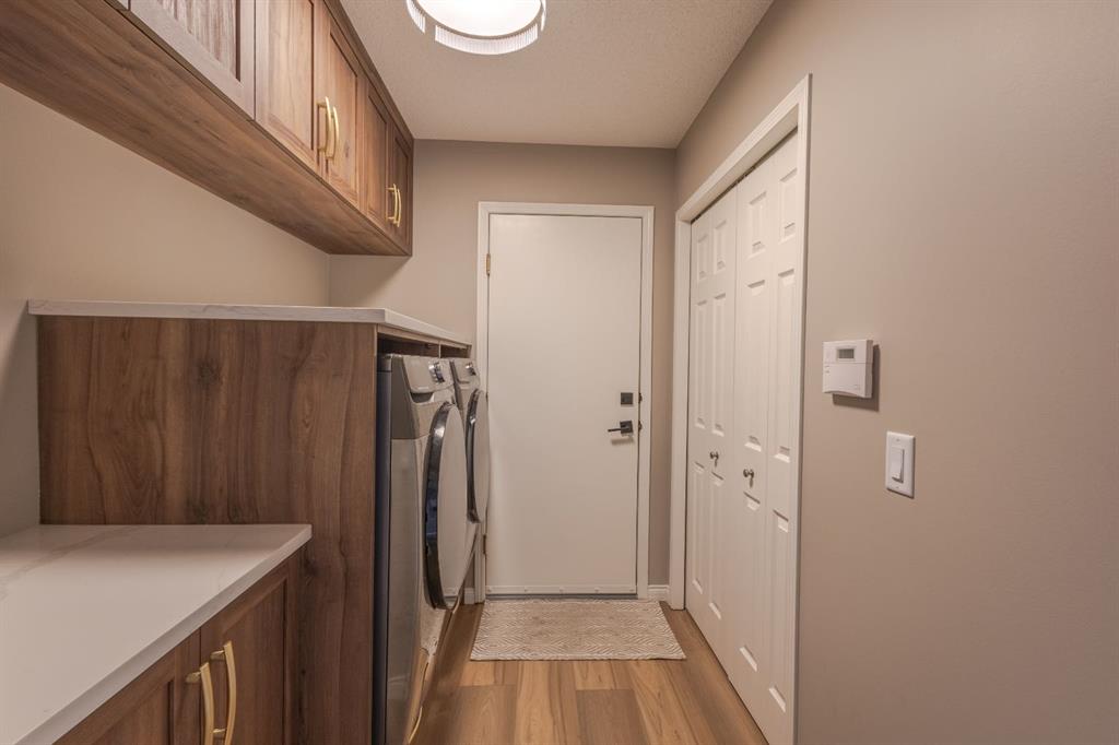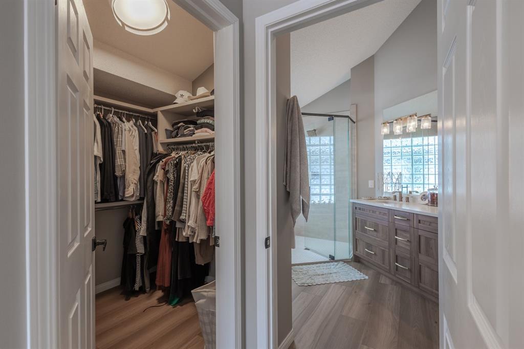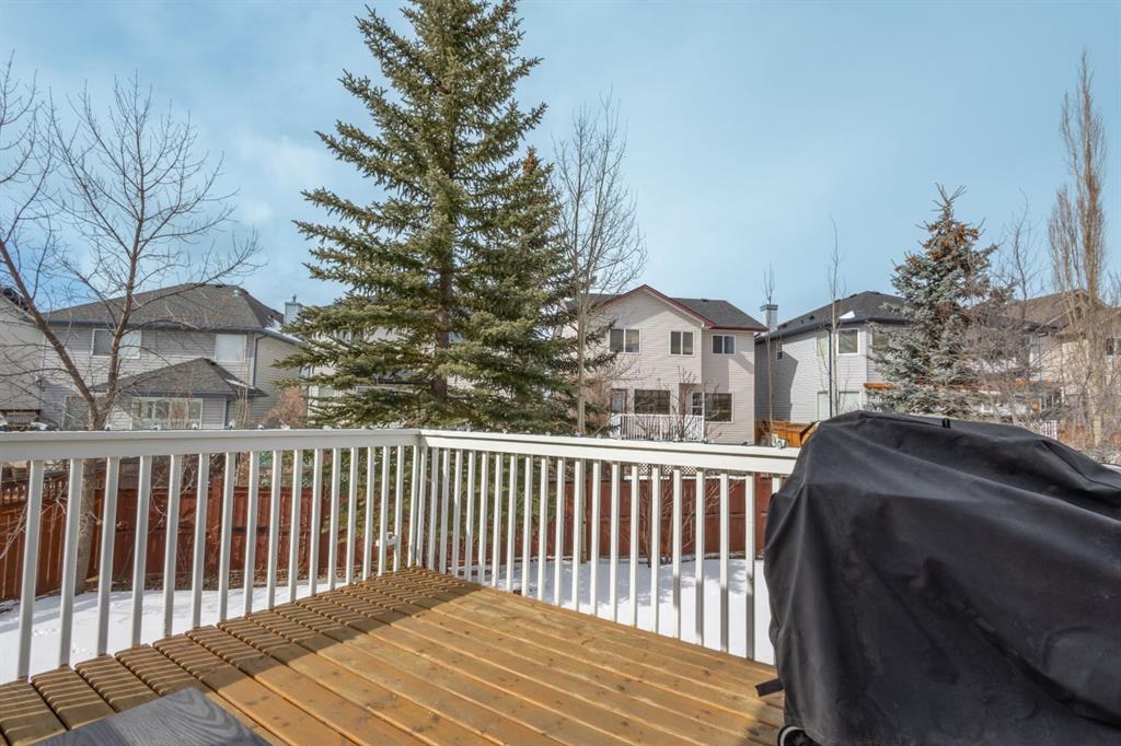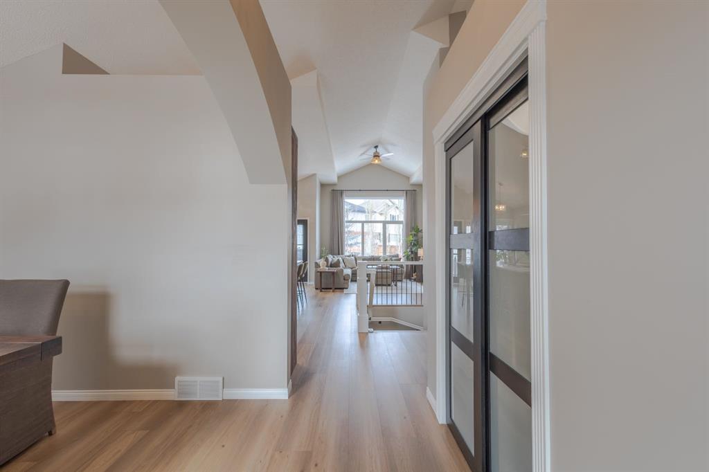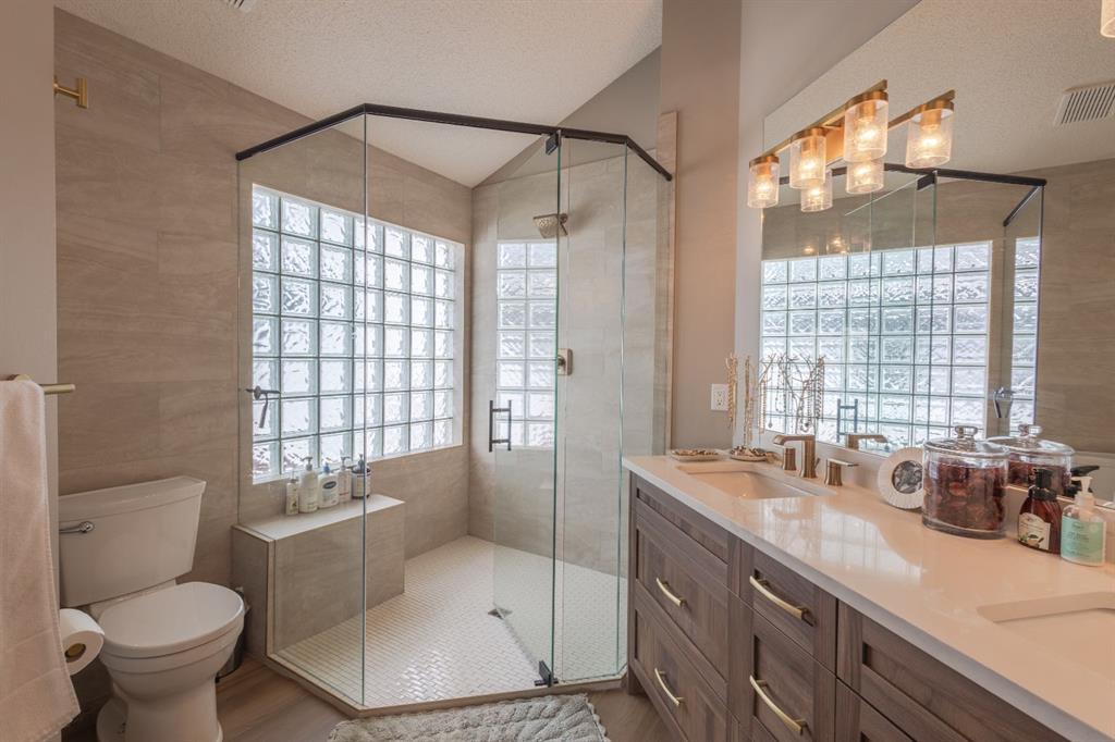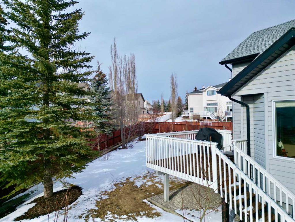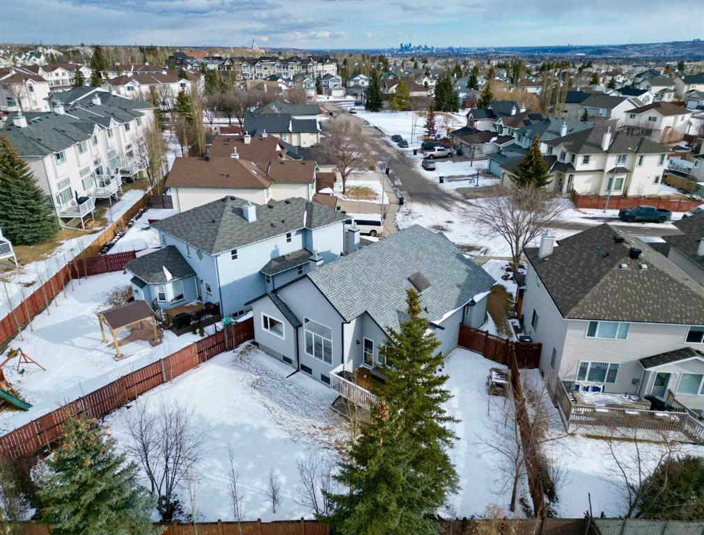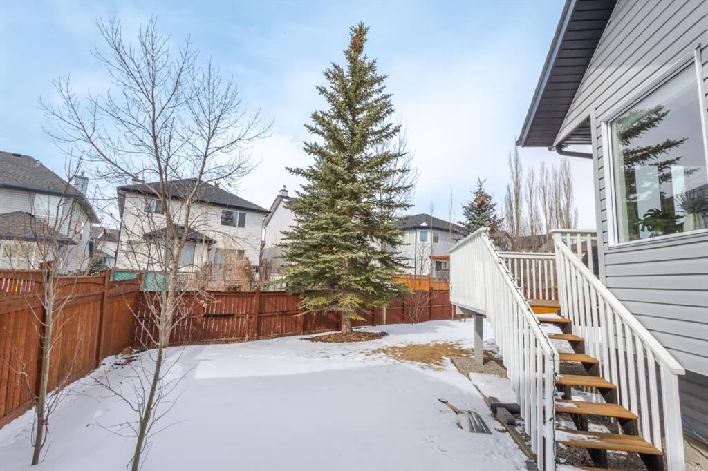 Located in the NW community of Rocky Ridge, this extensively renovated bungalow blends timeless design with modern comfort, set on an impressive pie-shaped lot beautifully enhanced by professional landscaping in 2025. From the moment you arrive, the inviting curb appeal sets the tone for what awaits inside. Stepping inside you are greeted with a grand front dining room space perfect for enjoying meals with family and friends. 16 foot vaulted ceilings elevate the main floor, where a complete renovation has transformed the living spaces into a bright, elegant environment ideal for both everyday living and entertaining. At the heart of the home, the chef-inspired kitchen features brand new stainless steel appliances, a generous centre island, a skylight that floods the room with natural light, and seamless flow to the eating nook area and expansive back deck—perfect for summer evenings and gatherings with family and friends. The living room is warm and inviting, highlighted by a beautiful gas fireplace with tile surround and custom mantle and large windows overlooking the landscaped backyard, including brand new windows in both the living room and primary bedroom. The main floor includes two spacious bedrooms, including a serene primary retreat complete with a walk-in closet and a bright four-piece ensuite boasting a gorgeous standalone shower and dual vanity. A 4pc bathroom and main floor laundry complete this level. Downstairs, the fully developed lower level offers exceptional additional living space with a large family room, second gas fireplace, two additional bedrooms, a full bathroom, and a private sauna for the ultimate at-home relaxation experience. Additional upgrades include new window coverings, a water softener, and a whole-home dechlorinator system, ensuring comfort and quality throughout the home. Completing the property is an oversized double attached garage with added storage and convenient access to the main-floor laundry and mudroom. Beautifully renovated, thoughtfully upgraded, and ideally located, this Rocky Ridge bungalow offers a rare opportunity to enjoy refined single-level living in one of Calgary’s most sought-after NW communities.