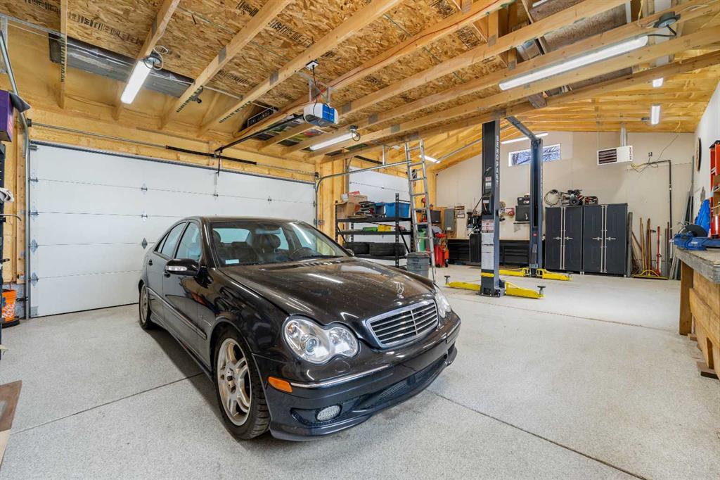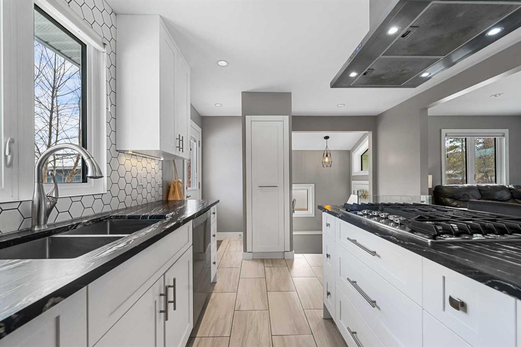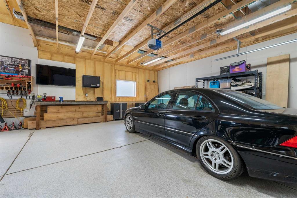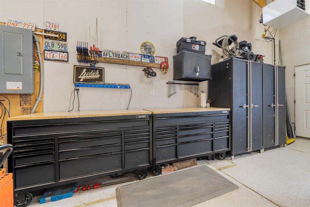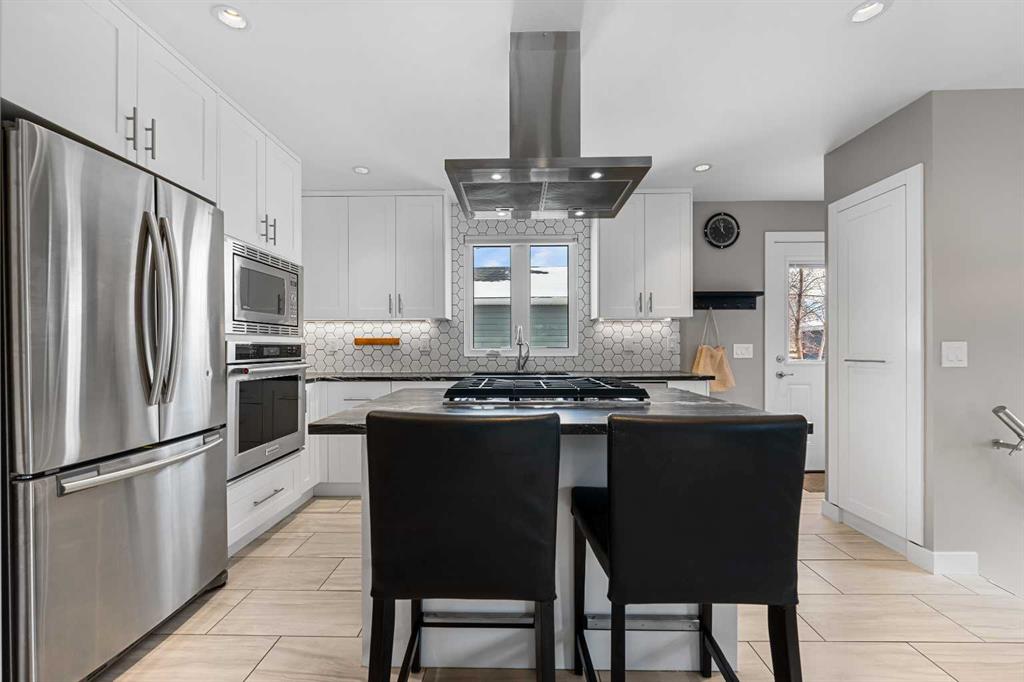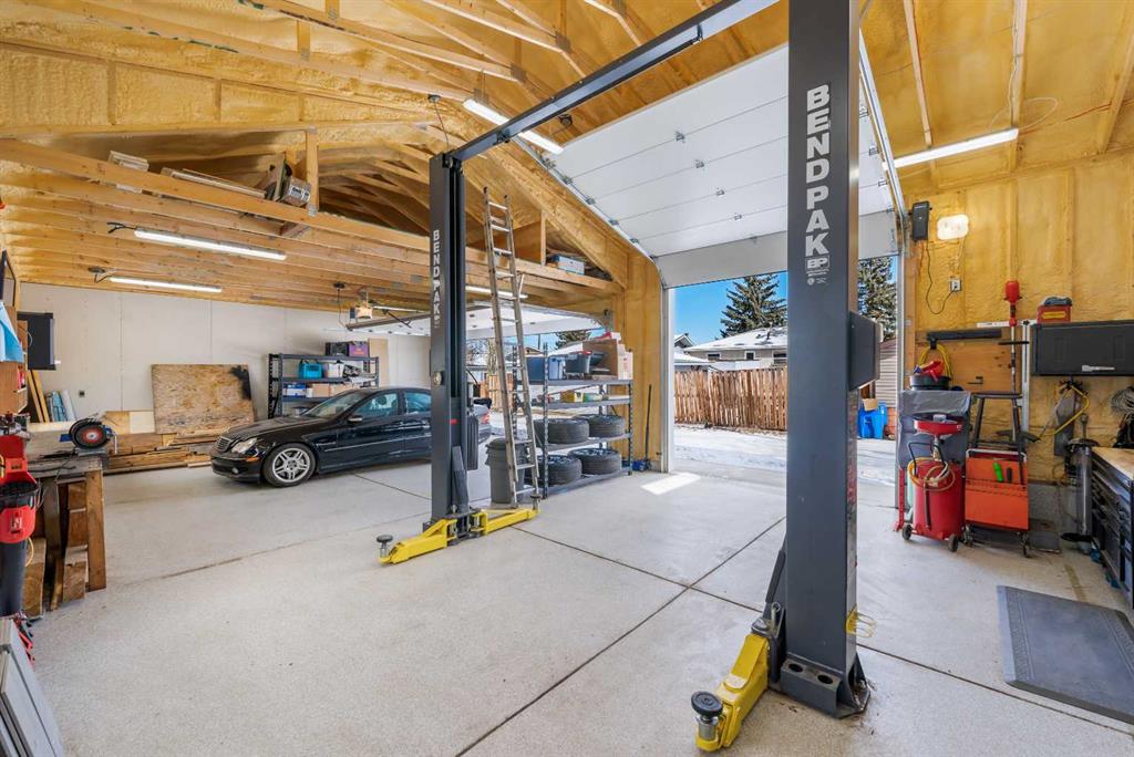 This beautifully renovated home has been completely updated inside and out and wrapped in durable Hardie Board siding with Smartboard trim, featuring all new triple-pane windows throughout for maximum efficiency and comfort. As you enter the home you are greeted with a fabulous kitchen designed for both style and function with natural quartz countertops, a gas cooktop in the center island, built-in oven and microwave, custom cabinetry with under-mount lighting, a beautiful tile backsplash, and ceramic tile flooring perfect for all your culinary desires. Adjacent to the kitchen is the warm and bright living room which offers engineered hardwood flooring, pot lighting, a cozy gas fireplace with black slate tile surround and Hunter Douglas honeycomb blinds which are featured throughout the home. The dining area features patio doors leading out to the front patio, creating a bright and welcoming space for entertaining. The main bathroom includes tile flooring, quartz countertops, custom cabinetry, and a tub with floor-to-ceiling tile surround making for a truly refreshing space. Additionally on the main level you will find two large bedrooms, including the primary bedroom, both featuring custom closet built-ins for excellent storage. Downstairs you will feast your eyes on a fully finished basement that offers additional living space with carpet throughout, a large family room, two more spacious bedrooms, and a laundry room with sink. For the full spa-like experience the downstairs bathroom is a true wet bathroom, fully finished with floor-to-ceiling tile throughout. The real standout is the 24’ x 40’ oversized 3.5-car garage built for car lovers and serious projects. This space features extended ceiling heights (10’ and 15’), a car lift, mezzanine storage, spray foam insulation, epoxy floor coating, natural gas furnace, and 200-amp electrical service. To add to the stunning list of renovations this home hosts a new roof and shingles on both the house and the garage as well as all new electrical in the house including panel, wiring, plugs and lighting. In addition you will find a new 200-amp electrical service, all new plumbing, new HVAC lines to each bedroom, air conditioning, a hot water heater replaced during renovation (2018) and new drywall and paint. Outside you will find a new fence and gates on the east side, adding to your enjoyment of your home through all the many seasons, as well as new eavestroughs, soffits and downspouts ensuring the exterior of your home is well taken care of. To finish off this list of amazing modernizations this home offers spray foam insulation (garage and laundry room) with Rockwool insulation throughout the rest of the house, all new doors and hardware (house, closets, and garage) and an installed Lorex security system. Look no further for a rare opportunity to own a fully renovated home with a serious garage setup — perfect for anyone who wants a comfortable home and the ultimate space for cars, projects, and hobbies.