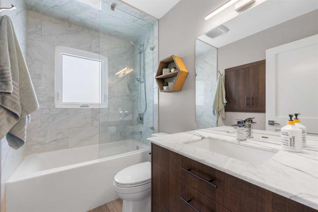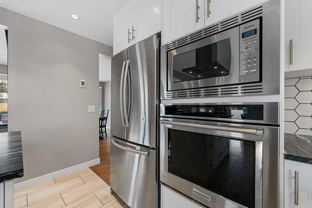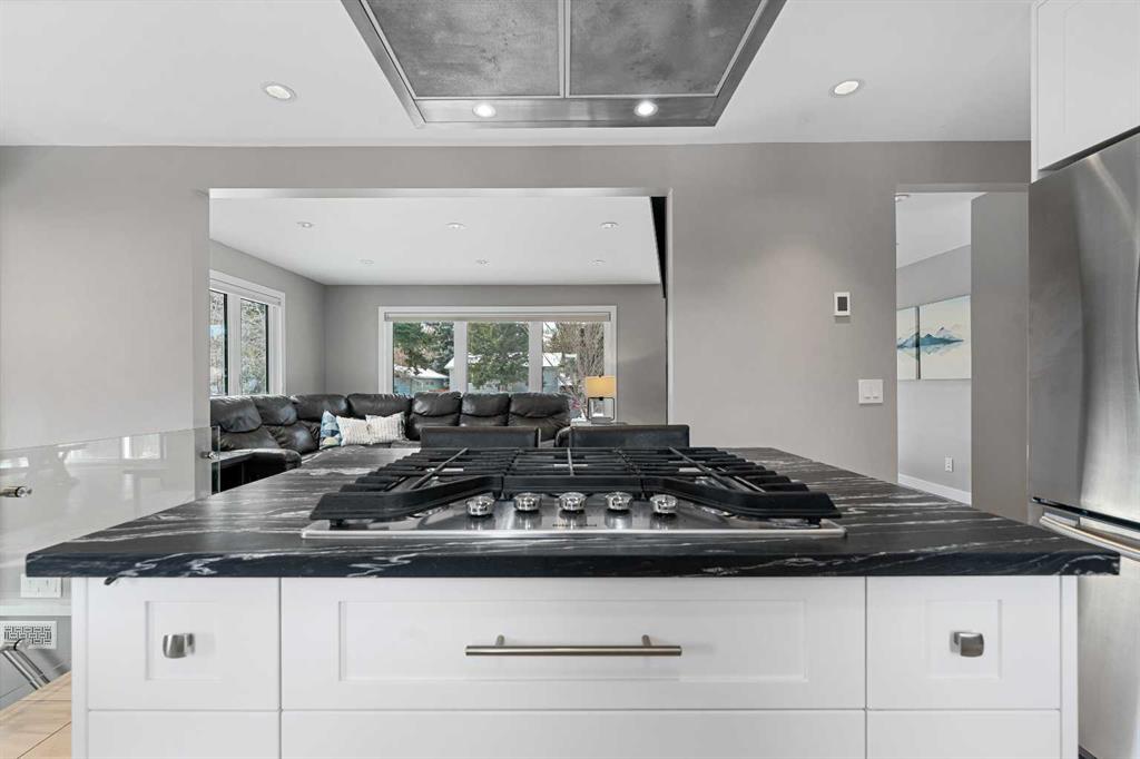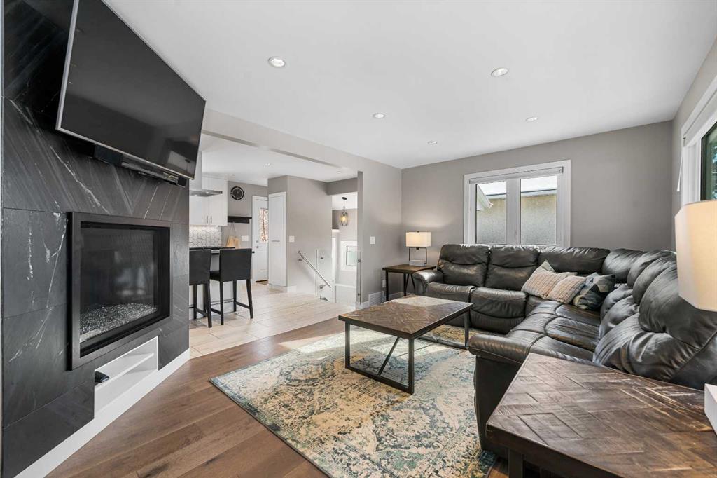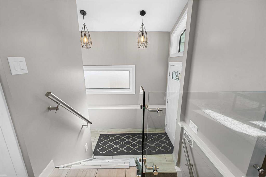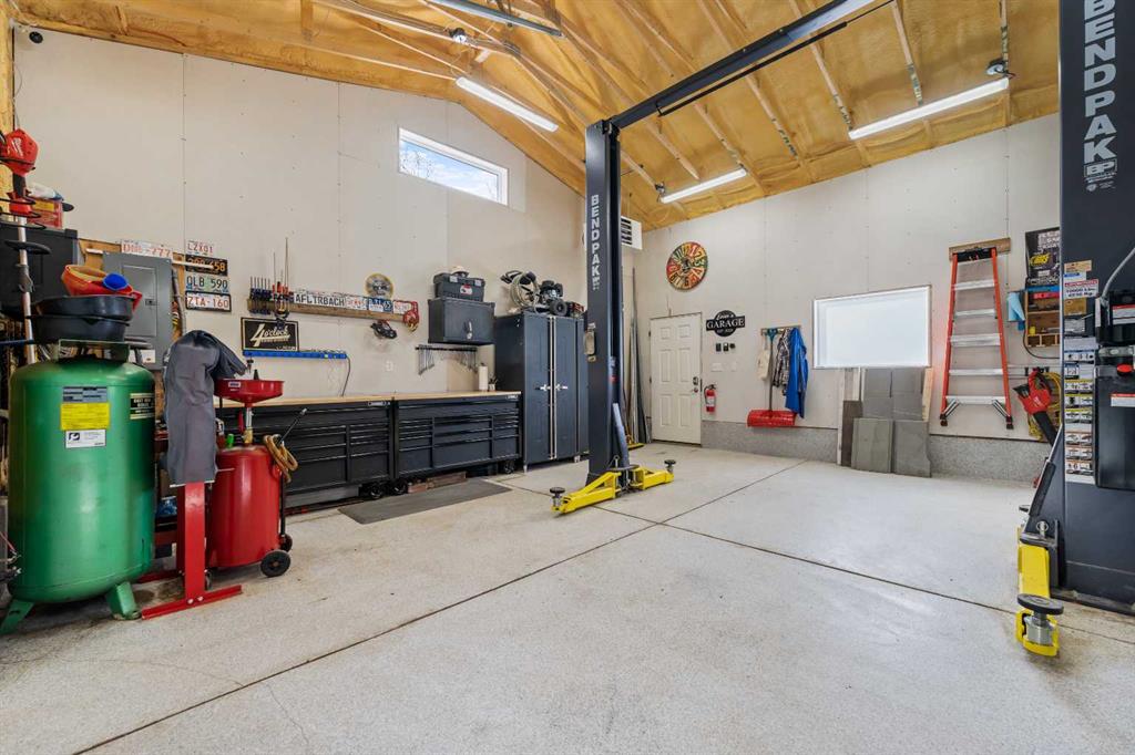 This beautifully renovated home has been completely updated inside and out and wrapped in durable Hardie Board siding with Smartboard trim, featuring all new triple-pane windows throughout for maximum efficiency and comfort. As you enter the home you are greeted with a fabulous kitchen designed for both style and function with natural quartz countertops, a gas cooktop in the center island, built-in oven and microwave, custom cabinetry with under-mount lighting, a beautiful tile backsplash, and ceramic tile flooring perfect for all your culinary desires. Adjacent to the kitchen is the warm and bright living room which offers engineered hardwood flooring, pot lighting, a cozy gas fireplace with black slate tile surround and Hunter Douglas honeycomb blinds which are featured throughout the home. The dining area features patio doors leading out to the front patio, creating a bright and welcoming space for entertaining. The main bathroom includes tile flooring, quartz countertops, custom cabinetry, and a tub with floor-to-ceiling tile surround making for a truly refreshing space. Additionally on the main level you will find two large bedrooms, including the primary bedroom, both featuring custom closet built-ins for excellent storage. Downstairs you will feast your eyes on a fully finished basement that offers additional living space with carpet throughout, a large family room, two more spacious bedrooms, and a laundry room with sink. For the full spa-like experience the downstairs bathroom is a true wet bathroom, fully finished with floor-to-ceiling tile throughout. The real standout is the 24’ x 40’ oversized 3.5-car garage built for car lovers and serious projects. This space features extended ceiling heights (10’ and 15’), a car lift, mezzanine storage, spray foam insulation, epoxy floor coating, natural gas furnace, and 200-amp electrical service. To add to the stunning list of renovations this home hosts a new roof and shingles on both the house and the garage as well as all new electrical in the house including panel, wiring, plugs and lighting. In addition you will find a new 200-amp electrical service, all new plumbing, new HVAC lines to each bedroom, air conditioning, a hot water heater replaced during renovation (2018) and new drywall and paint. Outside you will find a new fence and gates on the east side, adding to your enjoyment of your home through all the many seasons, as well as new eavestroughs, soffits and downspouts ensuring the exterior of your home is well taken care of. To finish off this list of amazing modernizations this home offers spray foam insulation (garage and laundry room) with Rockwool insulation throughout the rest of the house, all new doors and hardware (house, closets, and garage) and an installed Lorex security system. Look no further for a rare opportunity to own a fully renovated home with a serious garage setup — perfect for anyone who wants a comfortable home and the ultimate space for cars, projects, and hobbies.