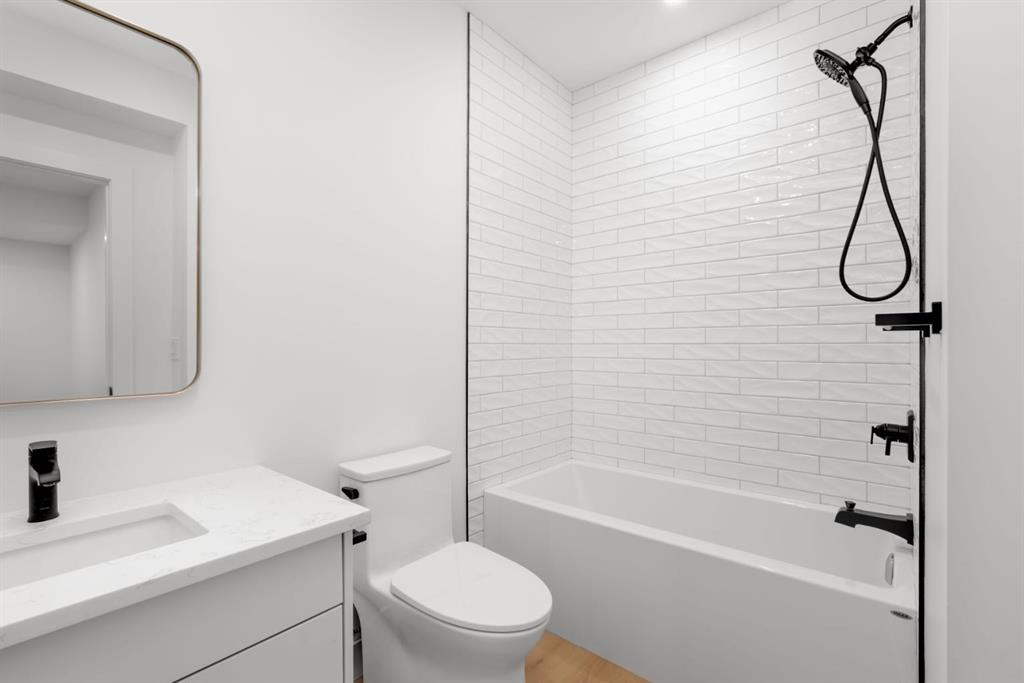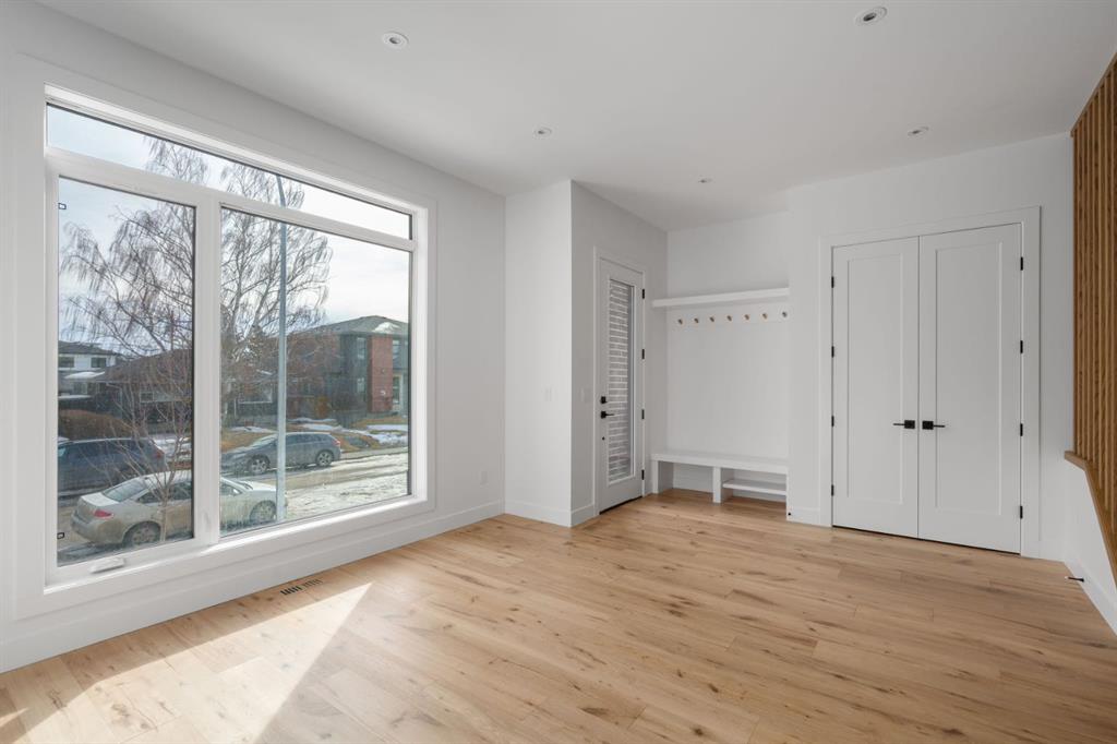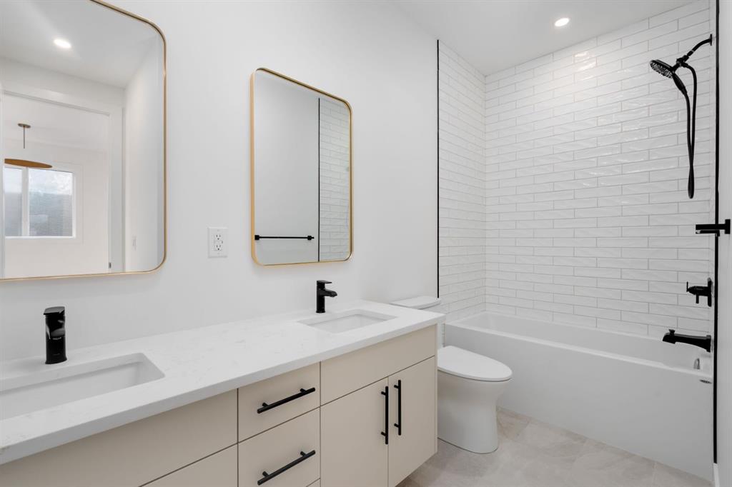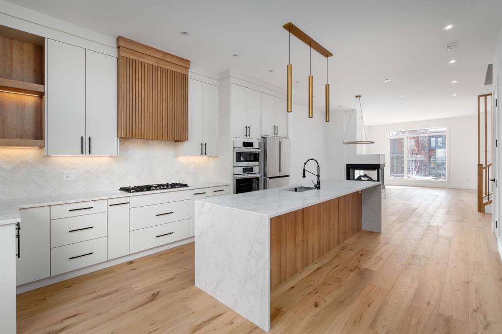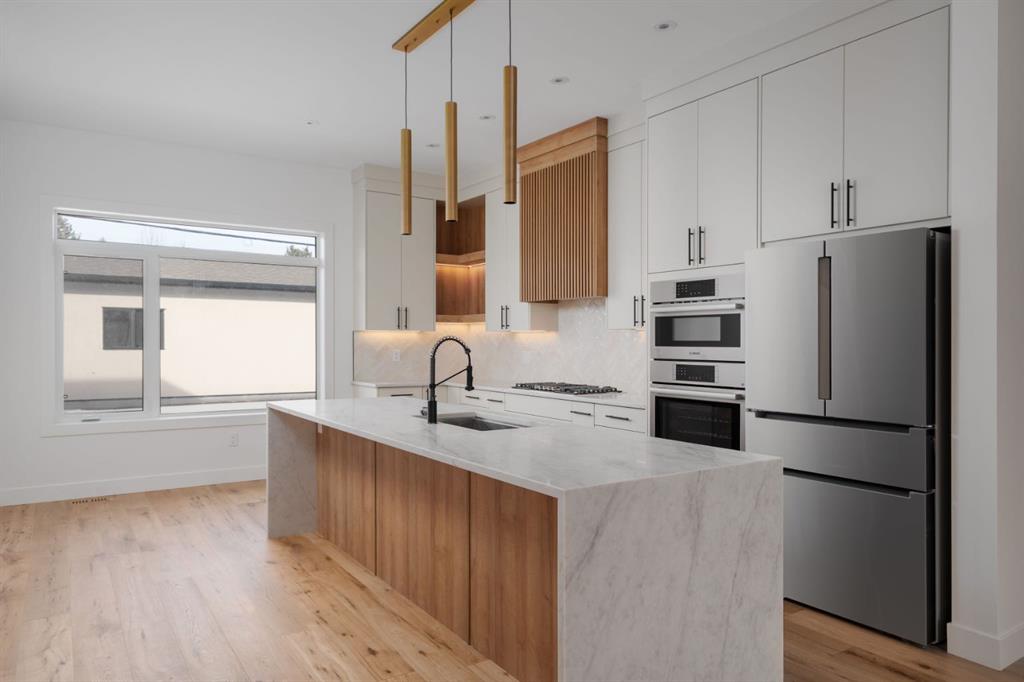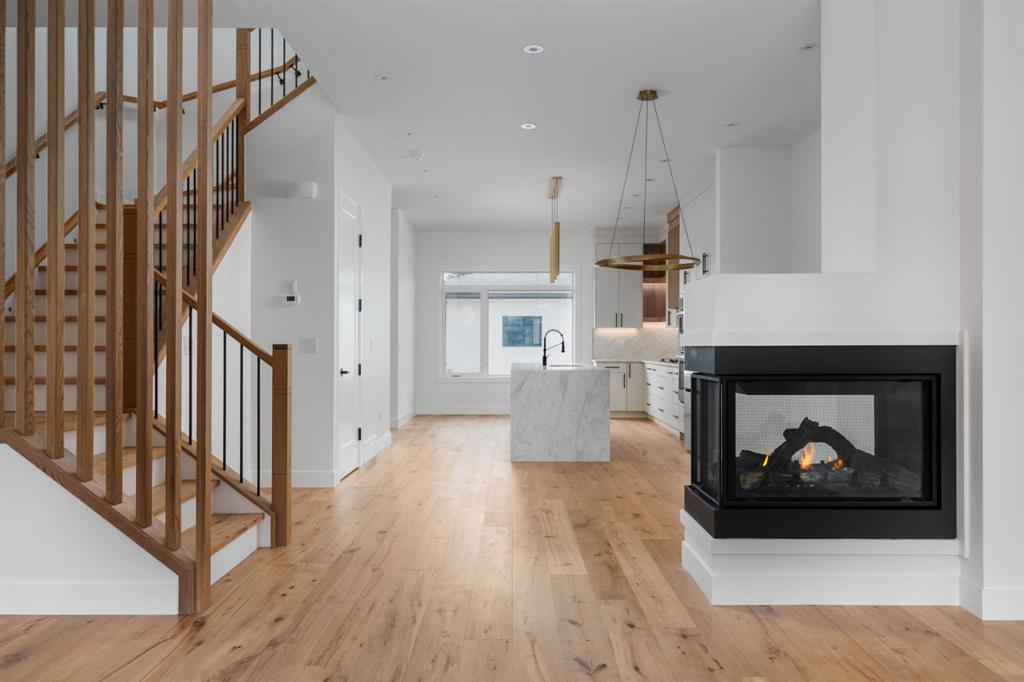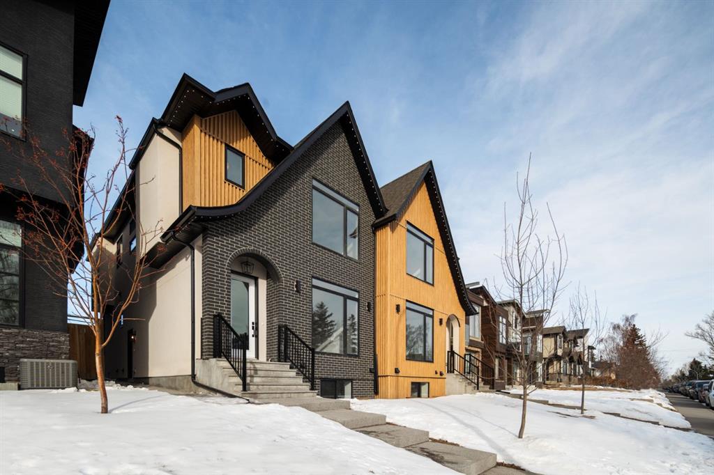 ***Open House Event Sunday March 29th from 1-4pm*** Welcome to The Killarney Collection in SW Calgary—thoughtfully crafted on a quiet street, this fully upgraded duplex infill offers a refined balance of scale, texture, and modern comfort. From the moment you arrive, the home makes a striking first impression with its sleek, contemporary exterior, pairing oversized triple-pane windows for abundant natural light with warm natural tones of true brick detailing and stucco accenting stands out. Inside, 10-foot main floor ceilings create a grand sense of arrival, setting the tone for the interior designer–curated colour palette carried throughout the home. Every detail has been intentionally explored, with the heart of the main floor anchored by a chef-inspired gourmet kitchen. Featuring a premium Bosch appliance package, fully custom-painted cabinetry, and an oversized waterfall granite island, the space effortlessly blends luxury with everyday functionality. A dedicated central dining off the kitchen offers a warm setting for gatherings, while the front living room provides a more intimate retreat, both areas are anchored by the full feature-wall gas fireplace—perfect for evenings spent unwinding. Thoughtful storage solutions are seamlessly integrated, including built-ins at the entry and a fully custom mudroom at the rear, ensuring every inch of space is maximized. Ascending to the upper level, subtle design moments continue to impress, with a full wood feature wall, custom stair lighting, and luxury wide-plank hardwood flooring flowing continuously throughout both the main and upper levels for a seamless transition.The oversized primary bedroom is a true sanctuary, showcasing a vaulted and peaked ceiling design with expansive windows that welcome morning light. The spa-inspired ensuite features a dual vanity, an expansive full-tile shower, and a calming, private retreat. Two additional bedrooms offer generous proportions, each complete with custom closet built-ins. The upper-level laundry room maintains the home’s commitment to efficiency and design, offering full cabinetry, a folding counter, side-by-side washer and dryer, and a laundry sink. A versatile work-from-home alcove completes the upper floor, easily functioning as a den or secondary living space.The lower level further extends the home’s flexibility with an oversized 2-bedroom, 1-bath legal suite (900+SQFT), centered around a spacious open kitchen—ideal for rental income, guests, or multi-generational living. A separate full laundry room, understair storage, and built-ins throughout each closet to ensure the same level of thoughtful design continues below.Perfectly positioned close to inner-city Calgary, recreation centres, shopping, and public transit, this Killarney residence offers a timeless blend of form and function—designed to live beautifully today and adapt effortlessly for tomorrow.