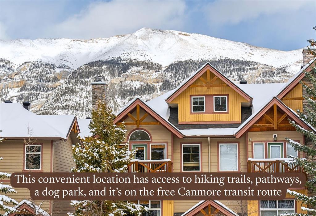 Welcome to this beautifully designed 3 bedroom + loft townhome offering generous space for family living and effortless entertaining. The bright, open-concept main floor is truly the heart of the home—perfect for gathering with loved ones or hosting guests. Enjoy casual meals at the expansive eating bar, or sit down for more intimate dinners in the separate dining nook. Unwind in the cozy living room, complete with a gas fireplace—ideal for curling up with a good book and a glass of wine. As a desirable inner end unit, this home benefits from enhanced privacy with only one shared wall and an abundance of natural light streaming in from the west-facing windows. Upstairs, a versatile bonus loft invites your creativity—whether you envision a yoga studio, art space, home office, fourth bedroom, or a fun play area for the kids, the choice is yours. The large, double-attached garage provides ample space for vehicles, storage, or your next project. Located in an unbeatable setting, you’ll love being just steps from local favorites like the Market Bistro and UnWined Wine & Beer Store. The new Gateway shopping centre is only a short 10-minute walk away, while scenic recreational trails in every direction make it easy to enjoy biking, hiking, and running. Plus, convenient access to the free Canmore transit system is just around the corner.