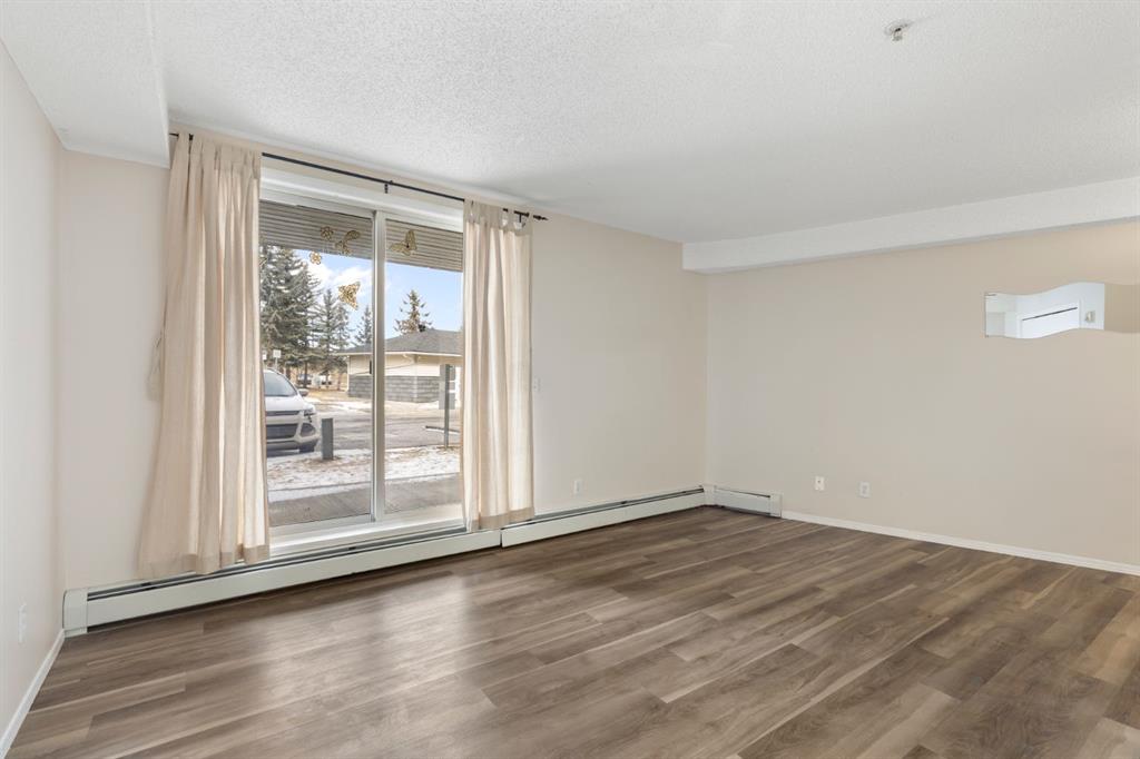 Affordable and move-in ready main floor condo offering comfortable, low-maintenance living in a convenient location. This bright unit features an open-concept layout with functional living space and low-maintenance laminate flooring throughout. The kitchen flows seamlessly into the living and dining area, creating a practical space for everyday living and entertaining. Enjoy the added convenience of in-suite laundry and a spacious ground-level patio, perfect for relaxing or summer BBQs. The unit has been professionally cleaned, making it truly move-in ready. The building offers excellent value with all utilities included in the condo fees and a secure environment with monitored security cameras. A dedicated surface parking stall with electrical outlet is included, along with plenty of visitor parking for guests. Pet lovers will appreciate that small dogs are permitted with board approval (maximum two pets per unit). Ideally located just off Stoney Trail, this home provides quick access to transit, including the MAX Purple BRT line with direct access to downtown. You’re minutes from East Hills Shopping Centre, featuring Costco, Walmart, Cineplex, and numerous restaurants and services, as well as the Peter Lougheed Hospital. For everyday convenience, Tim Hortons is just a short walk away. Outdoor enthusiasts will enjoy being close to the Rotary/Mattamy Greenway and Elliston Park, home to Calgary’s annual GlobalFest fireworks festival. With its affordable price, low-maintenance lifestyle, and unbeatable access to shopping, transit, and amenities, this property is ideal for first-time buyers, down-sizers, or investors looking for a solid opportunity.