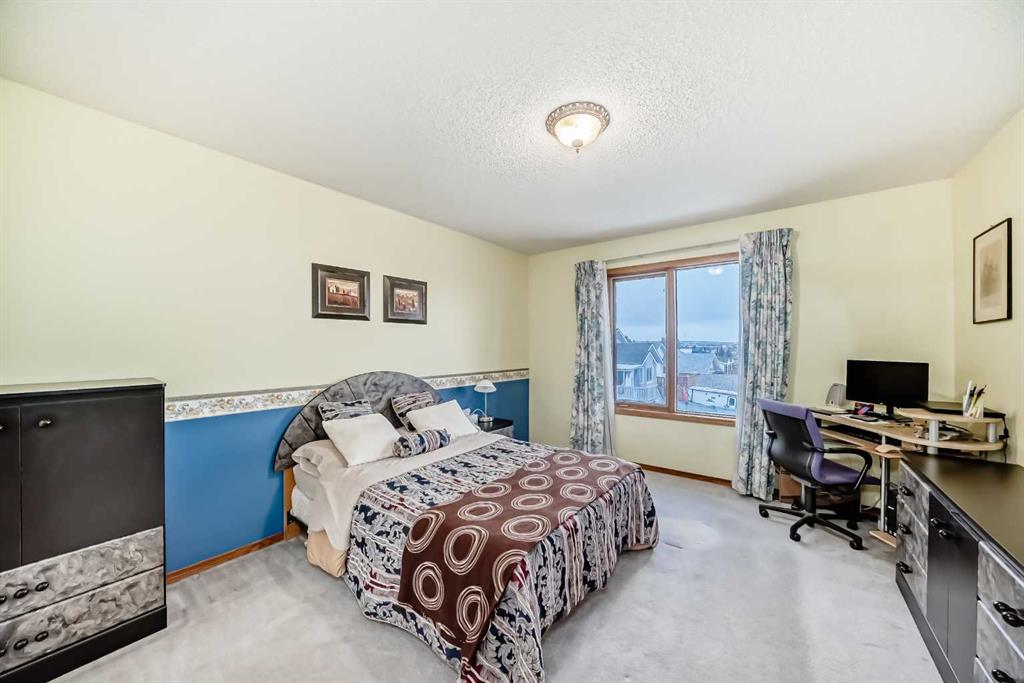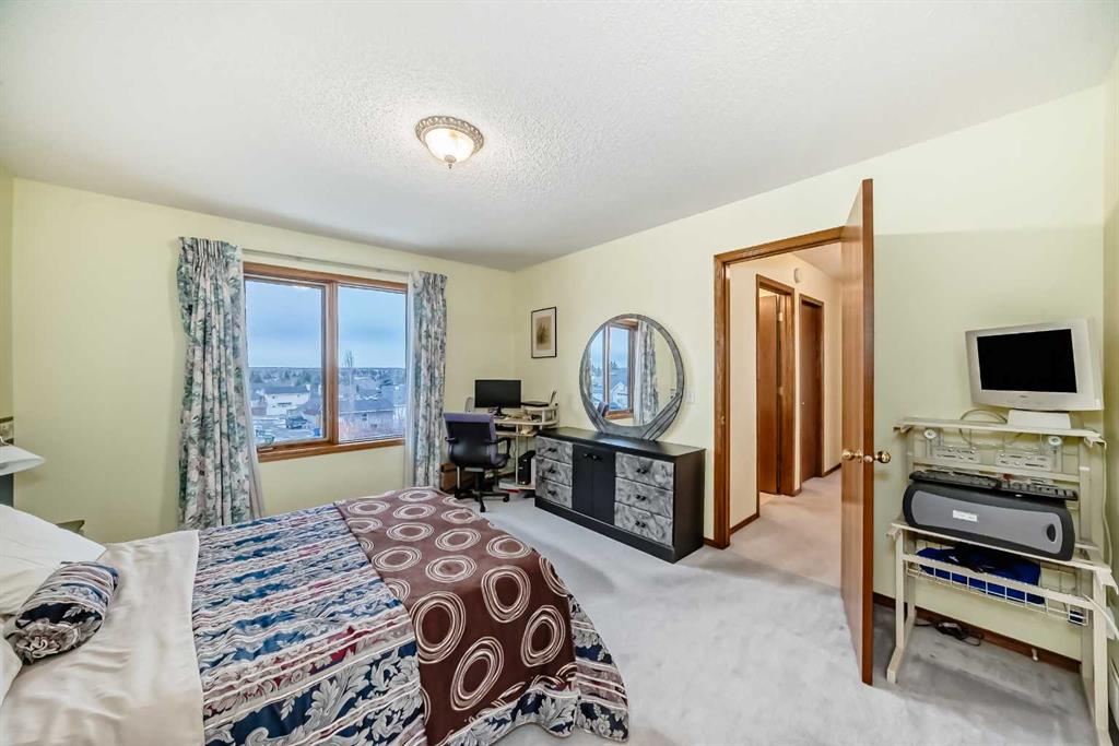 OPEN HOUSE ON SAT & SUN MAR 14 & 15 FROM 2:00PM -4:00PM. Welcome to this well-kept home in a desirable cul-de-sac location, offering comfort, space, and convenience. Spacious main level, this property features neutral finishes, an elegant open-railing staircase, and a functional kitchen complete with island, walk-in pantry, and a large bay nook opening onto the deck. The main floor also offers laundry and a warm family room with fireplace. Spacious bedrooms upstairs include a primary suite with walk-in closet and a relaxing ensuite with jetted tub and separate shower. The basement is 95% finished, ideal for added family living or entertaining. Important updates include the furnace and hot water tank replaced in recent years, plus new roof and gutters in October 2025. Ideally located with easy access to Stoney Trail, Deerfoot Trail, and shopping including T&T Supermarket.