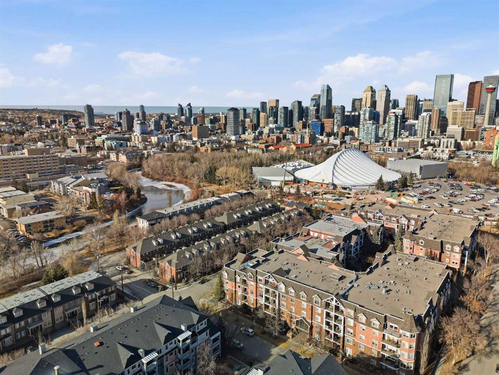 Welcome to Unit 203 at River Grande Estates, a perfect residence that offers comfort, space, and a functional layout. This gorgeous corner unit is filled with natural light from its south-facing windows, creating a warm and inviting atmosphere that feels more like a private residence than a typical condominium. Step through the spacious entrance and you’re welcomed into a stunning living space flooded with natural light. The bright living room is anchored by a cozy gas fireplace, creating the perfect place to relax or gather with friends and family. The kitchen features granite countertops, ample storage, and generous prep space, making it both functional and inviting. Just off the kitchen, a spacious dining area is surrounded by windows, an ideal setting for hosting. The south-facing patio is perfect for enjoying the sun throughout the day and features a gas BBQ hookup for effortless outdoor entertaining. The primary bedroom is spacious and comfortable, featuring double closets and a large ensuite complete with a relaxing jacuzzi tub and standalone shower. The second bedroom is also well-sized, offering flexibility as a guest room, home office, or additional living space. The unit features an additional 3-piece main bathroom, a large laundry room perfect for additional storage, providing excellent everyday functionality. River Grande Estates offers exceptional building amenities, including heated underground parking, a secure storage locker, bike storage, plenty of underground visitor stalls, a billiards room, a library, and meeting spaces. Pets are welcome with board approval. Ideally located in Erlton, one of Calgary’s most walkable inner-city communities, you are just steps from the river valley and Calgary’s incredible pathway system, perfect for walking, cycling, and enjoying the outdoors. You’re also moments from the shops and restaurants of 4th Street, Stampede Park and the BMO Centre, and can easily take in a Calgary Flames game or concert at the Saddledome, all just minutes from your door. A bright, beautifully positioned corner residence offering the comfort of a home with the convenience of inner-city living.