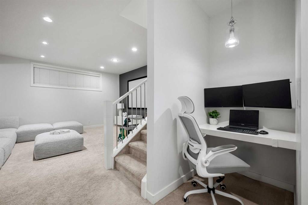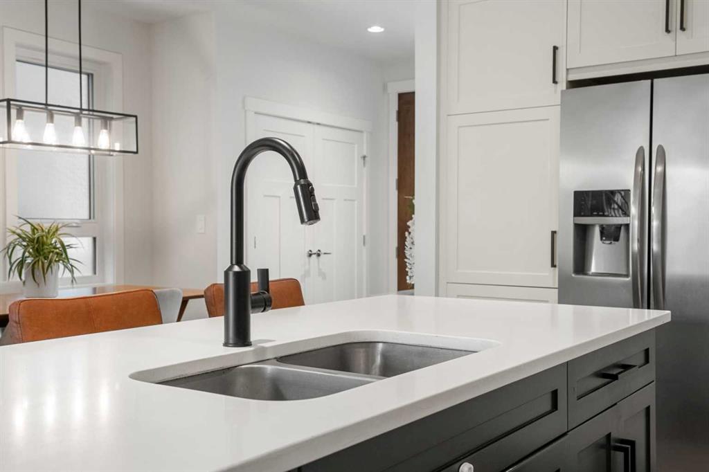 Modern design, thoughtful upgrades, and pride of ownership set this beautifully maintained contemporary infill apart from the rest. Located on one of Highland Park’s most desirable tree-lined streets just minutes from Nose Hill Park and Confederation Park, this like-new home offers exceptional inner-city living. The open-concept main floor is designed to impress with 9-foot ceilings, engineered hardwood flooring, and a striking full-height tiled gas fireplace with custom built-ins. Oversized windows flood the space with natural light, creating a bright and inviting atmosphere throughout. At the heart of the home, the beautifully appointed kitchen serves as the central gathering place, featuring an abundance of ivory shaker cabinetry, white quartz countertops, and a massive 9-foot island ideal for entertaining and everyday living. A premium stainless steel appliance package includes a gas cooktop, built-in oven and microwave, and a sleek hood fan. A dedicated front office provides the ideal work-from-home setup, while a thoughtfully designed mudroom with custom built-ins and a discreetly located powder room add both style and practicality to the main level. Upstairs, you’ll find three spacious bedrooms, a convenient laundry room with built-in cabinetry, and a well-appointed 4-piece main bathroom. The primary retreat is a true standout, complete with a custom-built closet, built-in speakers, and a beautifully finished ensuite featuring dual vanities, a statement soaker tub, and an oversized fully tiled glass shower. The fully developed lower level is perfect for entertaining or relaxing, showcasing a large media room, stylish wet bar, a spacious fourth bedroom with a massive walk-in closet, a full 4-piece bathroom with convenient built-in linen shelving, and a versatile flex nook ideal for a workspace, homework station, or creative area. Outdoor living is just as impressive with a beautifully landscaped backyard featuring a large deck, low-maintenance turf, full fencing, and central air conditioning for year-round comfort. A double detached garage completes this exceptional property. Offering the perfect balance of modern design, thoughtful upgrades, and an unbeatable location, this exceptional home stands out from the typical inner-city infill. Simply move in and enjoy.