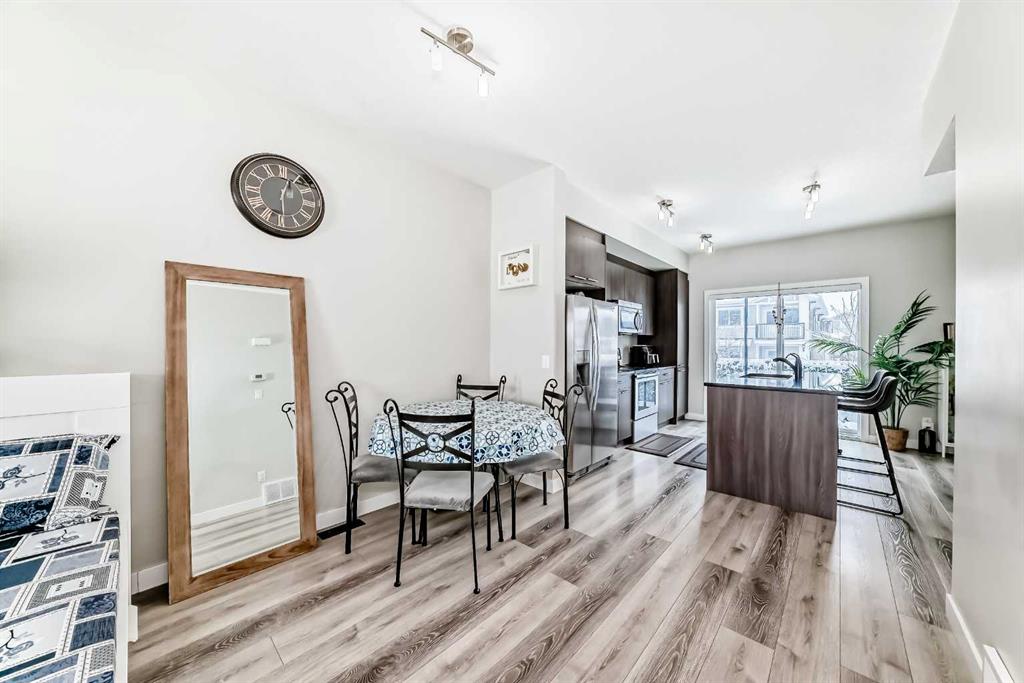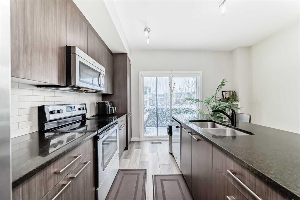 WELCOME TO CHESTERMERE MARINA DRIVE LIVING + LOW CONDO FEE + FRONT & BACK TWO BALCONIES + FRONT PRIVATE YARD + ATTACHED GARAGE + NEW A/C (2025) | NEW BLINDS (2026) | NEW 2-IN-1 WASHER/DRYER (2025) | GARAGE EPOXY. Fantastic opportunity to own a well-located home on Marina Drive STEPS FROM THE LAKE BEACH, AND directly across from a large plaza with GROCERY, BANKS, SHOP, and everyday amenities. The main floor offers a spacious entryway, sunny DEN, HOME OFFICE , HOME GYM OR EXTRA ROOM With 2-piece bath, and access to the attached garage with durable EPOXY FLOOR—designed to protect the floor, extend the life of your garage, and give it a clean, modern finish. The modern kitchen features granite countertops, STAINLESS STEEL APPLIANCES , and a large eat-up island, with access to a private balcony with BBQ gas line. The open-concept living and dining area leads to a second sunny balcony, perfect for relaxing or entertaining. Upstairs you’ll find 2 spacious BEDROOMS and a 4-piece BATHROOM. Enjoy an unbeatable lifestyle just minutes from the lake, BEACH, walking paths, schools, playgrounds, library, community centre, daycare, boating, swimming, and more. Move-in ready with great upgrades and an incredible location. DREAMING OF LUXURY LAKESIDE LIVING? THIS IS YOUR CHANCE, DON’T MISS THIS STUNNING OPPORTUNITY!”