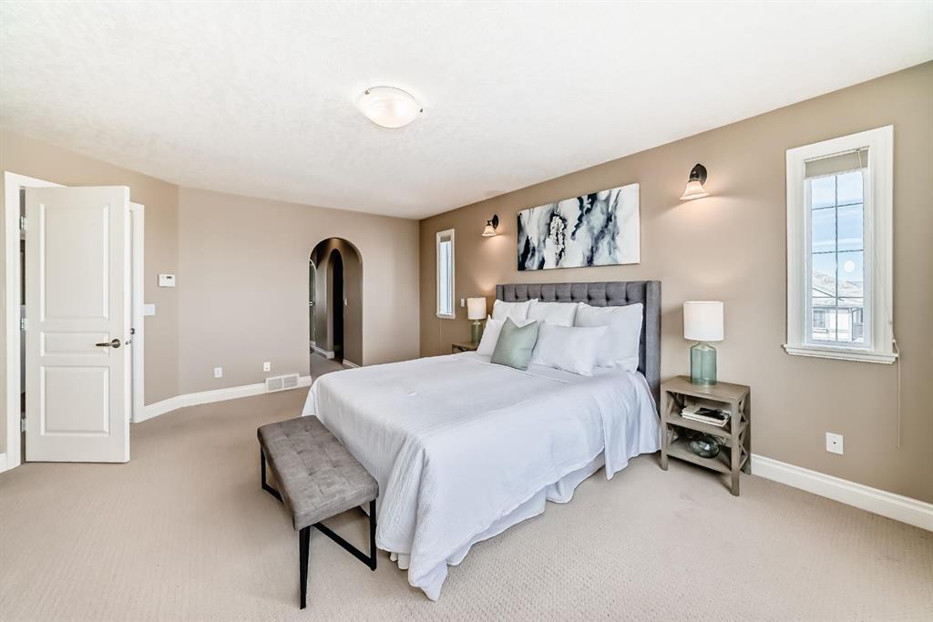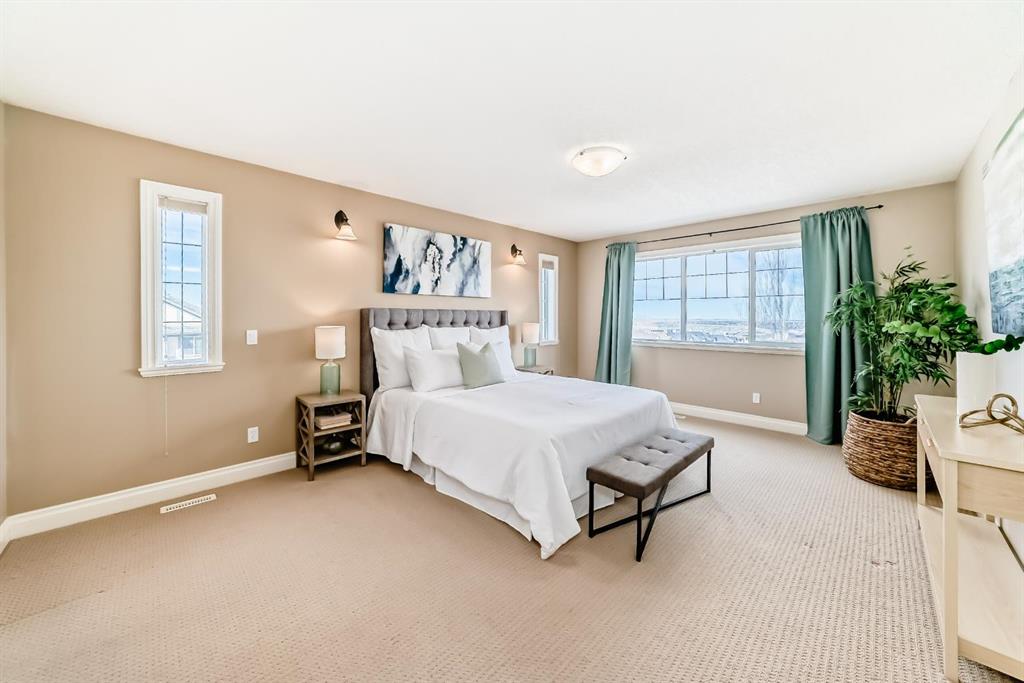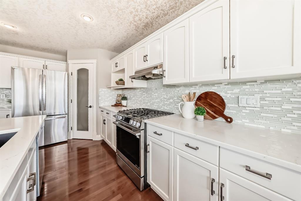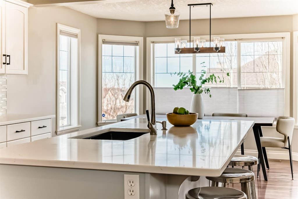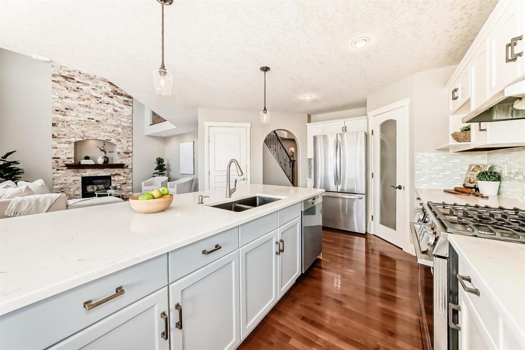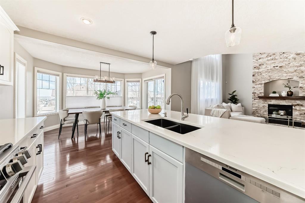 Welcome to this beautiful, bright, 2-storey walkout home with over 3000 square feet of finishing living space in the highly sought-after community of Sherwood. The bright main floor is filled with natural light and features a amazing living room with soaring two-storey windows and a breathtaking floor-to-ceiling stone fireplace. The thoughtfully designed layout also includes a formal dining room with elegant archways and columns, a home office with bay window, and a cozy dining nook with French doors leading to the backyard. The spacious kitchen is equipped with upgraded granite countertops, a centre island with raised eating bar, and all brand new premium appliances, making it ideal for family gatherings and entertaining. Upstairs you will find three generously sized bedrooms, a flexible bonus space, and a full bathroom. The large primary suite features a walk-in closet and a bright 5-piece ensuite with bay windows, a separate shower, and a classic clawfoot tub. The fully finished walkout basement includes a fourth bedroom, full bathroom, and a large entertainment/media room with a custom wet bar and granite counters, perfect for hosting family and friends. Upgrades include updated kitchen and bathroom counters, hardwood and tile flooring, air conditioning, all new appliances, and a new roof (2025). The fully landscaped and fenced backyard features a maintenance-free deck, creating a perfect outdoor space to relax or entertain. Ideally located close to top schools, scenic pathways and ravines, shopping, restaurants, golf courses, Costco, Canadian Tire, public transit, and with easy access to Stoney Trail and Calgary International Airport. A rare opportunity to own a beautiful walkout home in one of NW Calgary’s most desirable family communities.
