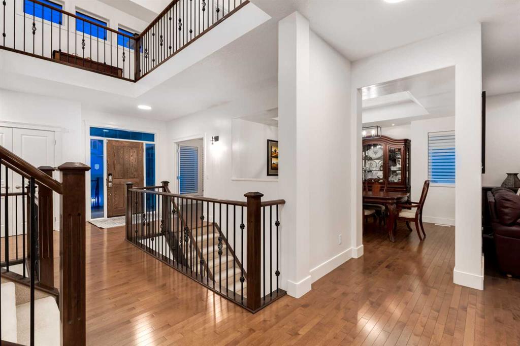 Stunning Fully Finished Walkout Backing onto Green Space in Aspen Woods! Located in the sought-after community of Aspen Woods, this beautifully maintained 2-storey walkout offers an impressive 4,800 sq. ft. of total developed living space and true pride of ownership throughout. Backing onto green space and surrounded by great neighbours, this home delivers luxury, space, and comfort in an exceptional location. A grand foyer with soaring 23’5” ceilings welcomes you into a bright, open-concept layout filled with natural light from large windows on all three levels. Elegant wrought iron railings accent the staircase throughout. The gourmet kitchen features stainless steel appliances, custom cabinetry and hood fan, granite countertops, a large island, and a walk-through pantry with ample storage. The main floor also includes a den, formal dining room, and a cozy family room with gas fireplace. Step onto the west-facing deck to enjoy sunshine and peaceful green space views. Upstairs offers a spacious bonus room with a grand chandelier, a luxurious primary suite with sitting area, gas fireplace, dream walk-in closet, and a 5-piece ensuite with upgraded shower and corner jetted tub. Two additional bedrooms, a 5-piece main bath, and upper laundry complete the level. The fully finished walkout basement features in-floor heating, two more bedrooms, a 4-piece bath, wet bar, and gas fireplace—ideal for entertaining or extended family. A finished oversized garage and numerous upgrades—including new furnaces (2021 & 2025), tankless hot water (2026), in-floor heating system updates (2026), new window coverings (2025), upgraded lighting (2025), and fresh paint (2026)—add even more value. Close to top private and public schools, shopping, parks, LRT, downtown, and Stoney Trail, this is an exceptional opportunity in one of Calgary’s most desirable communities. Please click the Virtual Tours for more detail!